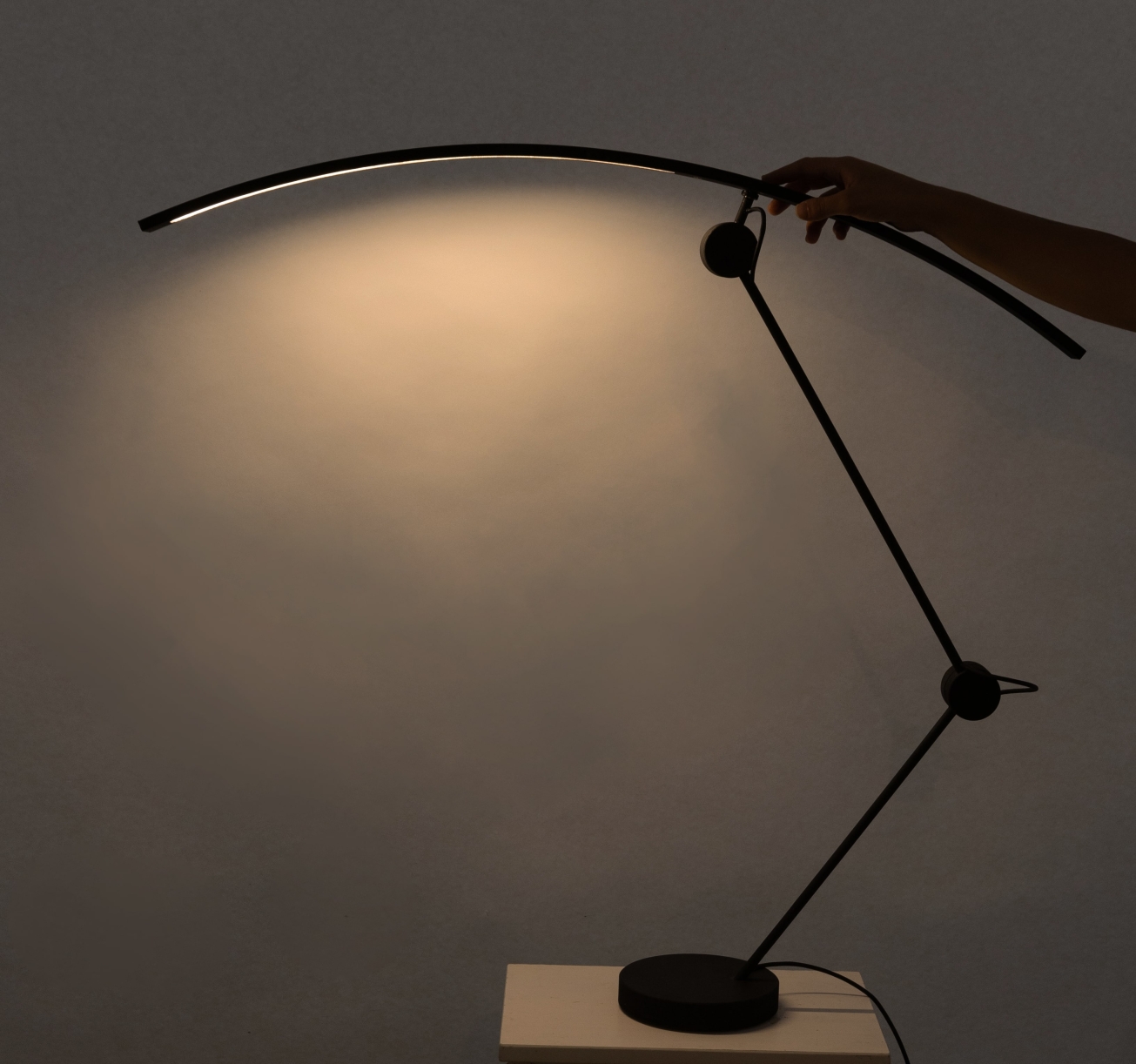 Beyond materials, the lamp creates an emotional connection: when the user sits beneath its arc, a subtle intimacy forms. This ongoing relationship encourages care, long-term use, and attachment. In a way, the need to care for the lamp reflects how it gently "cares" for you — in the quiet moments of focused work.