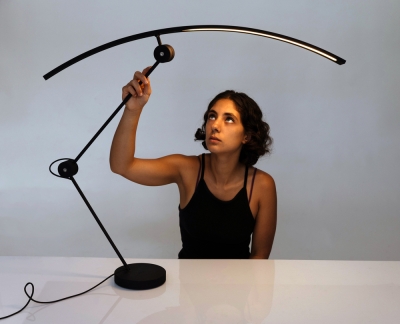 Sustainability ApproachThis lamp was designed with durability, emotional resonance, and environmental responsibility in mind. It is handcrafted from aluminum and stainless steel — both long-lasting and fully recyclable. Screws are intentionally exposed to allow easy maintenance without replacement. The textile cable is made from recycled black fabric, and the plug is 3D printed using recycled PLA. A gesture sensor ensures low energy consumption, while friction-based joints reduce electronic complexity.