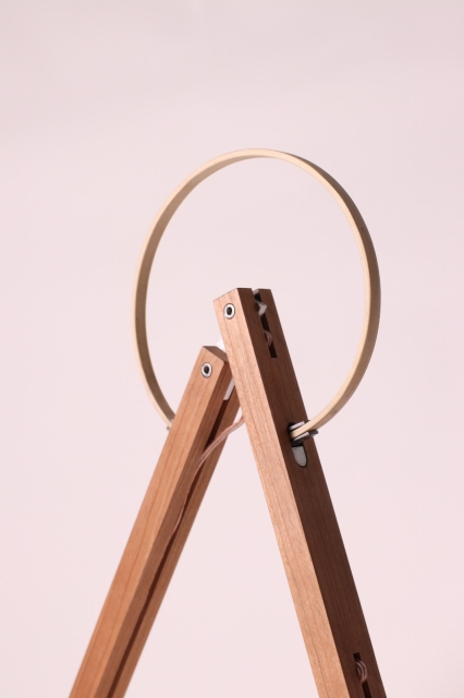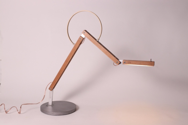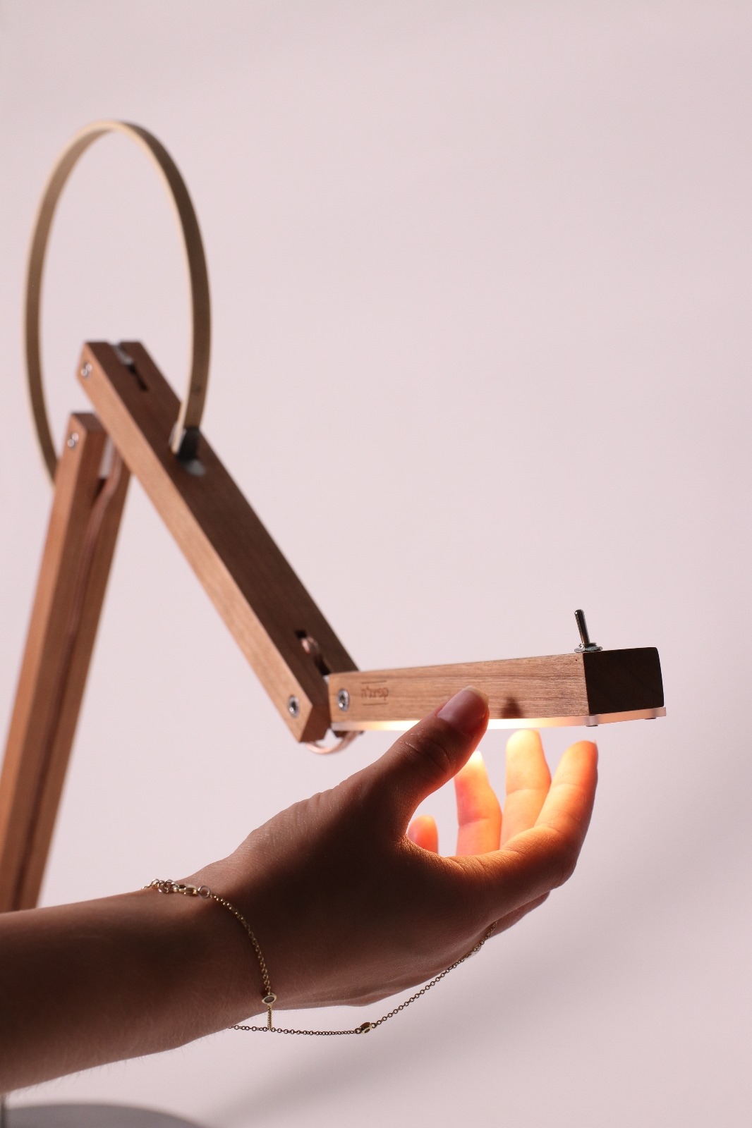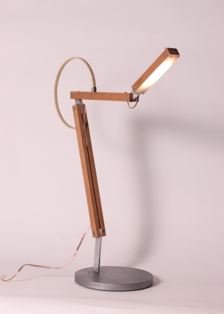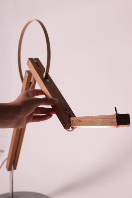 Entry DescriptionThe Eco Springwood Lamp is a study in the natural flexibility and resilience of wood, transformed into a refined lighting solution. At its core is a bamboo spring that embodies both mechanical ingenuity and aesthetic elegance, translating natural tension into smooth, counter-force movement. This unique construction allows the lamp to move freely across three axes with effortless, one-handed operation, delivering precise, focused illumination while maintaining balance through a stable base. Its design draws inspiration from the half-arch forms of traditional wooden leaf springs used in old carriages, reinterpreted through contemporary craftsmanship. The result is a fusion of history and innovation, an object that is both functional and poetic. Developed through extensive prototyping and experimentation, the Eco Springwood Lamp is the culmination of numerous design iterations, each refining the relationship between form, material, and movement. The lamp not only provides adaptable lighting but also celebrates the expressive potential of bamboo and wood as dynamic, sustainable materials.