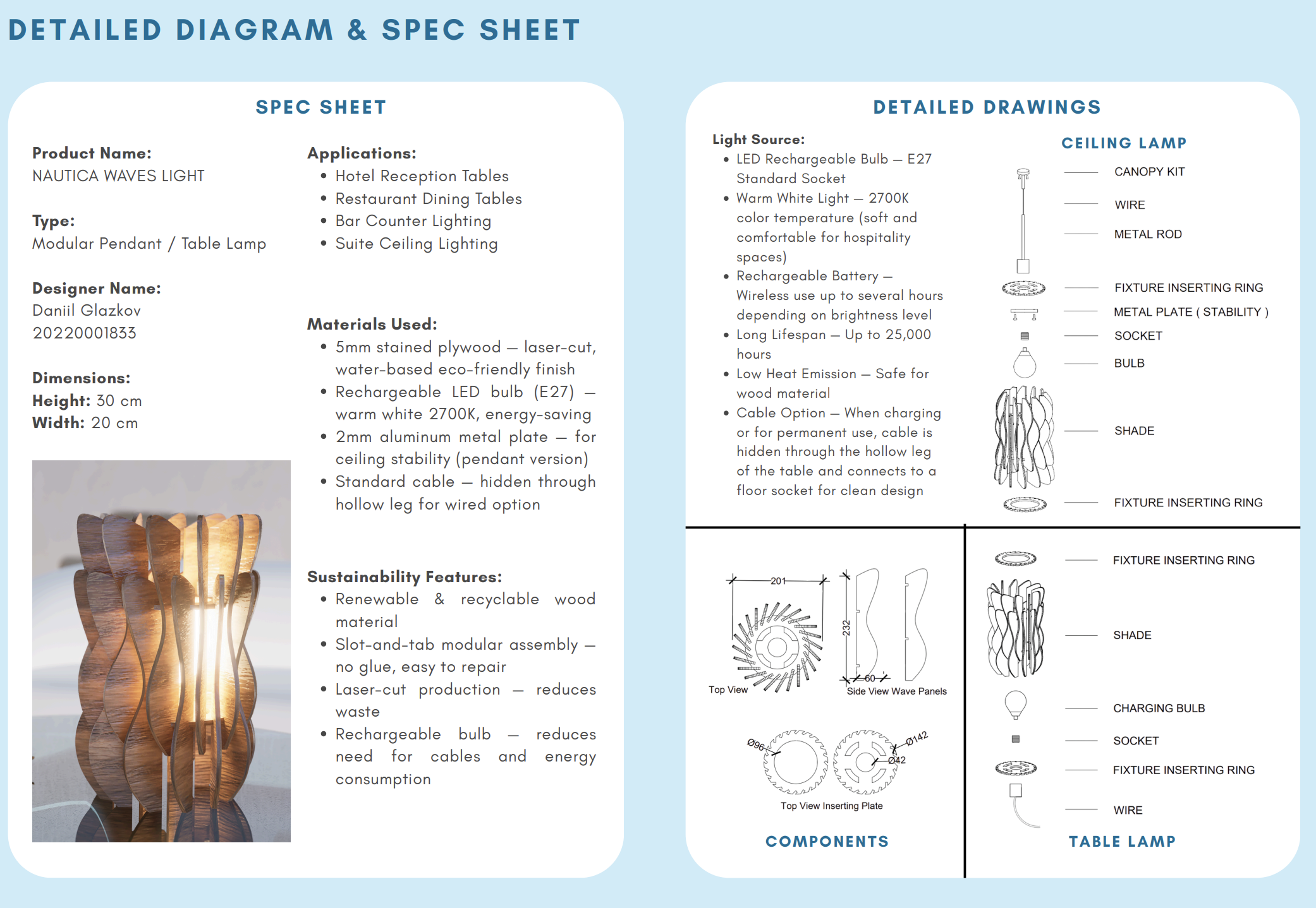 The plywood is laser -cut for precise shapes with