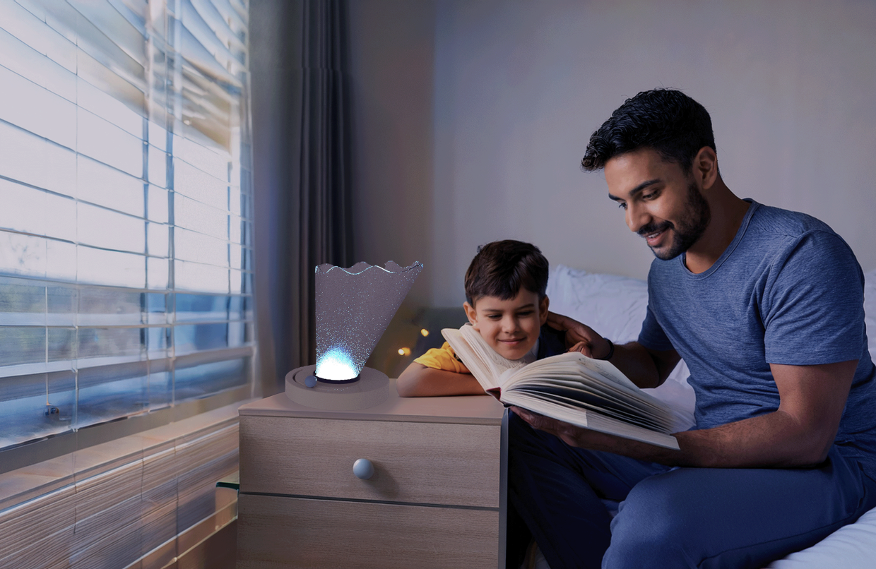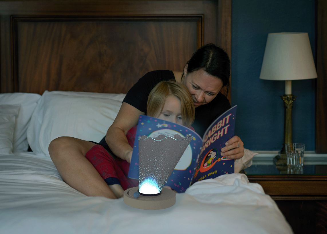 Entry DescriptionGlow Story is an interactive storytelling lamp designed to help parents transform nightly story time into a shared creative routine. By simply turning a knob, families change the lamp’s color to match the scene, mood, or setting of their story—whether that’s a deep ocean blue, a warm dragon’s breath red, or a gentle forest green.
