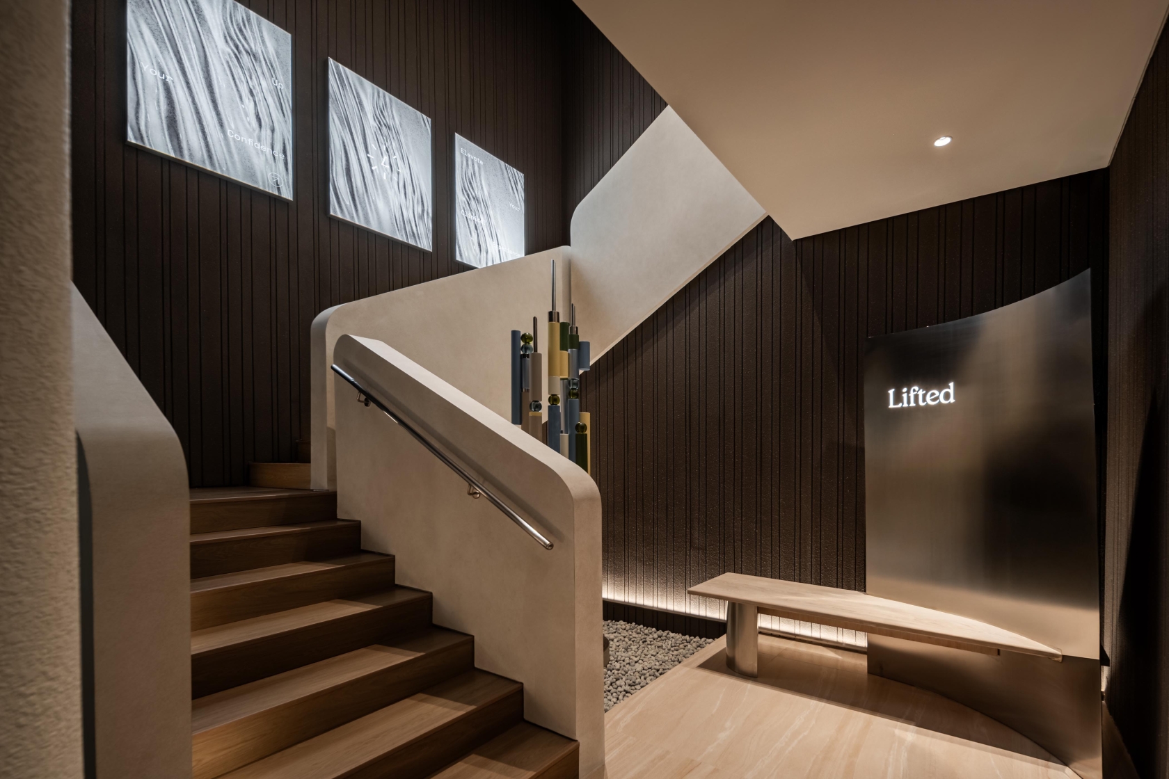 Entry DescriptionThe lighting design for Lifted elevates the clinic’s vision of merging scientific precision with poetic wellness. Every luminaire is meticulously tuned to 3500K, a warm yet clinically clear tone paired with CRI97 accuracy to render skin tones, materials, and artworks with uncompromising fidelity. Light becomes both a diagnostic tool and an emotional balm, guiding visitors through a journey of trust, luxury, and calm.