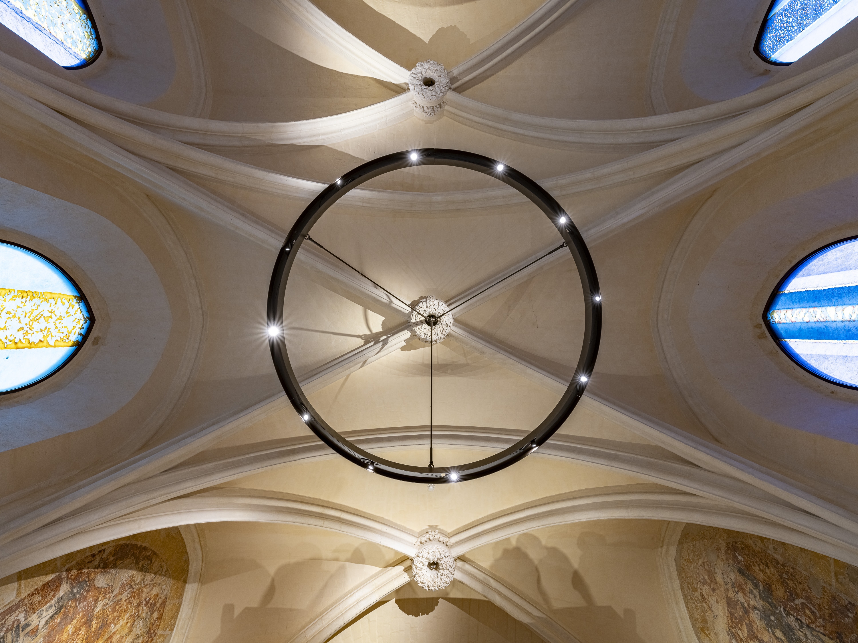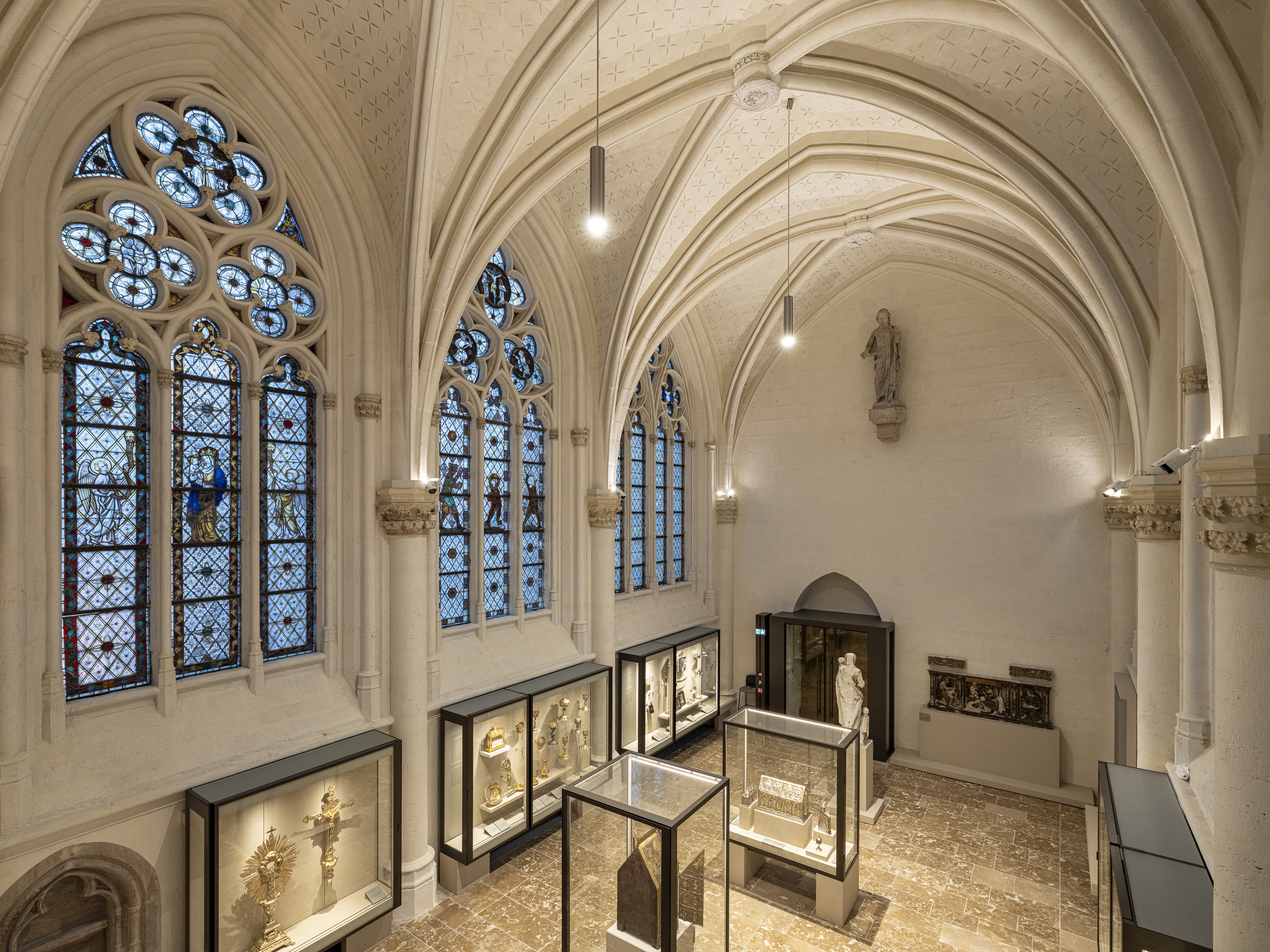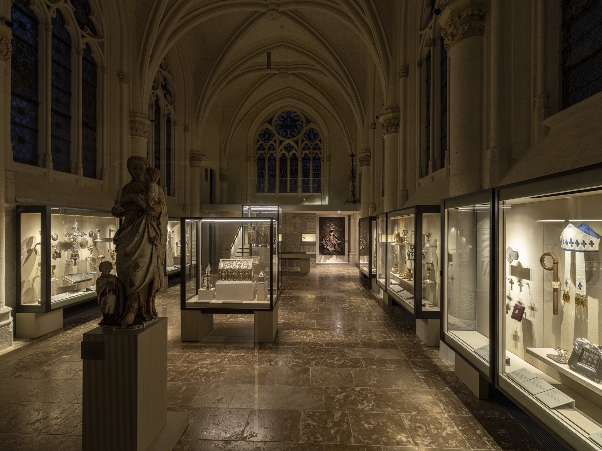 Entry DescriptionThe Saint Piat chapel is adjoining the Chartres cathedral. It was closed in the last 23 years to be refurbished and reopened in 2024 September the 20th. Since the European Heritage Day, this place welcomes a Treasure of 150 objects dedicated to worship celebrations as well as 6 tall sculptures which were formerly decorating the exterior royal door frame of the cathedral. We are changing our point of view on this column-like sculptures since they are exhibited like artworks. Thanks to a grazing light, we can admire the refined drape work and the face expressions details of Old Testament prophets, kings and queens. The treasure of Notre Dame is also shown in a precious showcase protected from natural light which is illuminating the chapel. We would like to highlight the volumes and underline the vaults with artificials lights system which is adapting itself to the natural light filtered by renovated stained glasses. The museographical lighting sources are close to the art pieces to reveal their subtleties. Light fluxes directions are different for each object and emphasize textures while respecting light levels required for their protection in time. Lighting is also allowing people to wander in the space and magnify the architecture with a high visual comfort standard. It is creating small ambiances with accents like in the staircase or on other details.