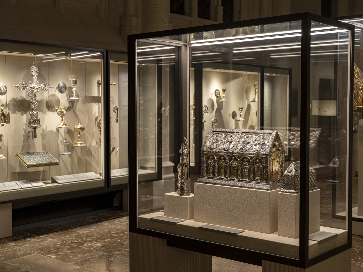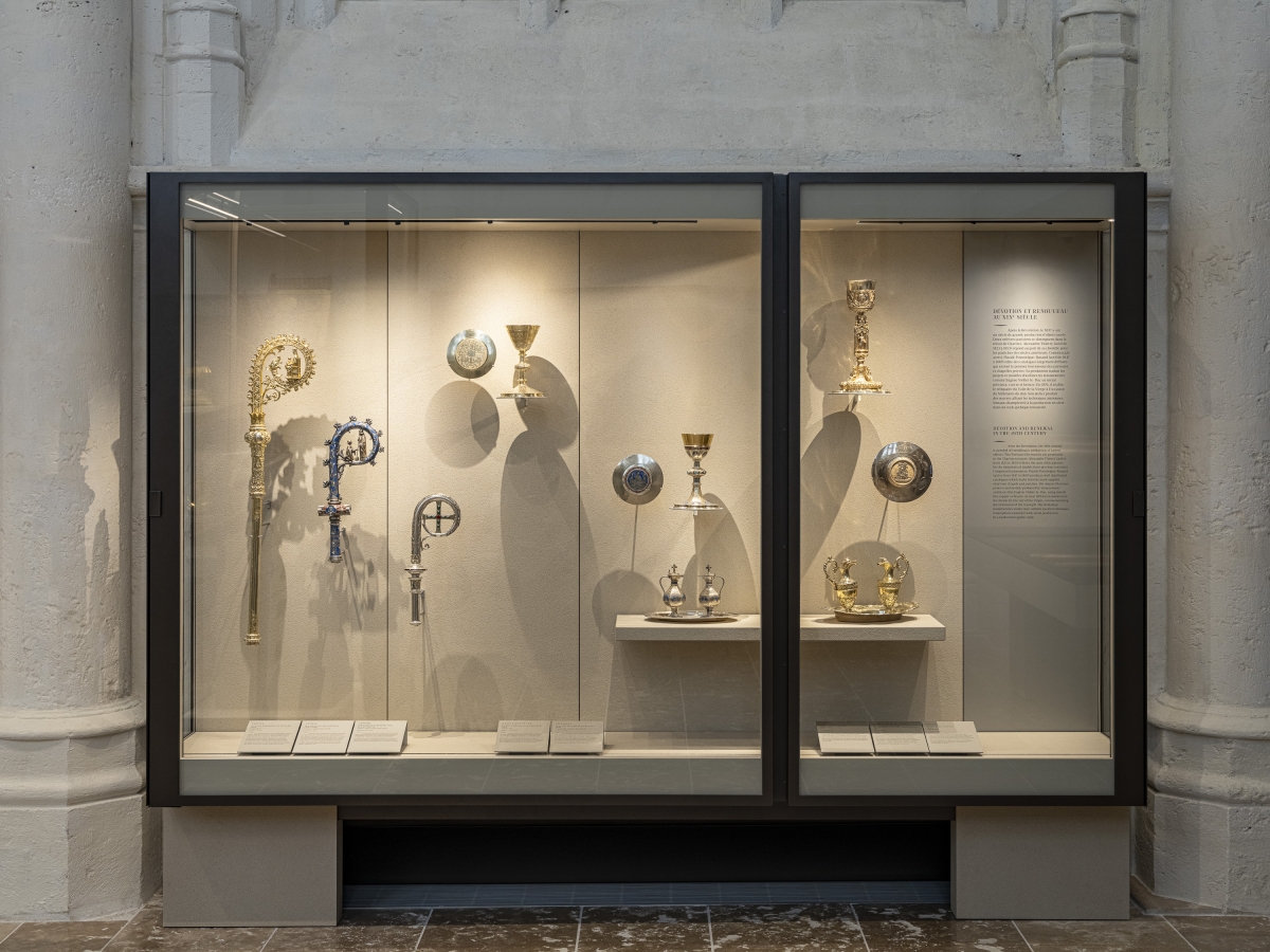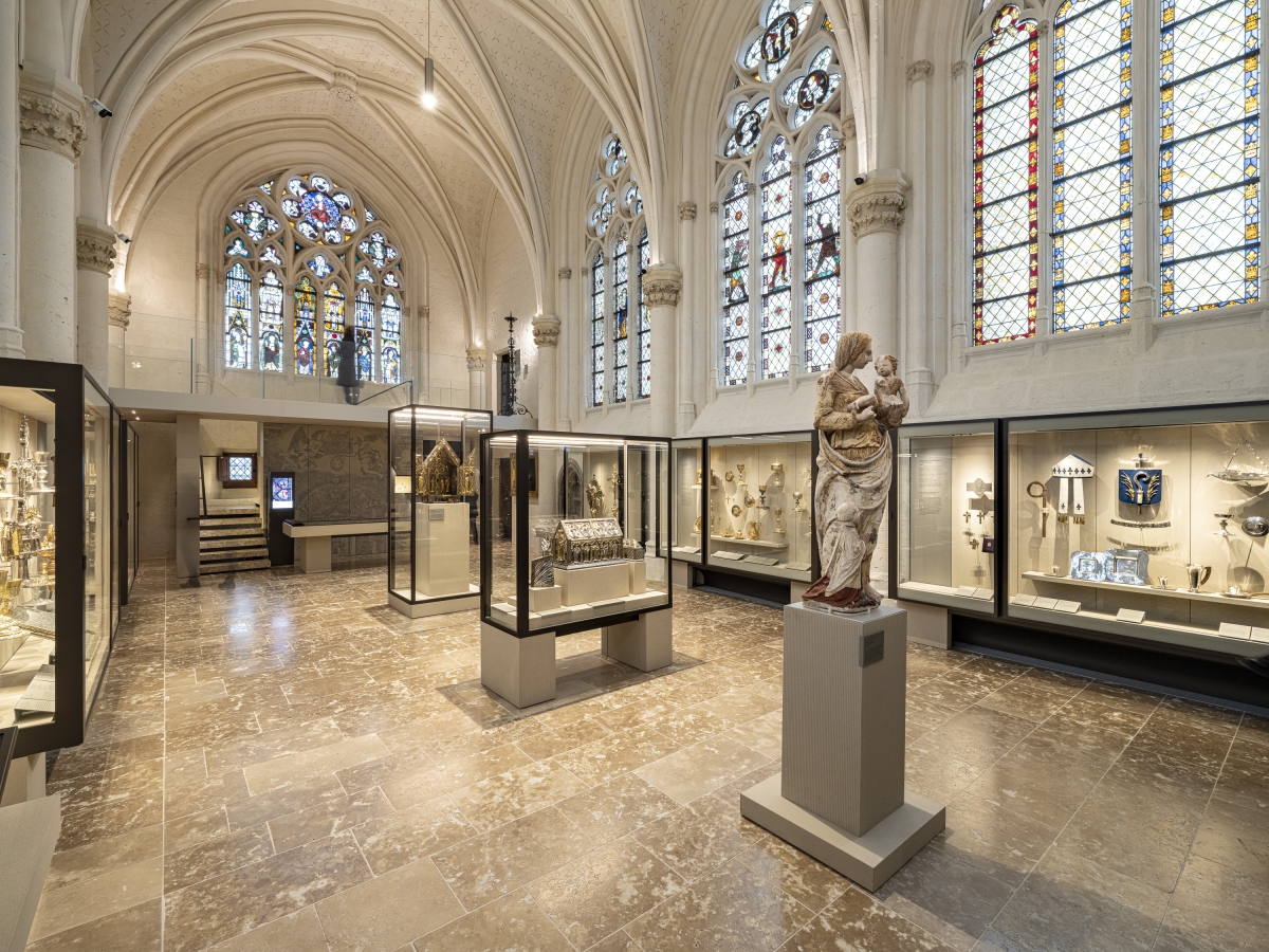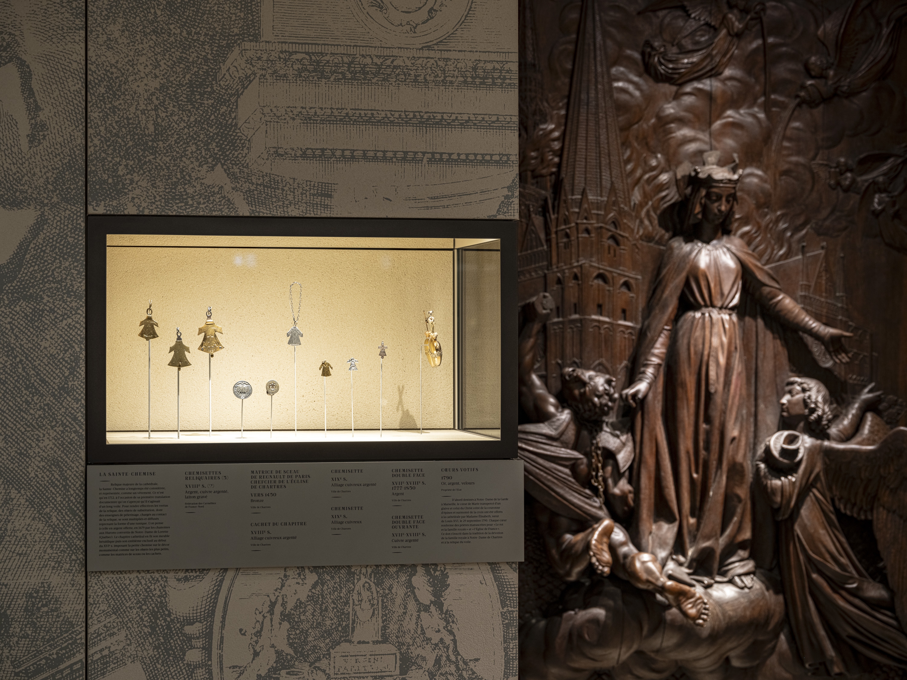 Entry DescriptionThe Saint Piat chapel is adjoining the Chartres cathedral. It was closed in the last 23 years to be refurbished and reopened in 2024 September the 20th. Since the European Heritage Day, this place welcomes a Treasure of 150 objects dedicated to worship celebrations as well as 6 tall sculptures which were formerly decorating the exterior royal door frame of the cathedral. We are changing our point of view on this column-like sculptures since they are exhibited like artworks. Thanks to a grazing light, we can admire the refined drape work and the face expressions details of Old Testament prophets, kings and queens. The treasure of Notre Dame is also shown in a precious showcase protected from natural light which is illuminating the chapel. We would like to highlight the volumes and underline the vaults with artificials lights system which is adapting itself to the natural light filtered by renovated stained glasses. The museographical lighting sources are close to the art pieces to reveal their subtleties. Light fluxes directions are different for each object and emphasize textures while respecting light levels required for their protection in time. Lighting is also allowing people to wander in the space and magnify the architecture with a high visual comfort standard. It is creating small ambiances with accents like in the staircase or on other details.