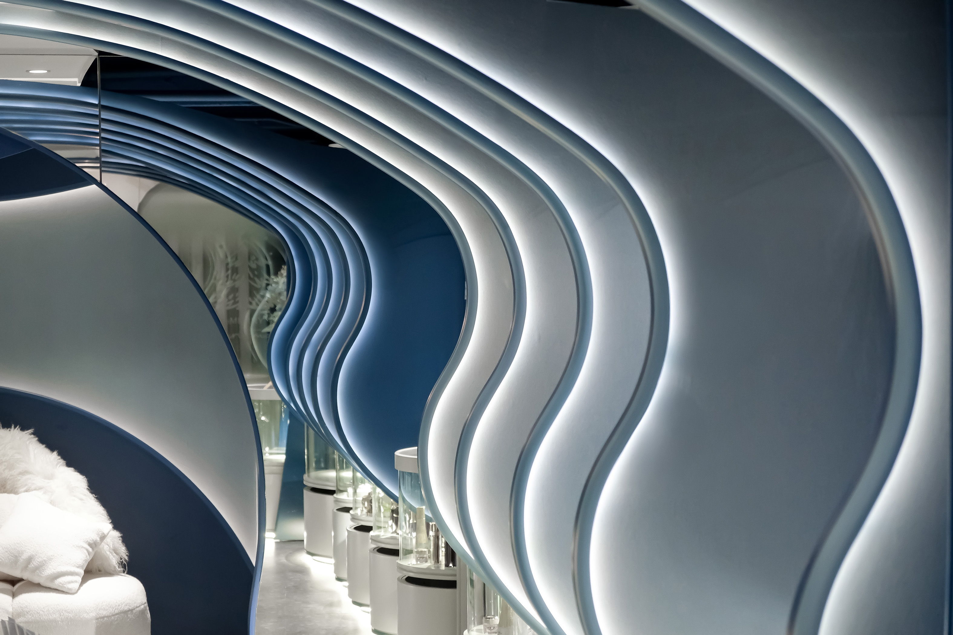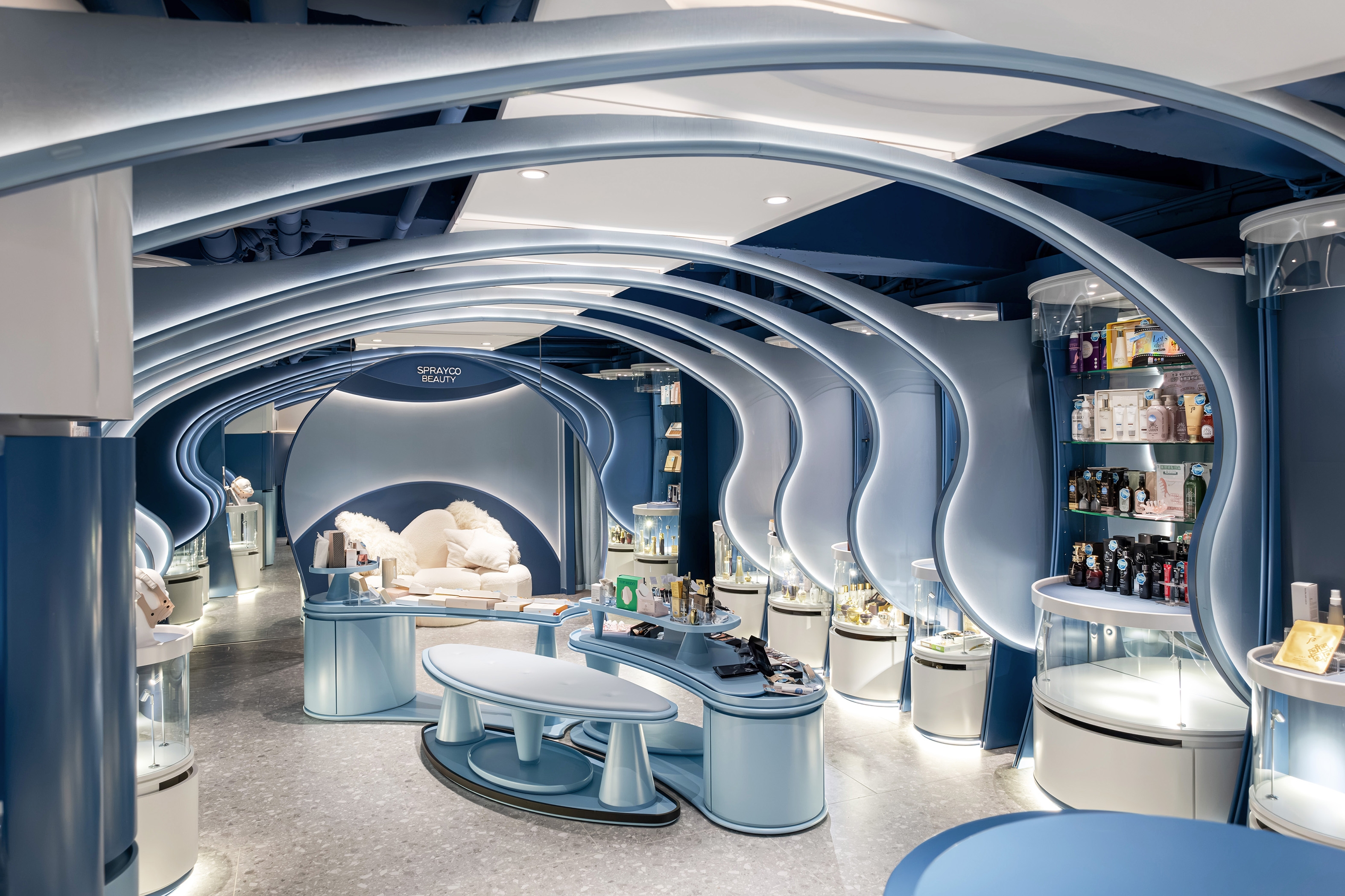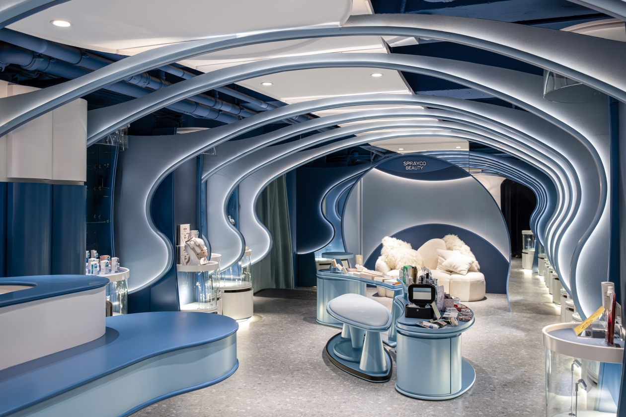 Entry DescriptionNestled in the bustling streets of Hong Kong, Spray Co is a beauty product retail store that spans 1,000 square feet with the idea : reminiscent of an enchanting ocean tunnel. The design draws inspiration from the shimmering reflections of the sea. The space planning thoughtfully integrates online marketing and product launch platform into its physical space, creating a multifaceted shopping experience that brings the brand’s identity to life. Spray Co not only caters to the needs of its customers but also redefines the essence of beauty retail in a modern context.