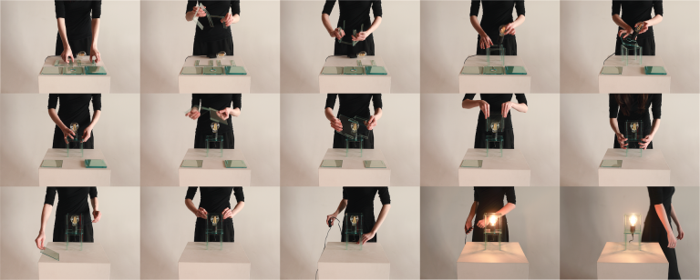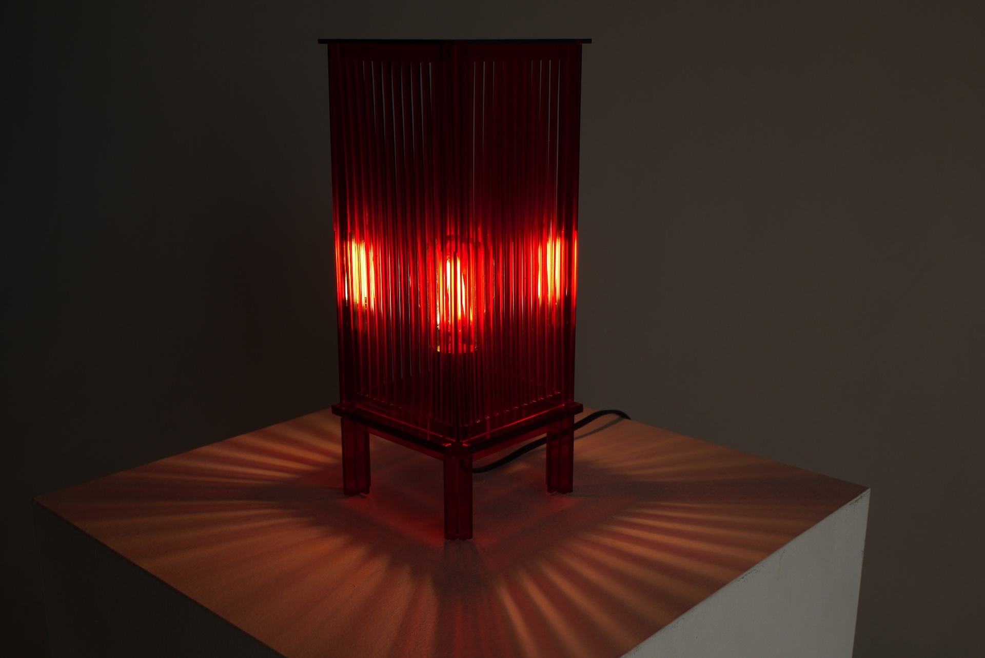 Made from coloured acrylic panels, the lamp doesn’t just light up, it transforms a space. The surfaces reflect and refract to cast colourful shadows and layered tones, changing depending on how it’s built and where it sits. By day it has a sculptural presence and by night it glows with shifting colours and patterns. The idea is that each lamp becomes personal to the person who builds it, a mix of functional lighting and playful creativity that can keep evolving over time.