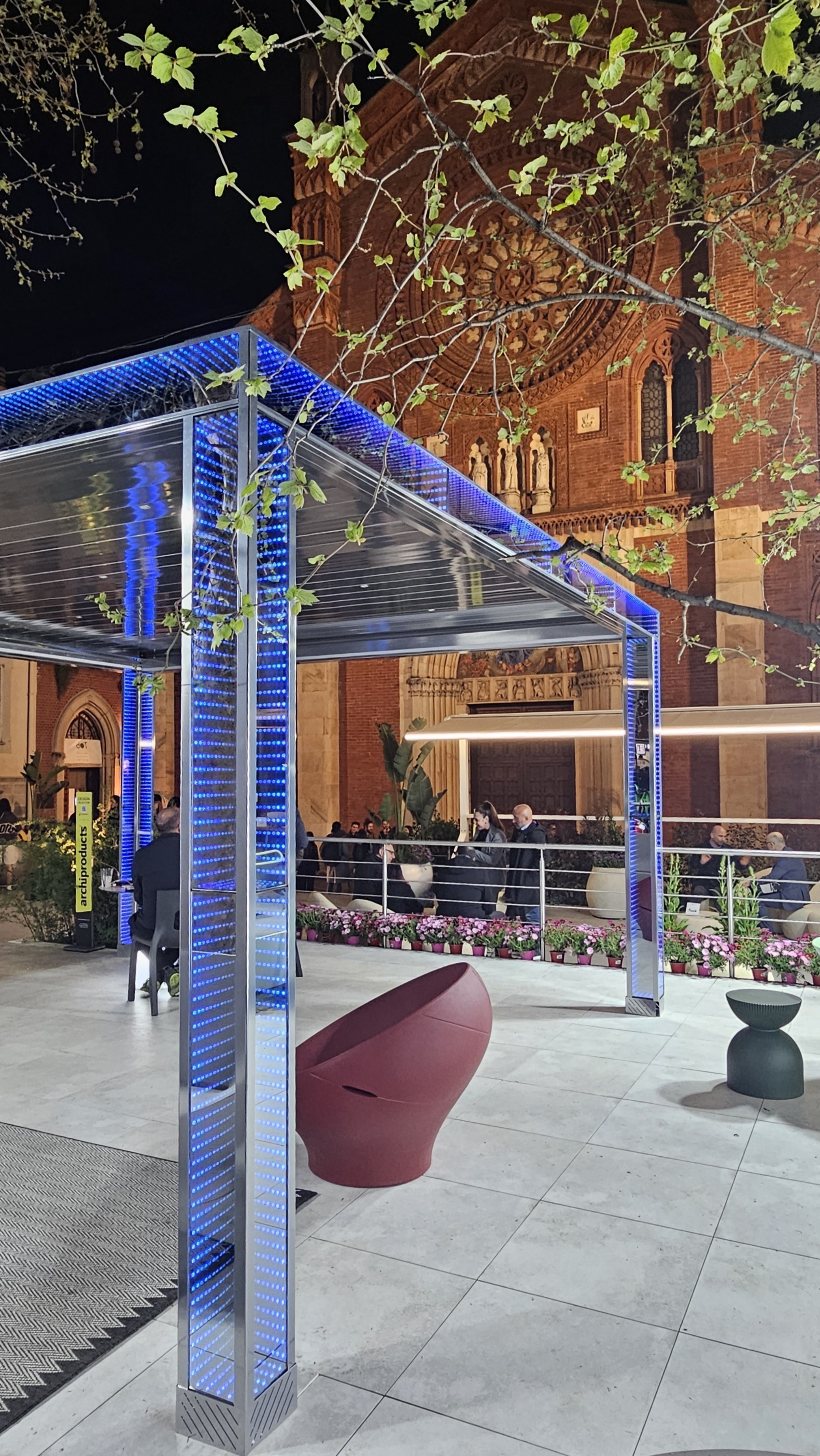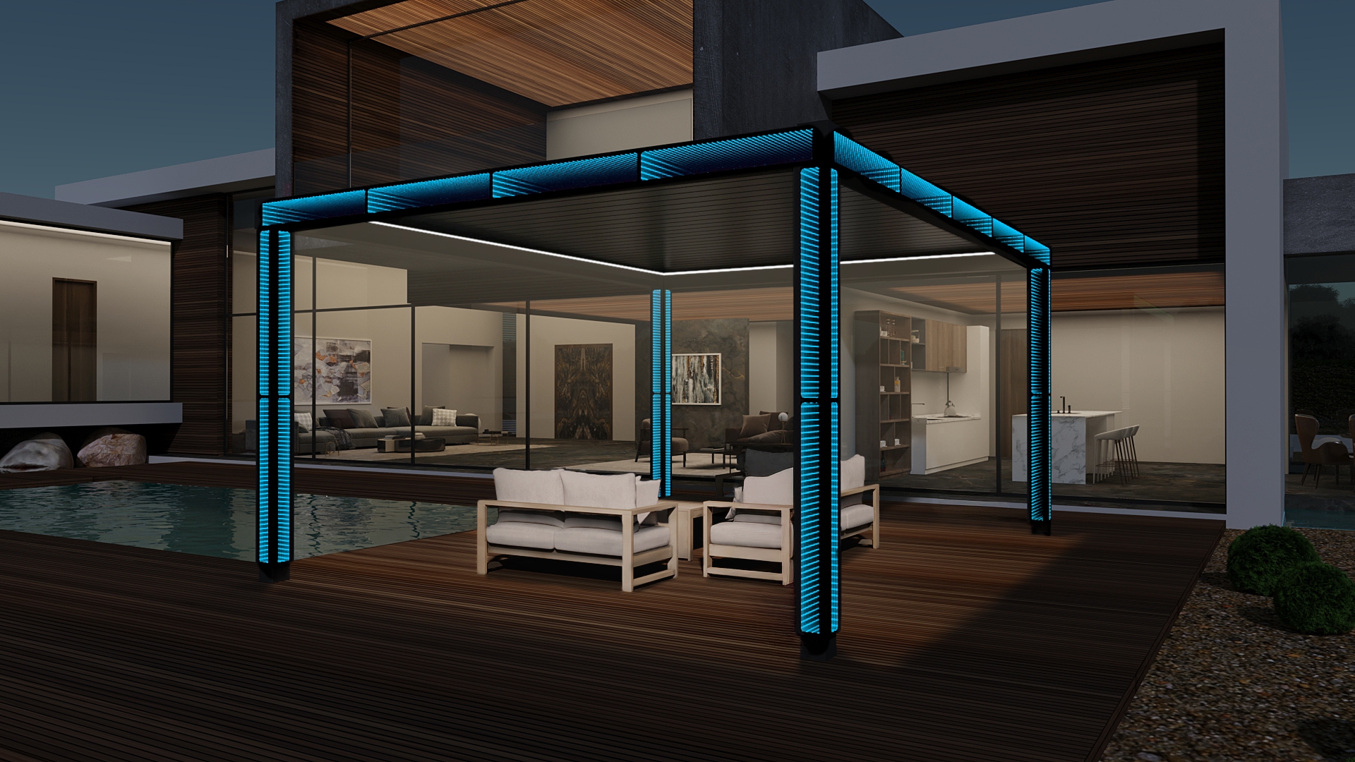 Entry DescriptionThe patented system ILE-InfinityLedExperience set into the entire structure of the bioclimatic pergola MIRA uses a combination of mirrors and LED lights to create an illusion of depth and infinity that deceives the eye and charms the heart.