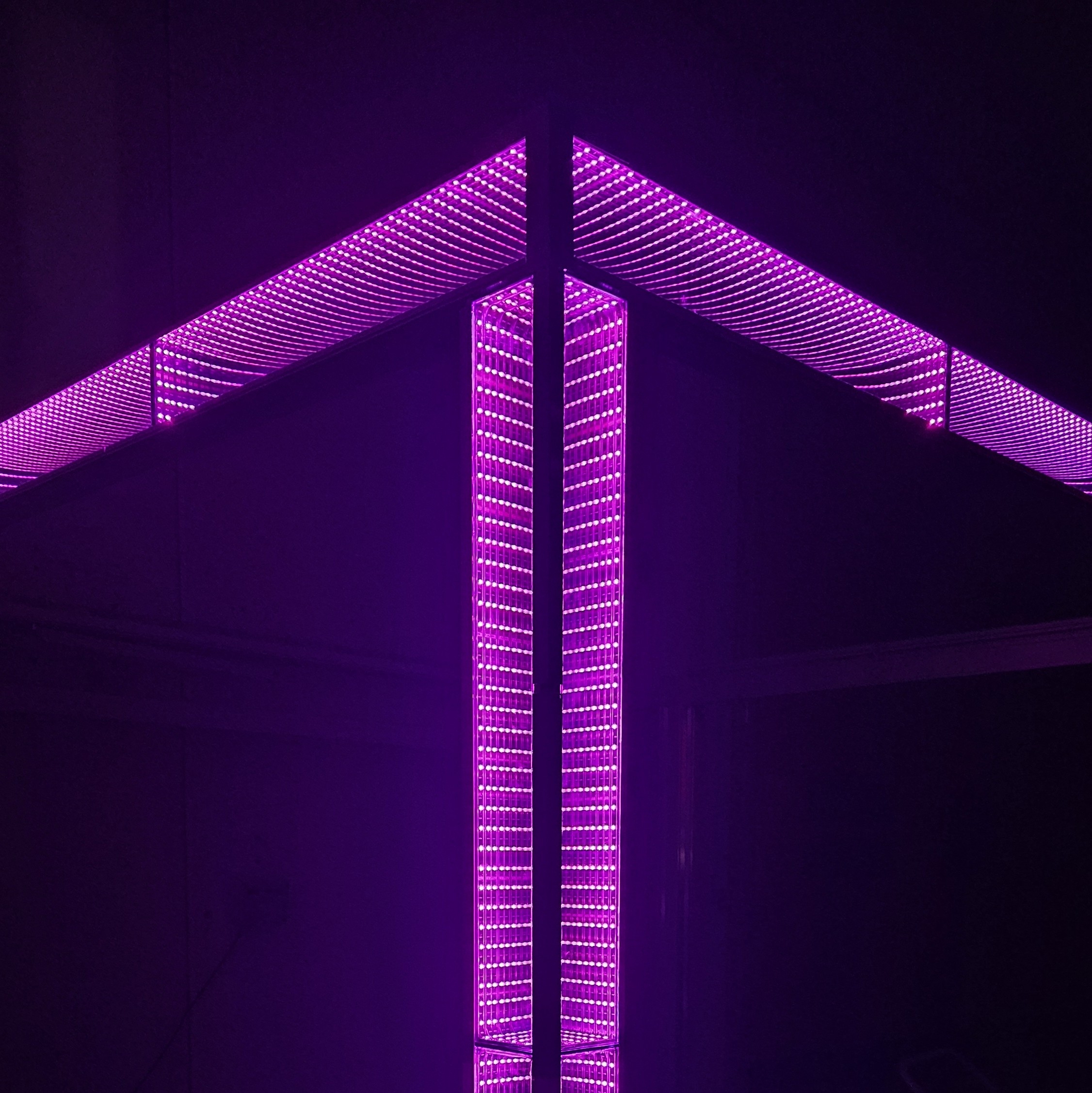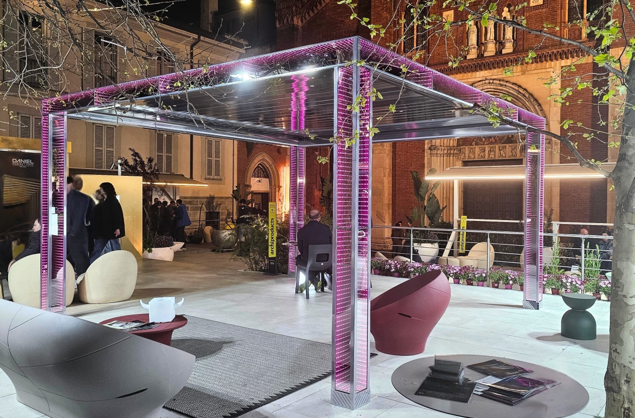 What makes MIRA so special is the ILE modules integrated on the entire structure, a system based on a principle of lighting design and then developed into a visionary expression. During the day, the ILE modules appear as mirrored surfaces that reflect the surrounding landscape, so that MIRA blends in, almost invisible. When the sun sets, the real magic begins: MIRA lights up, transforming into the centrepiece of any space of your garden and outdoors. Thanks to an illusion created by mirrors and LED lights, it seems empty with infinite lights for an effect with a high emotional impact.