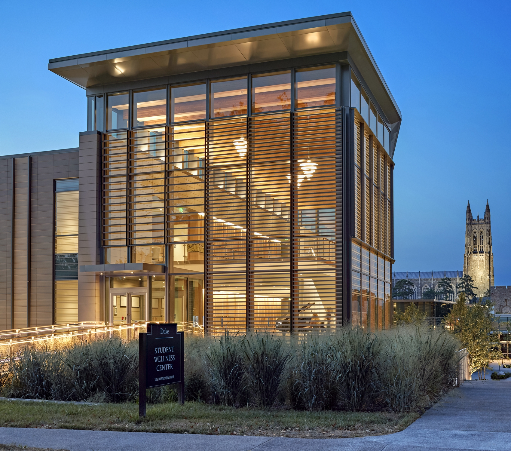 Entry DescriptionDuke University's new, LEED Silver Student Wellness Center is designed to be integral to the healing process through its "sensitive response to the human condition.” The Center’s lighting design actively contributes to making this vision a reality.