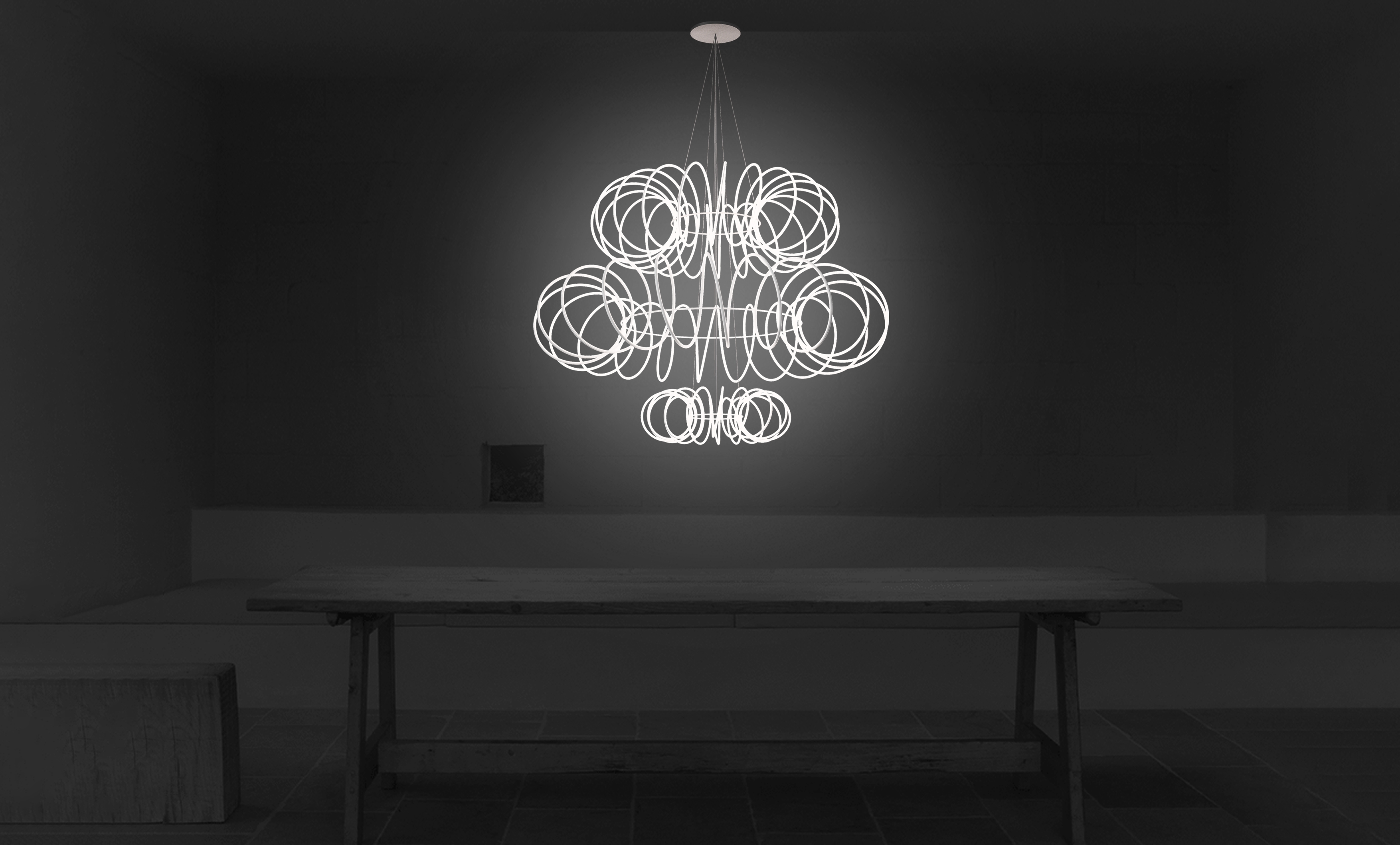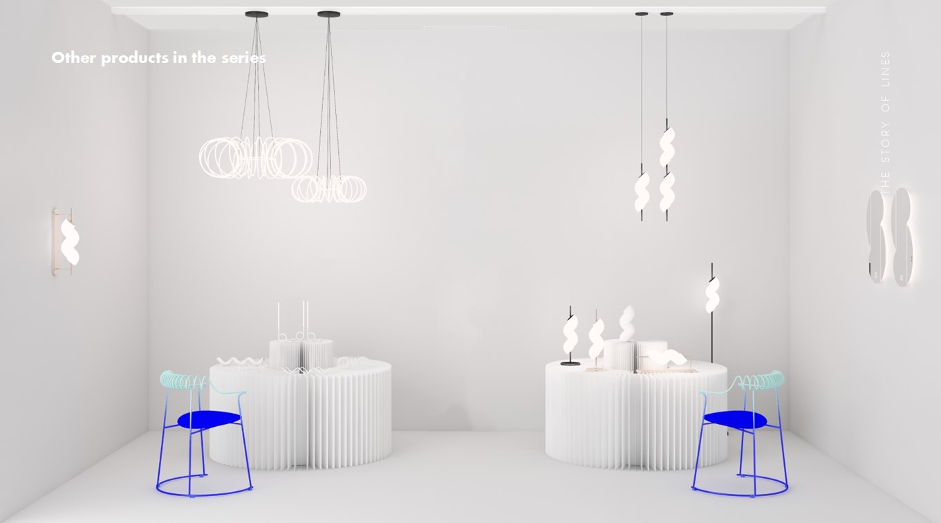 The inspiration for “The story of lines" lighting products comes from the exploration of the visual language of curves. This series uses minimalist visual language to create a rich visual experience, fully presenting the beauty of curves. All the single - unit lamps are derived from a perfect, smooth, and closed curve that connects end - to - end after being spiraled.The single units of the line lamps come in three specifications, which are 120mm, 900mm and 600mm respectively. These three sizes can be used individually or in combination. Through permutations and combinations of the three modules, a variety of shapes can be created, which can adapt to spaces of different scales.