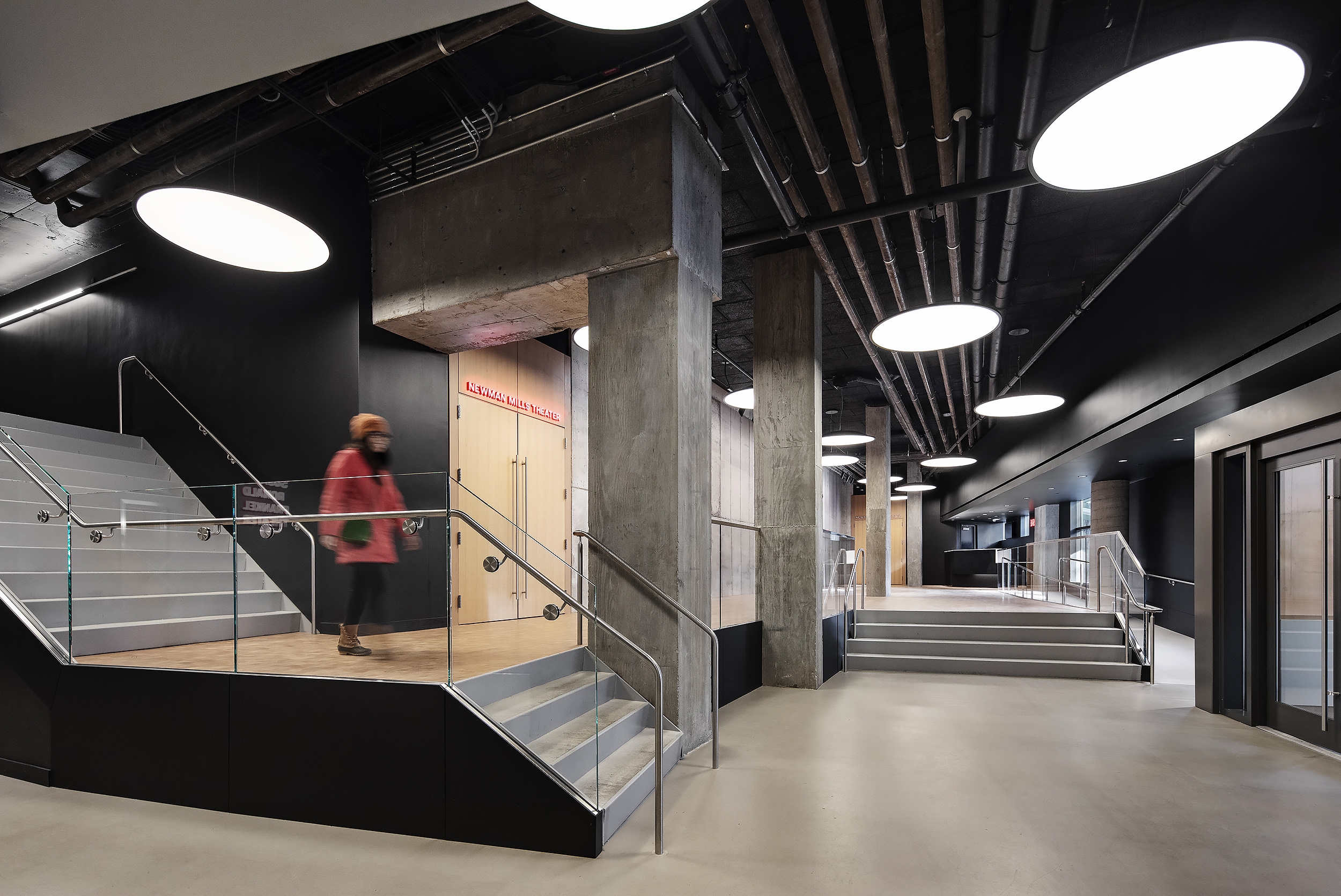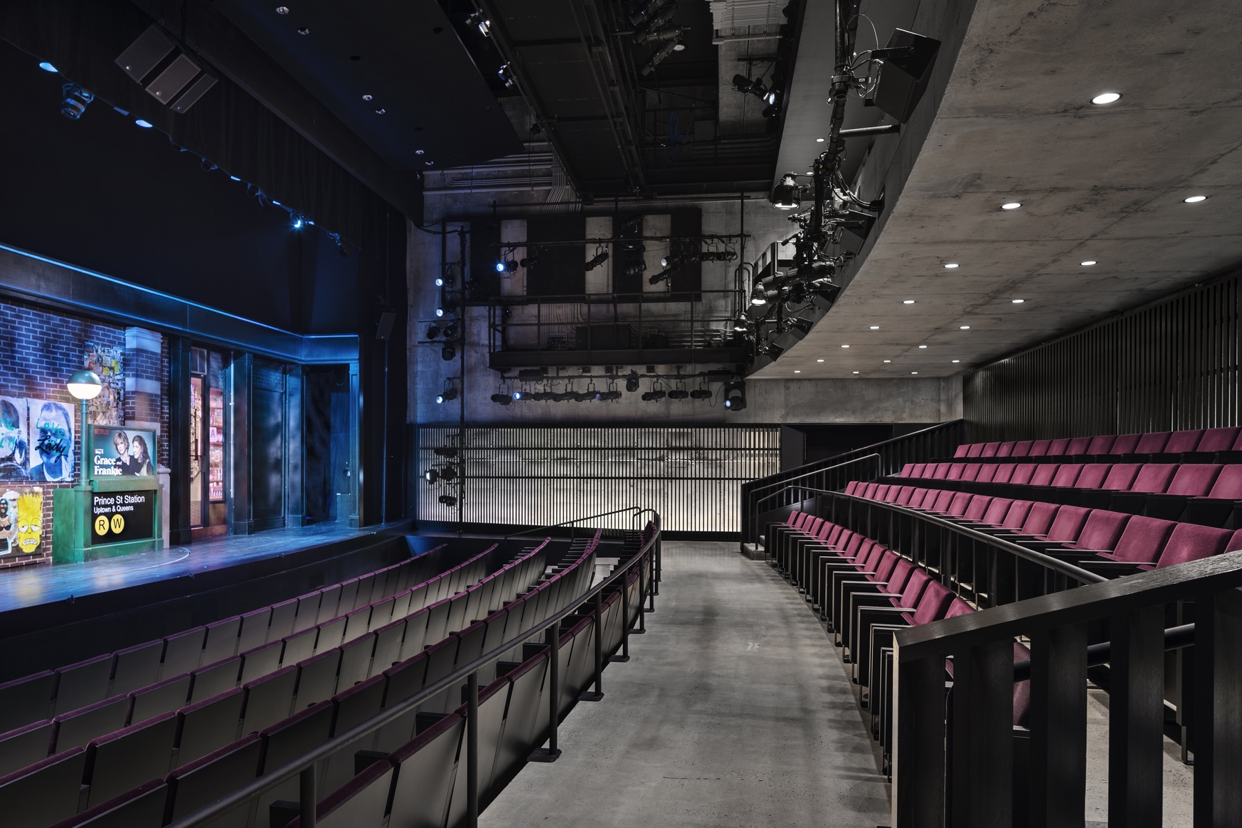Entry DescriptionMCC Theater is the new home for a prestigious off-Broadway stage group. The lighting is part of a conversation between the materials used in each space. With an architectural palette that ranges from unfinished concrete to glazed painted walls and veneered wood accents, the lighting is the unifying element among these contrasting surfaces. The lighting provides the finishing touch to the architecture, enabling an authentic reading of the materials while also weaving these disparate elements into a finished whole.