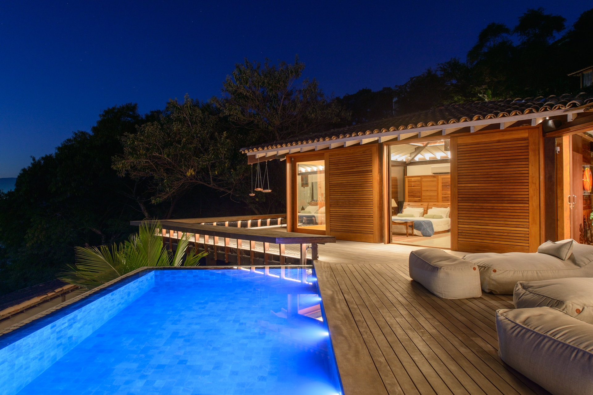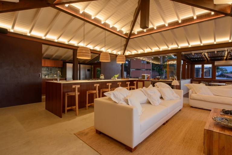 In interior spaces, soft washes of light embrace walls and ceilings, highlighting the architectural structure while evoking warmth and intimacy. In circulation areas and bedrooms, the lighting subtly guides movement, offering ambient continuity across spaces. Outdoors, the approach becomes more theatrical embedded in the pool deck and railings, creating delicate reflections that echo the natural horizon and wate.