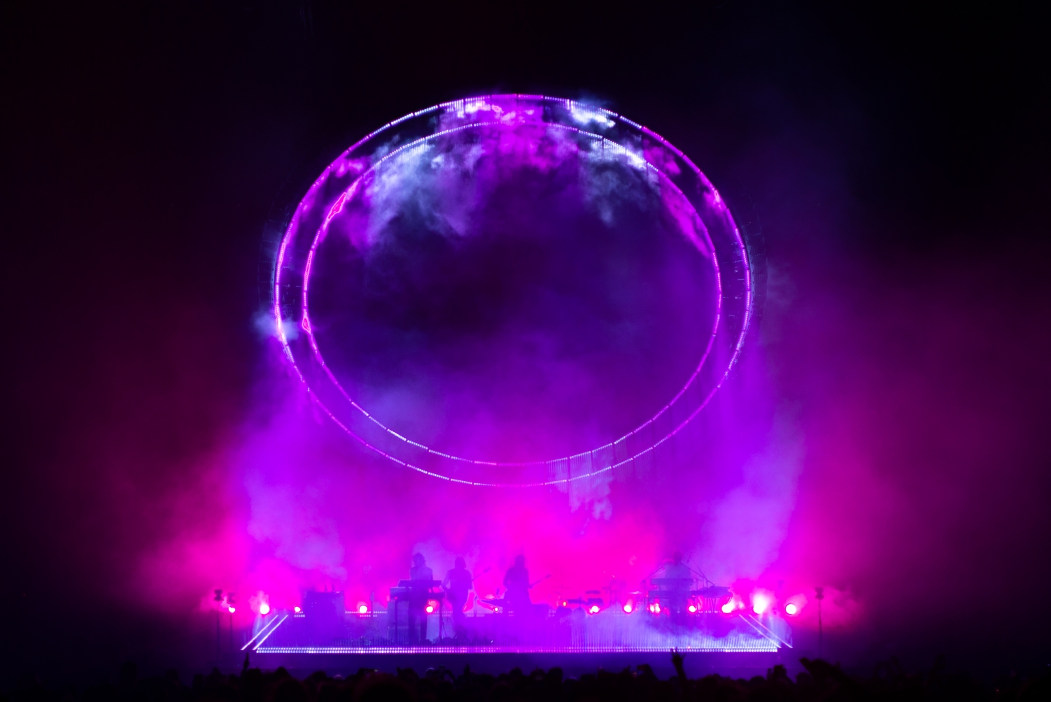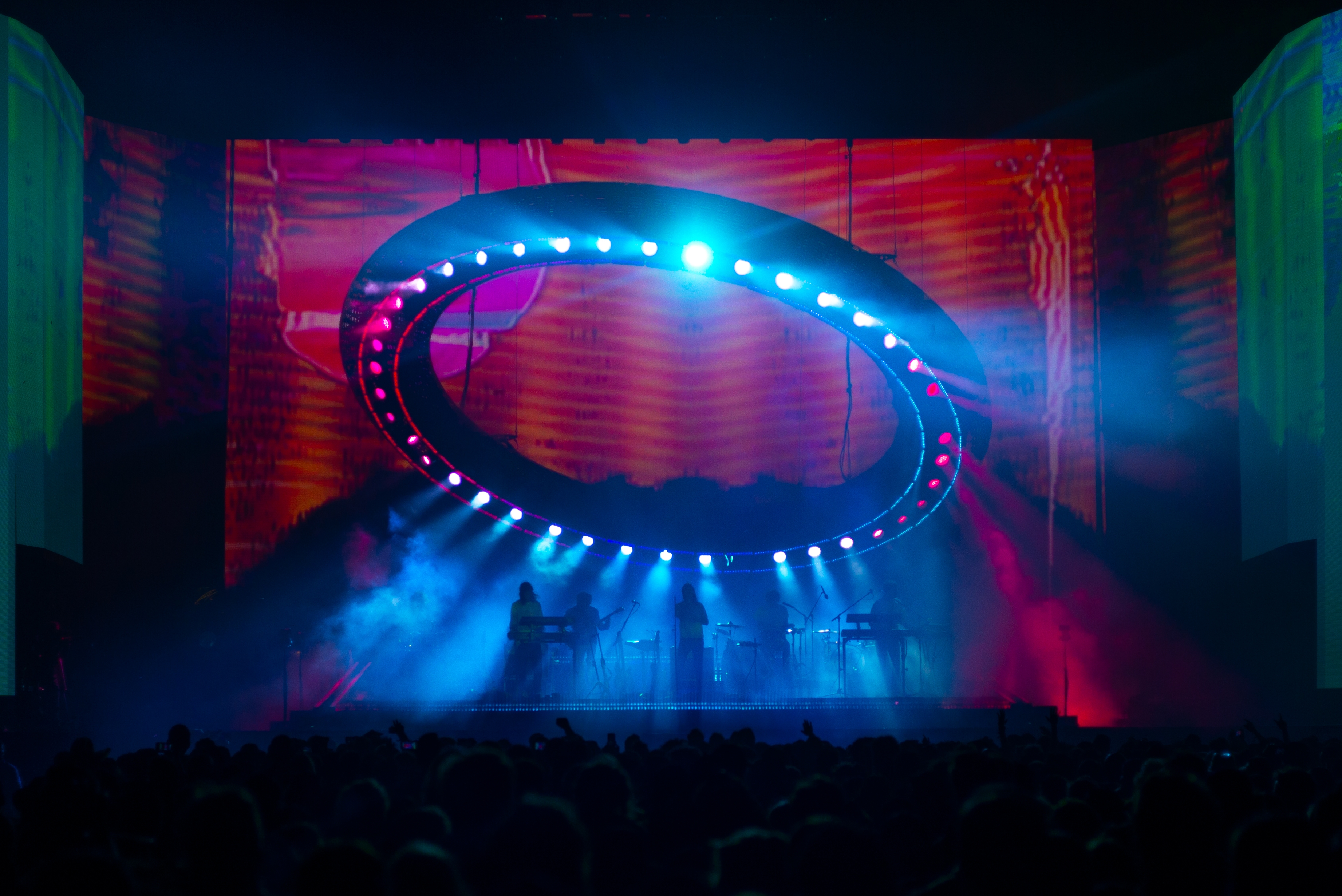 Entry DescriptionThe lighting design for Tame Impala's Coachella set was a contemporary update of a 60's psychedelic light show. Under the creative direction of Willo Perron we created an intricate, precise lighting scheme that was cued to each beat of the music. Swirling gradients replaced solid colours and sharp moments of blinding strobes punctuated musical accents. Lighting, video, effects and an army of lasers were programmed with one voice. An iconic 40' wide ring of light bucked vertically and descended down onto the band.