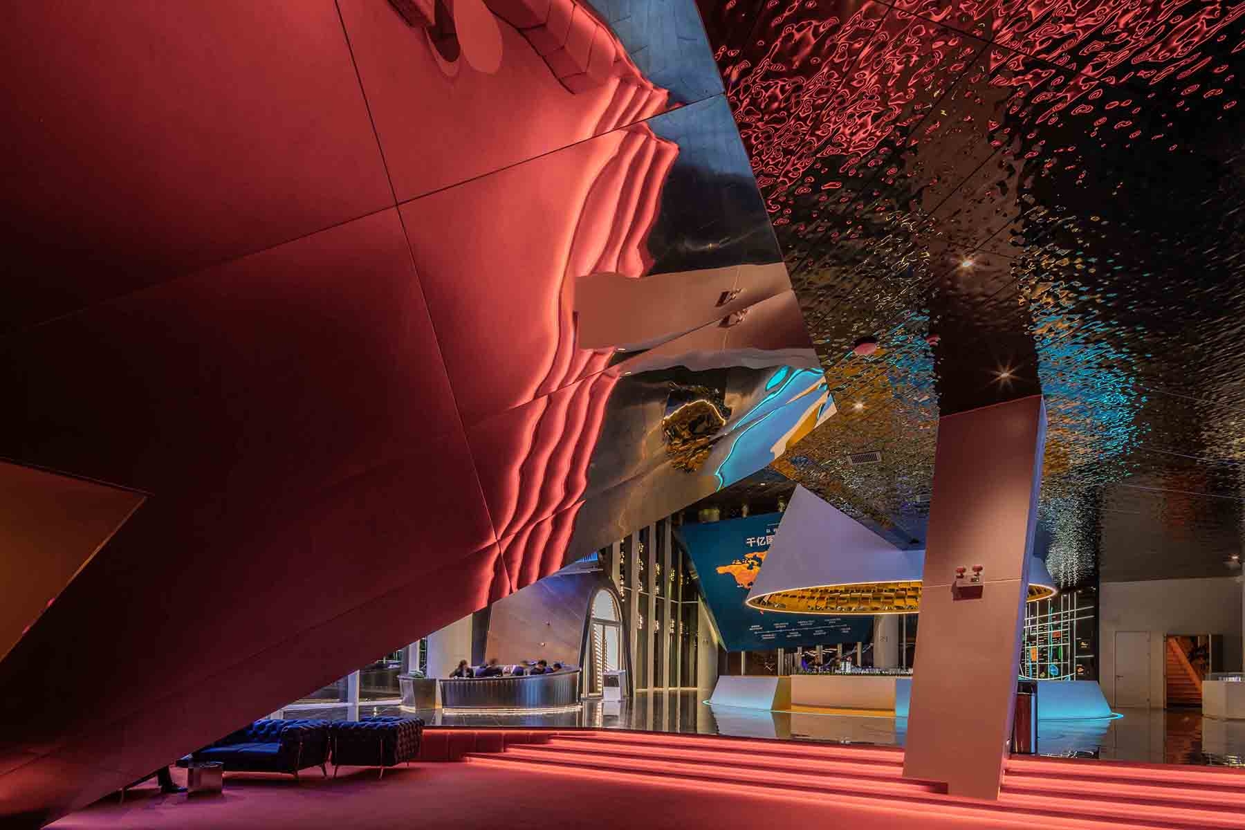 Entry DescriptionThis is a fantasy and uncommon space where buildings of various shapes are ‘floating’ in space. What kind of light is needed for such a space? Of course, it is also a fantasy and uncommon light. We have chosen a colorful, infinitely variable light. In this space, there are two sets of lighting systems: 3000K track lights that can be used for general lighting, and track lights that can be changed in RGB?red, green and blue?.In order not to damage the integrity of the space ceiling, we installed these two track luminaires on the vertical curtain wall ribs, in this way, we tried to avoid installing the luminaires on the celling. This is our greatest innovation in this project. In addition, the biggest challenge of this project is the material of the building. The architect used a lot of metal on the ceiling and the ground. In order to avoid the coming of a lot of reflection in the space, we added soft lens and anti-glare accessories to the luminaires, and adjusted the angles of the luminaires to avoid the discomfort of human eyes. People will experience this kind of different light for the first time in such a type of space.