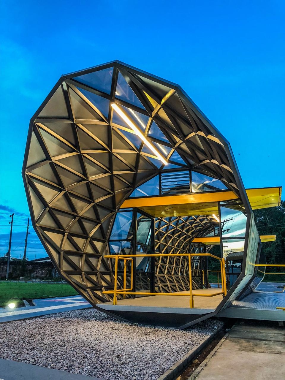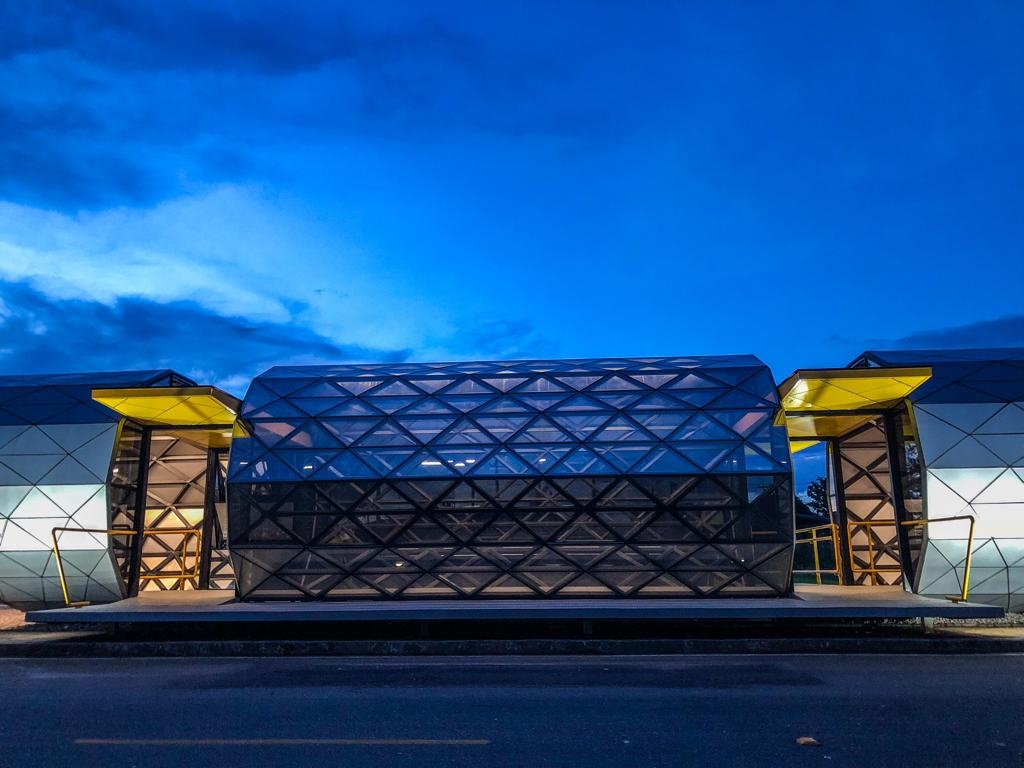 Located in the city of Belém do Pará, Brazil, right in the heart of the Amazon. To mark the entrance to the city's new regional hospital, we were hired to do the lighting project for a bus station that is a hallmark of the hospital's entrance.