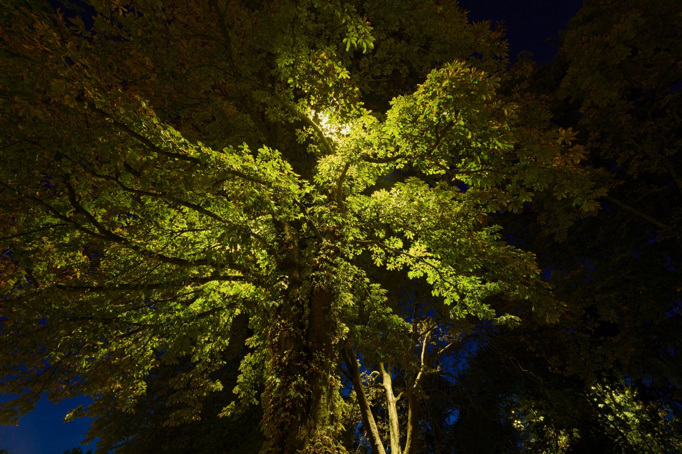 Branches and leaves cast wonderful shadows on the ground, just like the sun does during the day. In this way it is possible to experience the full size of the trees in the dark for the first time. We don't use any other path lighting inside the park. All lighting is created invisibly from inside the plants. A pavilion was built as an entrance to the park, which we illuminated to create a soft carpet of light. This creates a wonderful atmosphere that invites the visitor to walk and dream. We can't touch light, but it touches us. This project shows this in a wonderful way.