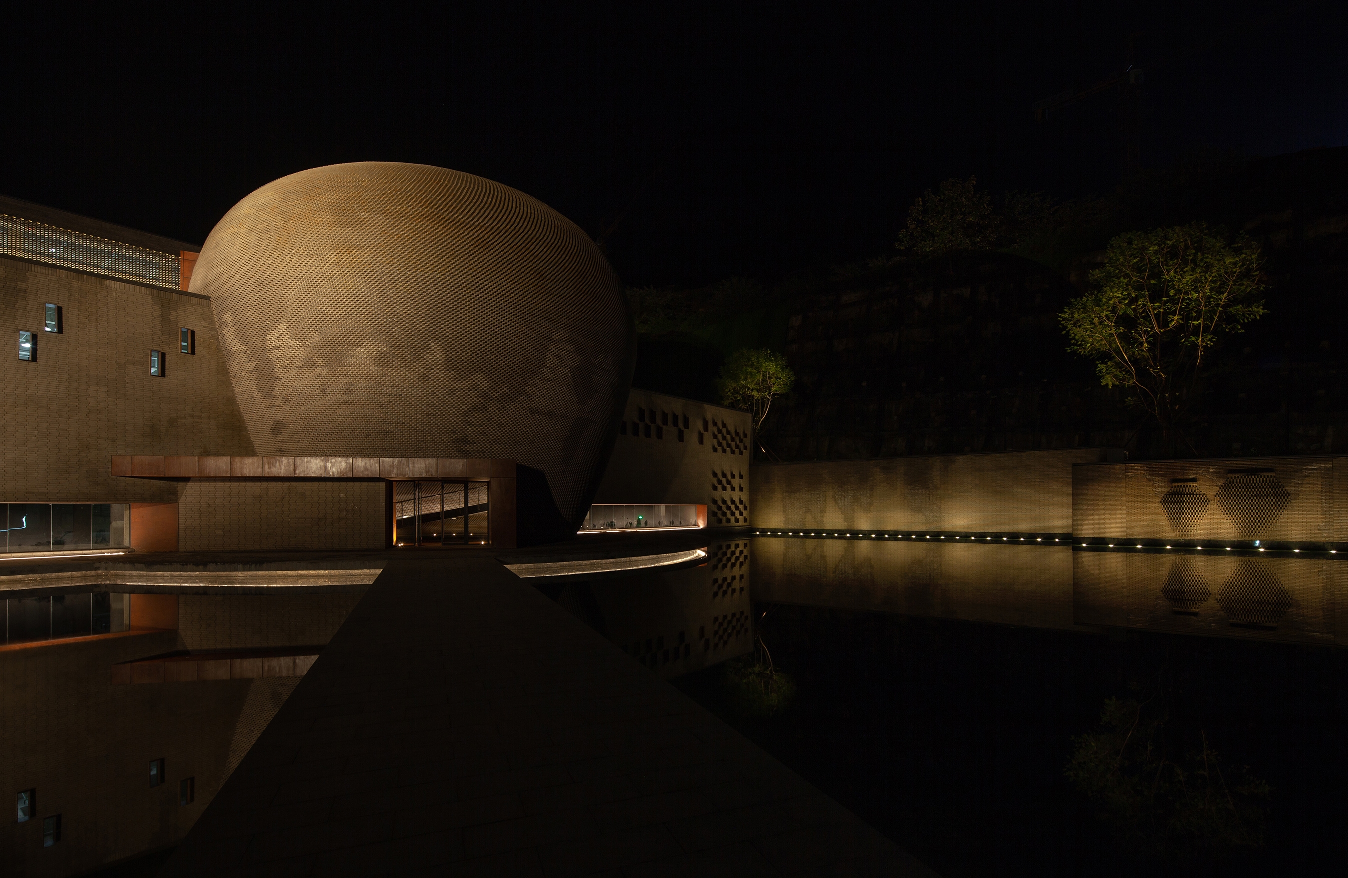 Langjiu Group plans to invest 10 billion RMB to build Lang Liquor Manor, and the pottery jar in the "Taotan Library" in the four cheats of Lang Liquor is where our project Jinzunbao is located. The project integrates functions such as visits, vacations, wine tasting and sales. The earthy tones of the outer layer of the Jinzunbao are full of mystery. The jars of wine are facing the winery, and they are buckled on the square pool, meaning the place of heaven and earth, and telling the most national view of the Chinese universe. Moreover, the winery presents a three-dimensional surface, which is made up of layers of terracotta tiles to create dense ripples. And every night, the lights are lit, and the Jinzunbao is the bright pearl of the entire manor, modern, fashionable and mysterious.