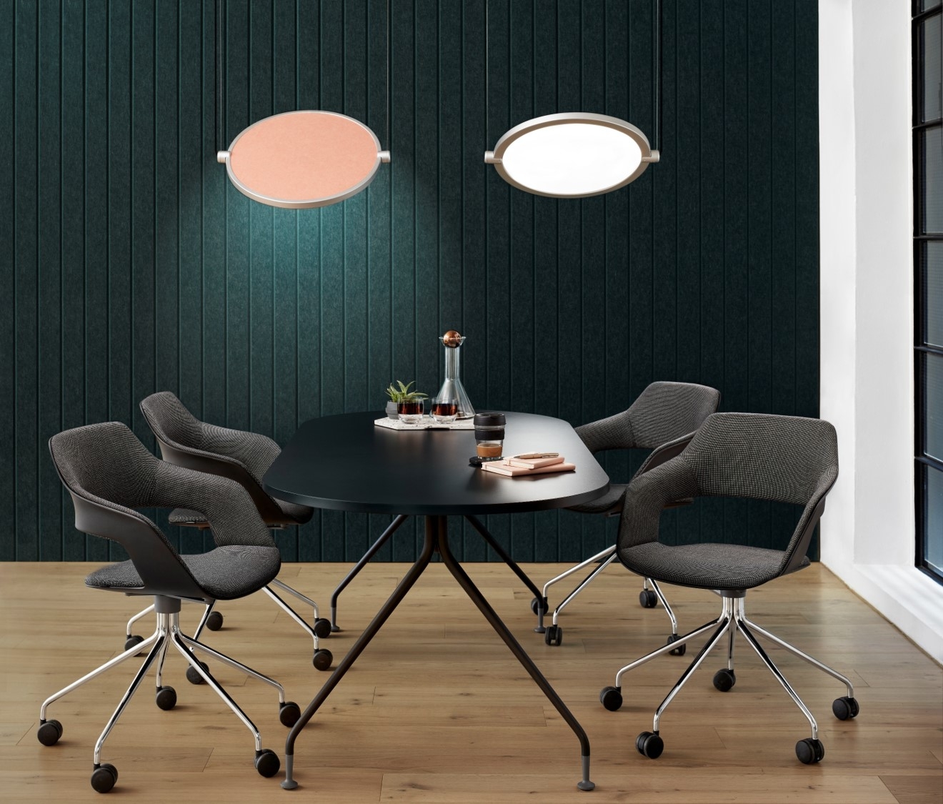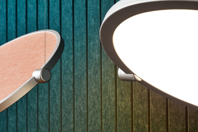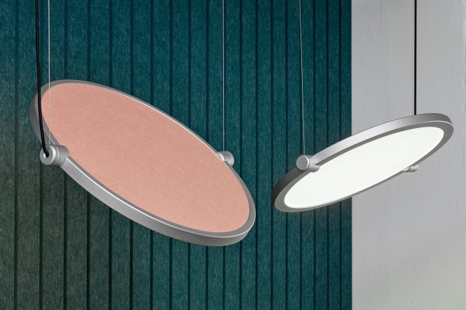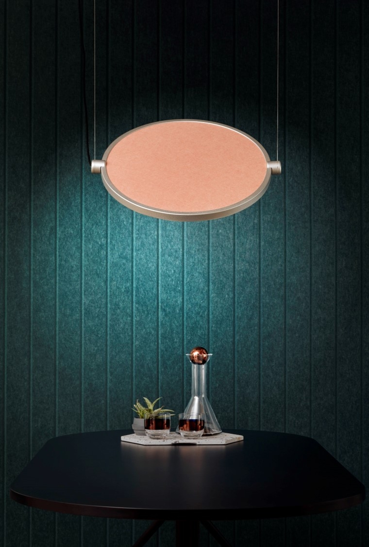 Entry DescriptionThe Luxxbox Ac-lipse acoustic light is a striking, noise-absorbing luminaire that reduces reverberations in open-place spaces. Distracting noise is the leading cause of stress, fatigue and poor productivity in open offices. Designed to element noise whilst contributing functional illumination to work surfaces, Ac-lipse is more efficient and economical than traditional acoustic solutions such as drapes or ceiling tiles. The 12mm acoustic panel has a noise reduction coefficient (NRC) of 0.75, absorbing as much as 75% of reverberated sound. Available in 19 colors, the acoustic material in Ac-lipse is manufactured from 65% recycled material and is fully recyclable. The light-weight aluminium frame is also fully customisable and available in many different colours and anodized finishes. Featuring two suspension points, Ac-lipse can pivot 360º on these 2 axes, offering multi-directional light output. Single fixtures can be suspended over conference tables or desks, or clustered together to create a statement installation. Ac-lipse is manufactured and assembled by the designer’s own hands for short lead times, competitive pricing, and guaranteed high quality.