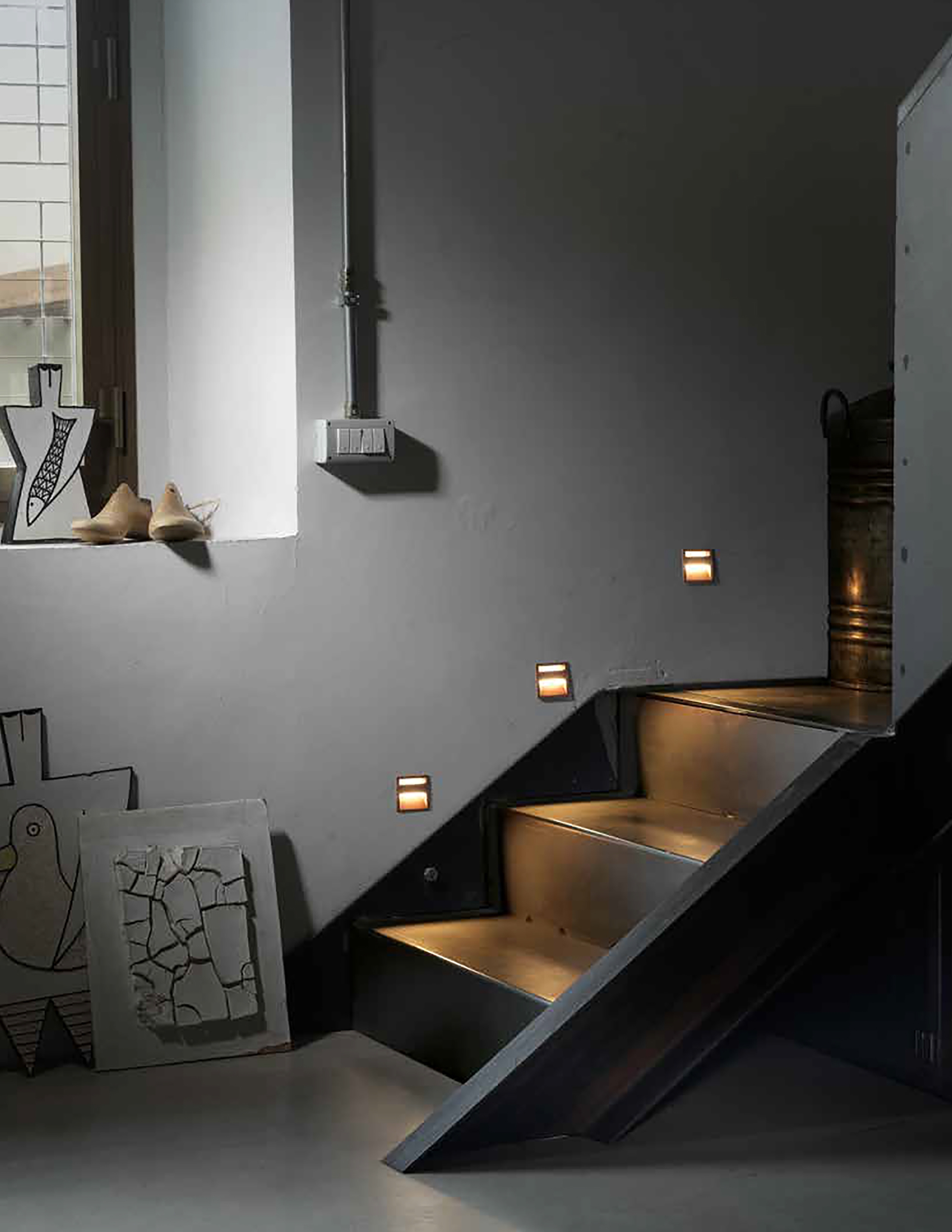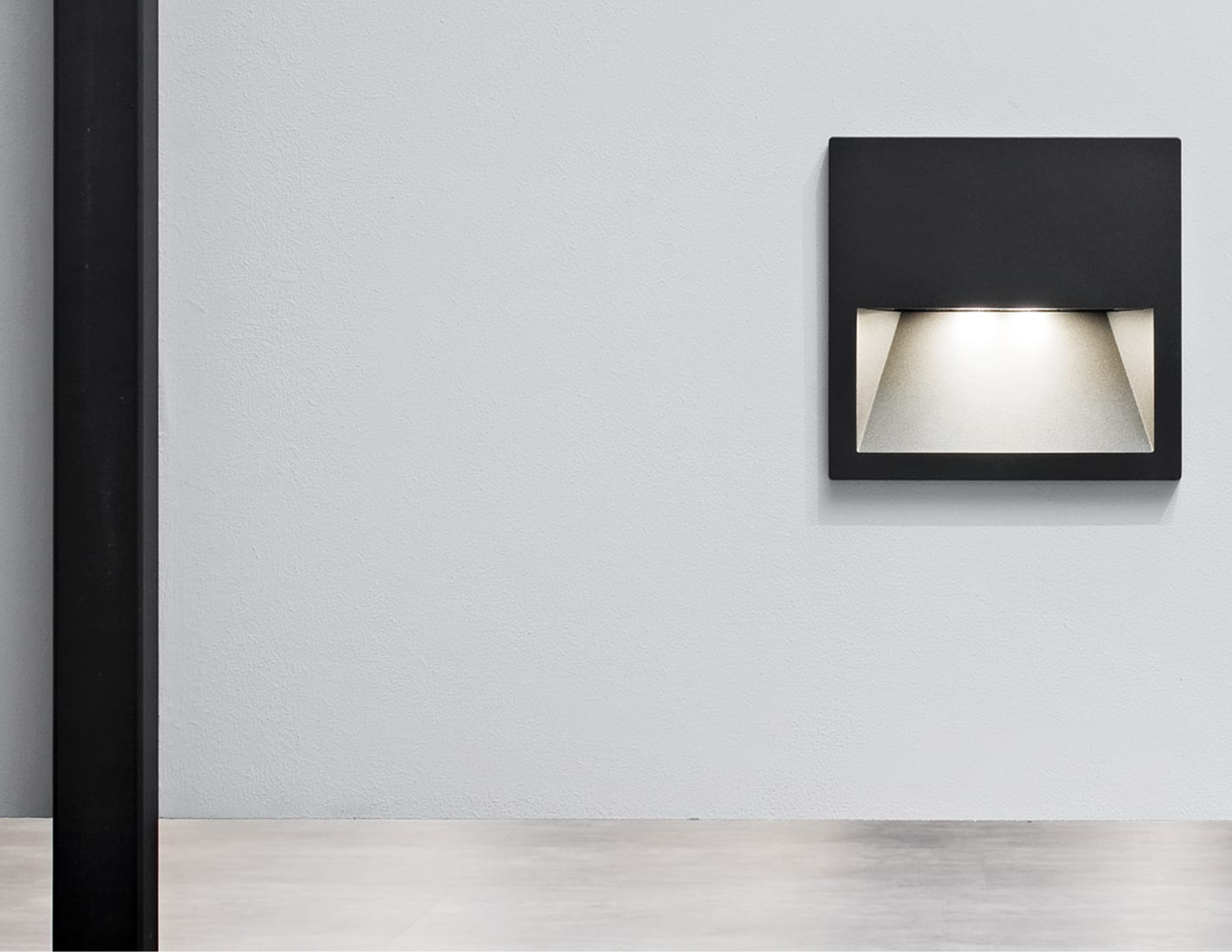The light produced by the product is discrete, deep, and wide—all while creating different natural and spontaneous lighting atmospheres that are strong and sharp, allowing light to flow and the architecture to be accentuated. Its glow leads nocturnal movements in private contexts, while the clear and incisive effect it produces reassures footsteps on outside paths.