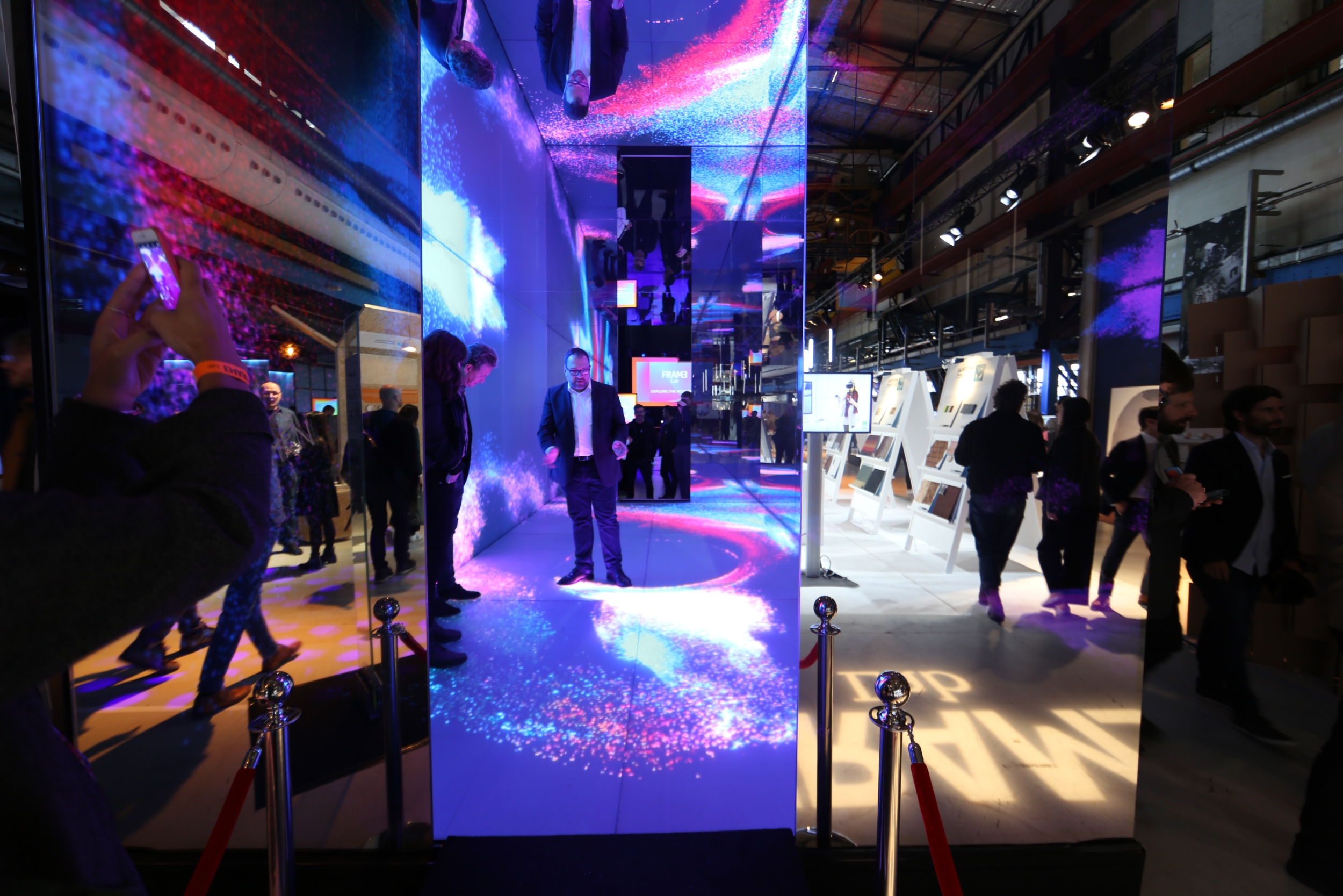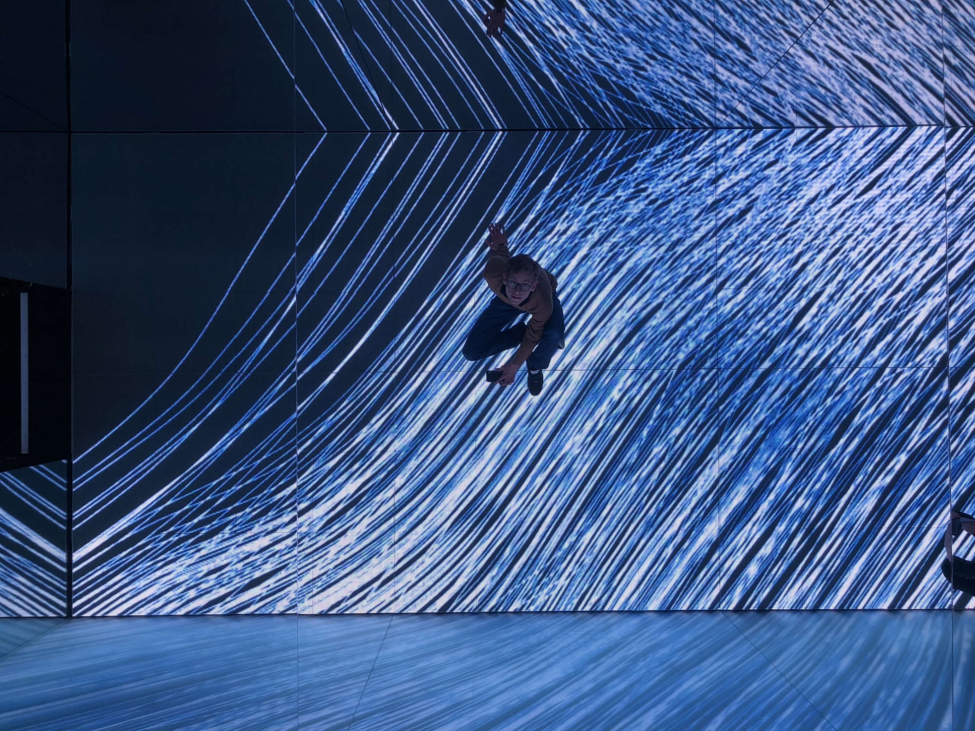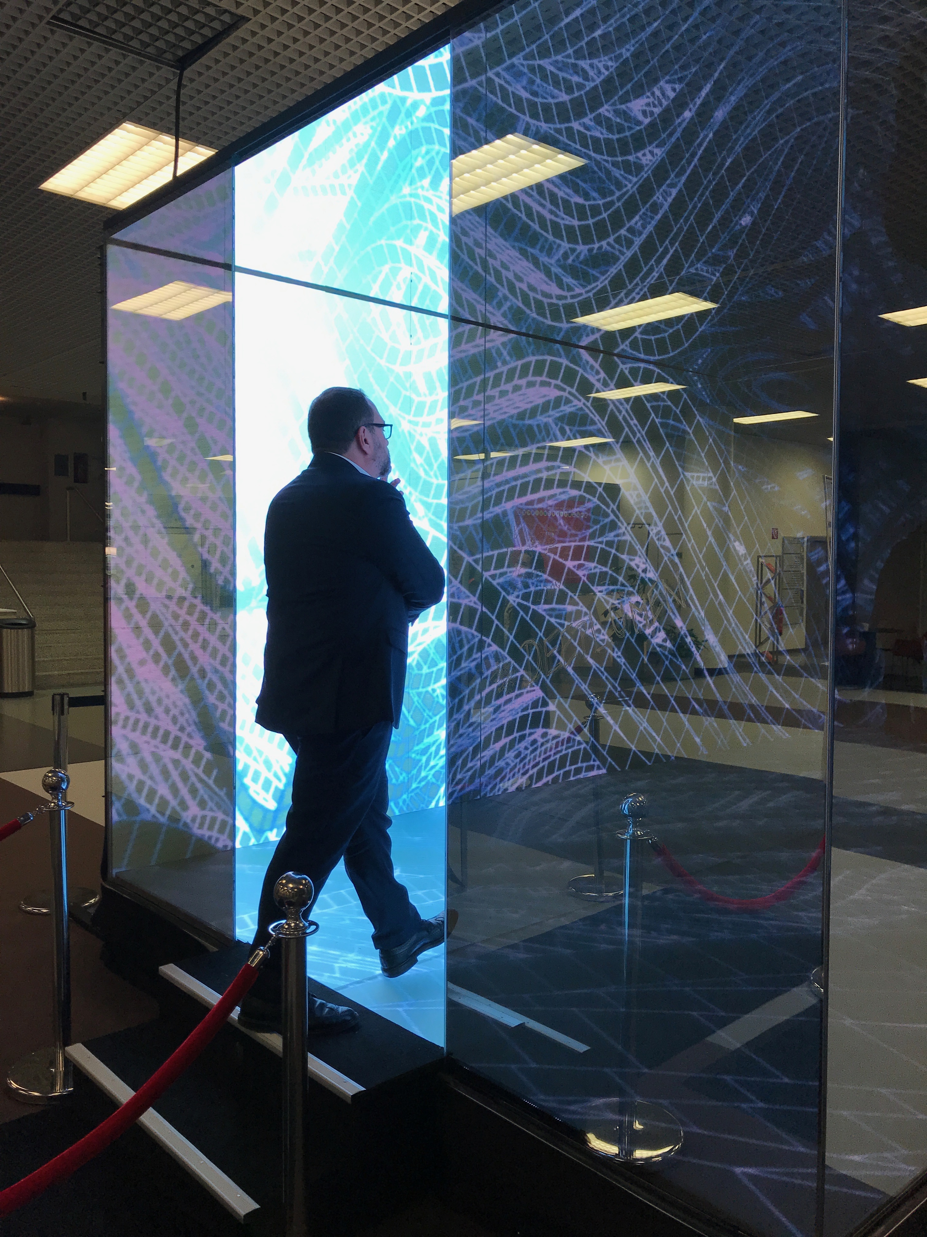 The 3m x 6m self-supporting cube with an internal height of 2.5m is entirely designed from specially engineered glass on all walls and the floor. Whilst three walls and the ceiling are reflective, the floor and one side wall are the translucent screens for over 800,000 LEDs. The LEDs are installed behind opaque glass, providing a natural screen rather than an LED wall installation.