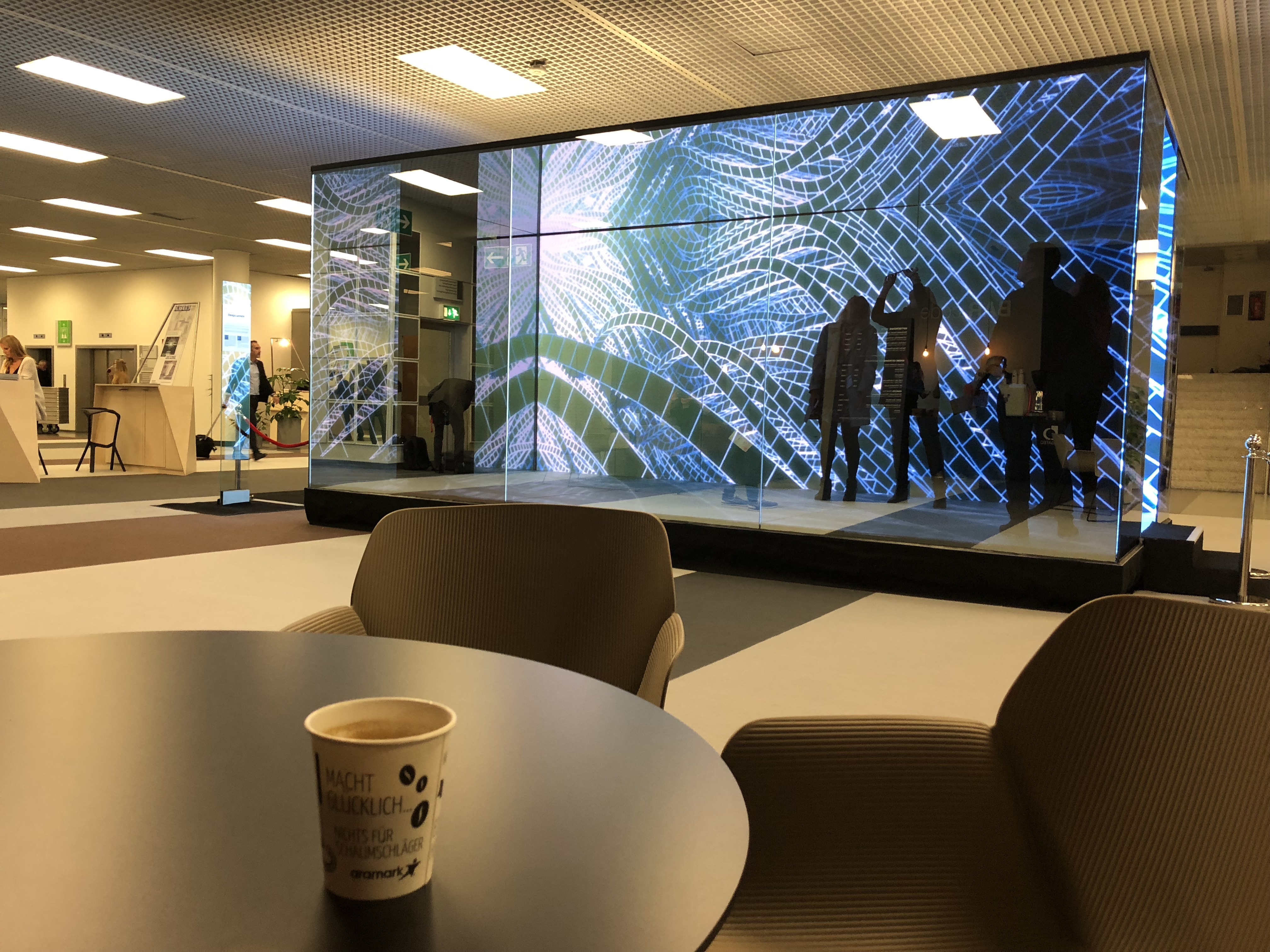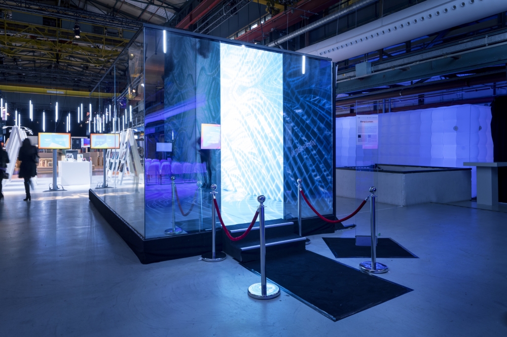 The algorithms create a digital world of illusions that whilst being completely digital create an environment that acts and feels natural. Non-organic media is used to provoke an emotional ambiance that almost feels organic and meets the demands of modern, moving design in a progressive working environment.