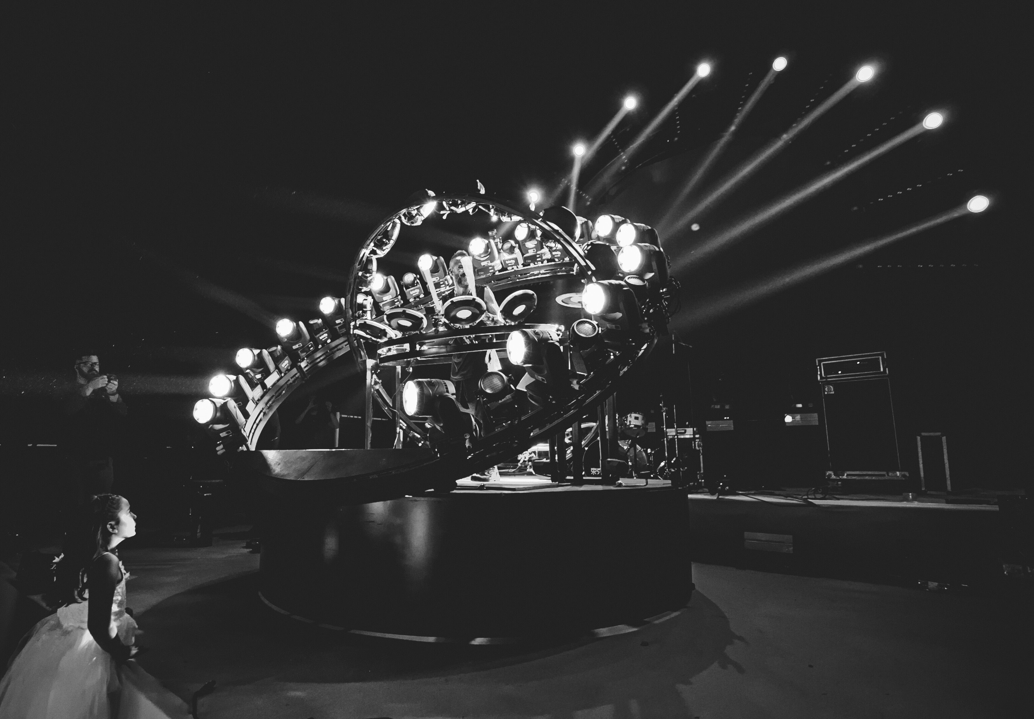 The outer ring equipped with the latest ROBE lighting beam 150 moving light and LED 1light blinders use light as a form of reaching out with bursting energy.