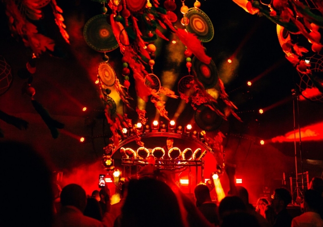 Under the stage there are several effects such as cold fire pyro, smoke gazers and Par led that light up and make the whole stage glow.
