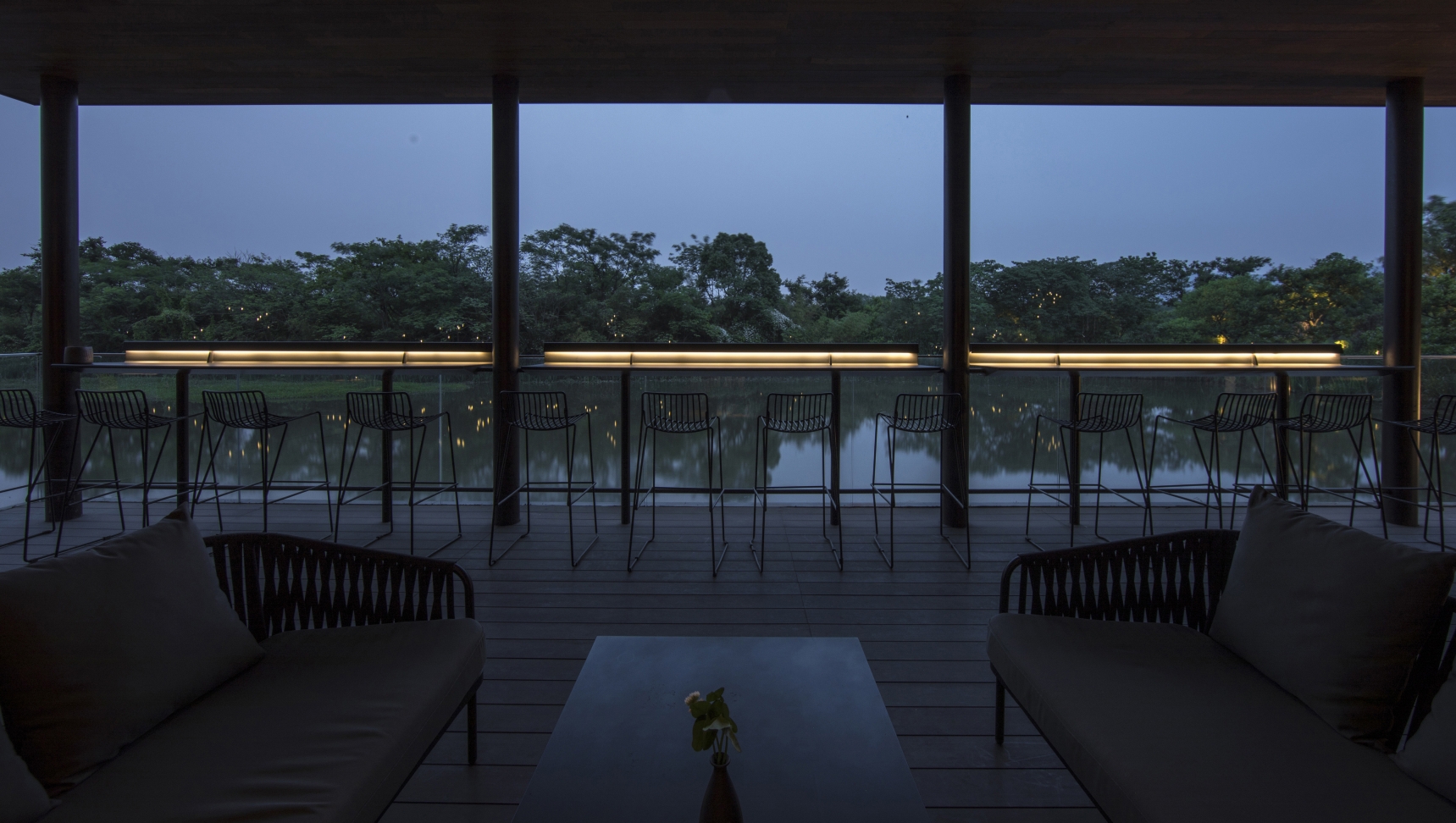 We proposed the concept of illumination by moonlight for this hotel.It is created based on environmental condition of ShoouXi Wetland Park, and decrease interference of artificial lighting as much as possible, while lessening its negative effect on people.Under such concept, find how did local space respond to the lighting environment, we also had to evaluate emotional changes of residents of hotel. Every light had to be carefully positioned, and its effect on human emotion should be maximized.We removed lighting from the range of people’s vision, since we aimed to maximize the natural view of Xixi, most lightings were installed in a lower height.Therefore added more plant lightings and illuminated decorations, hoping to generate layered lighting experience. erasing the uneasiness of the darkened environment around the hotel.we chose several locations in woods to install solar-powered lightings which could emit faint light at night. It reminded us of light of firefly.The natural scenery of the wetland of Xixi is both outward and inward features of the hotel. Through lighting, customers could grasp its meaning. Thus it becomes the key for the hotel to achieve sustainable management.