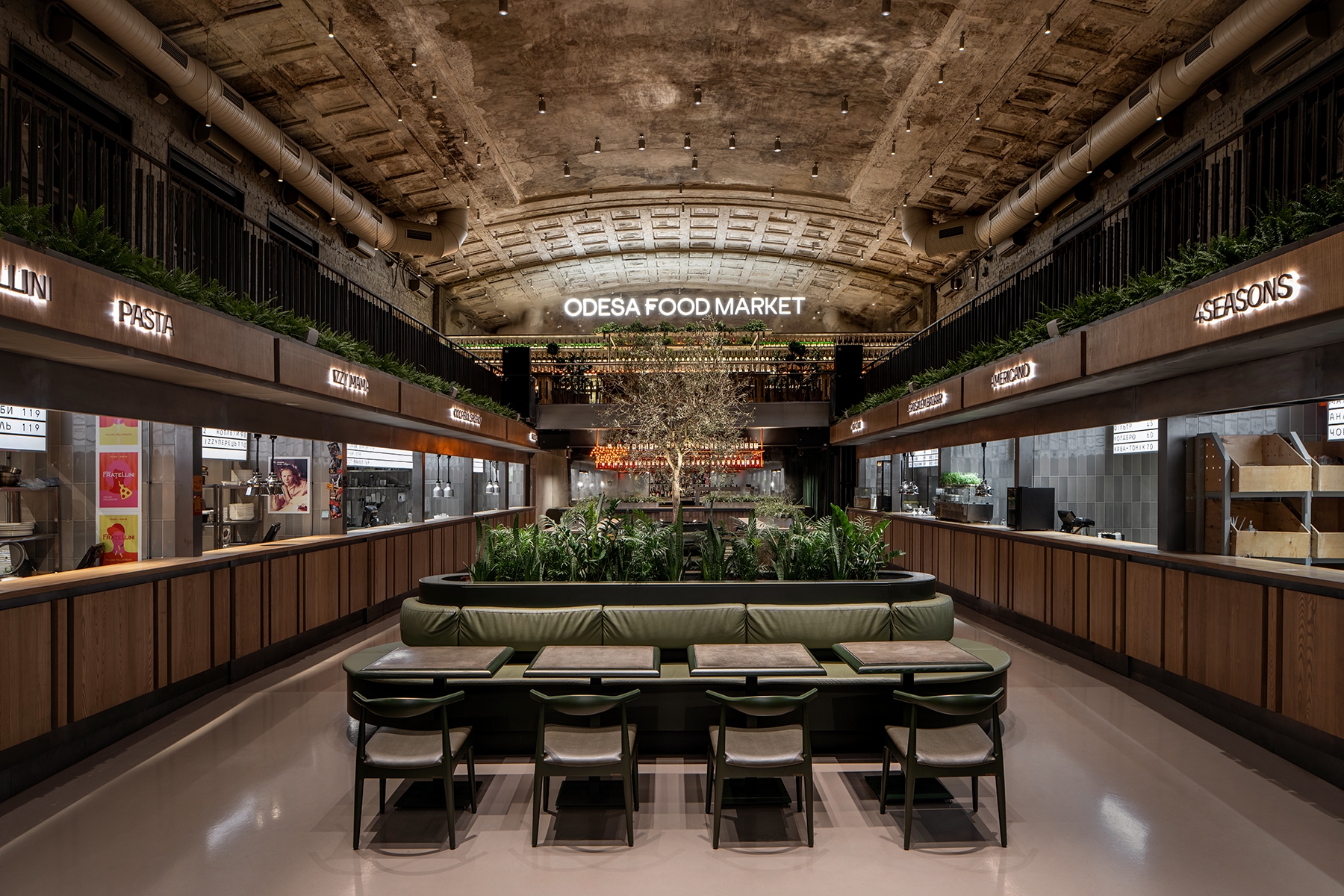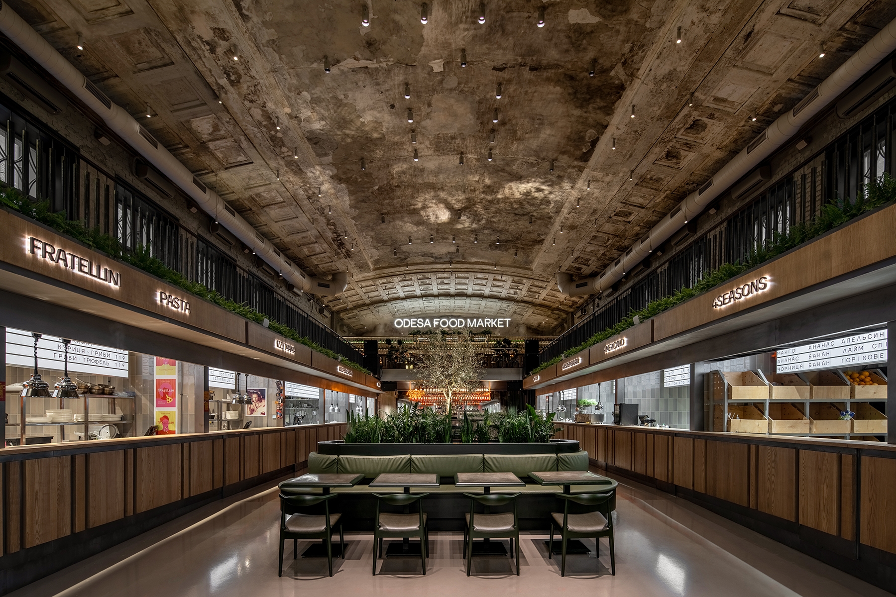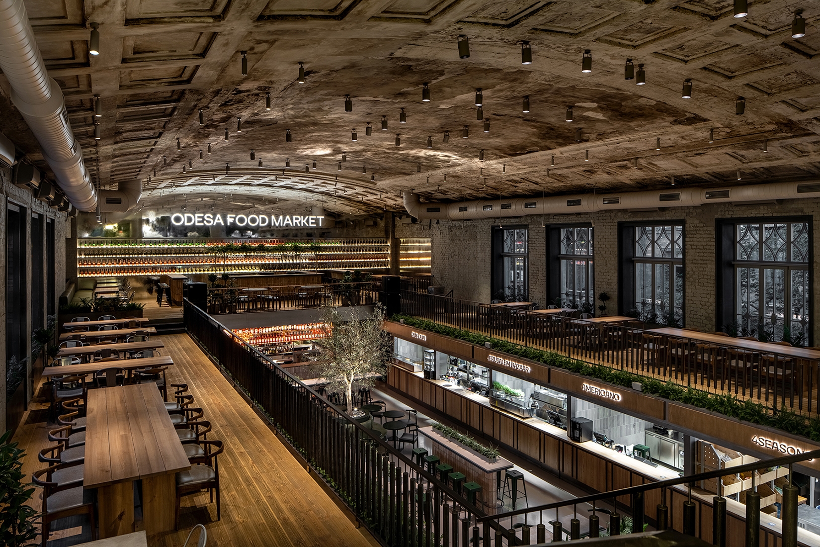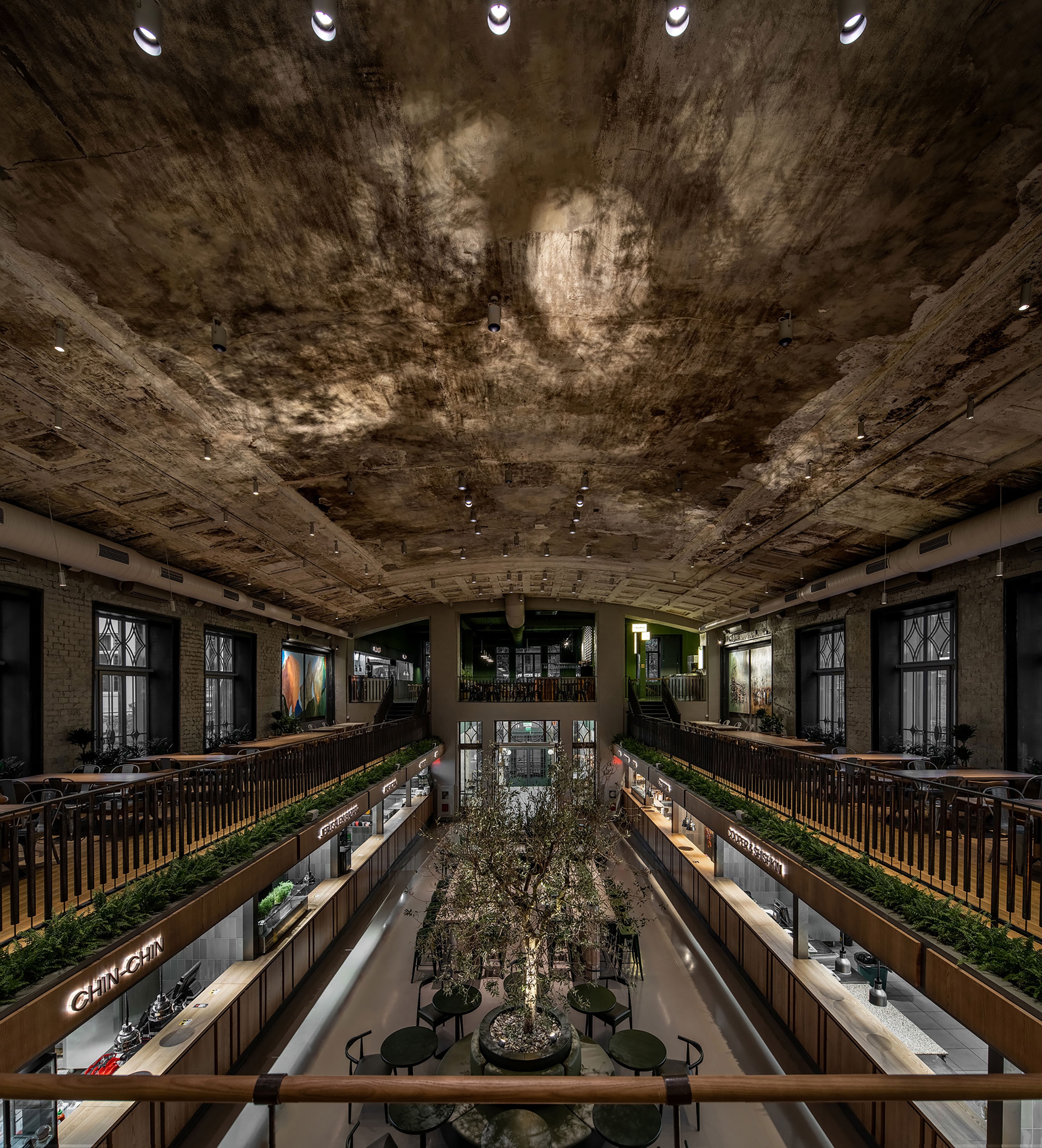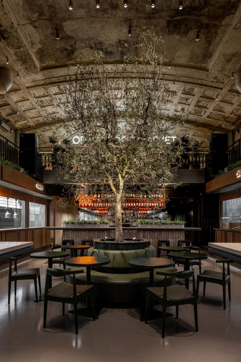 Entry DescriptionThe lighting in the food market changes in sync with the sun to keep it active throughout the day. We have created different atmospheres with light and enhanced the interior architecture.