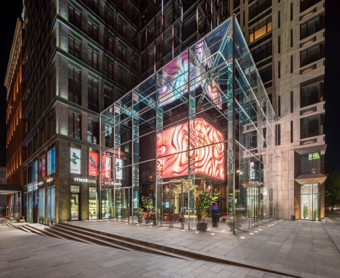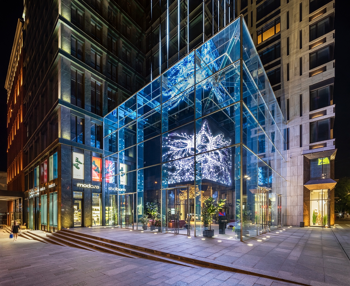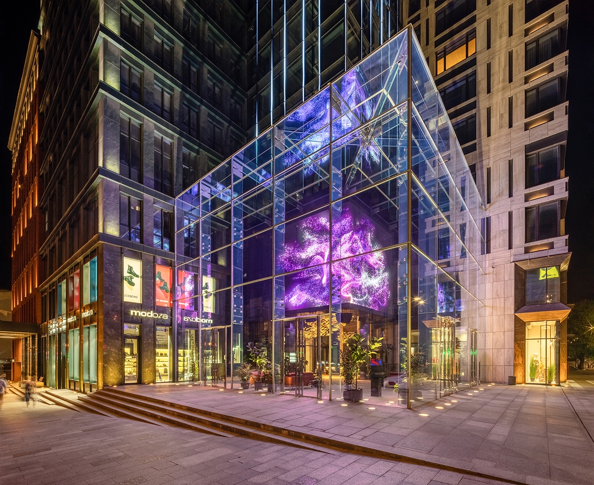 Entry DescriptionThe Cube has become the first large-scale media sculpture in Europe, which, using digital technologies, displays the rhythm of the city.