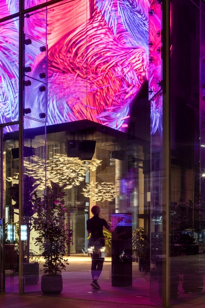 We live at the times when the boundaries between real and digital worlds are increasingly blurred. That encouraged us to create a dynamic sculpture that reflects the city's life in many ways.