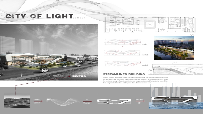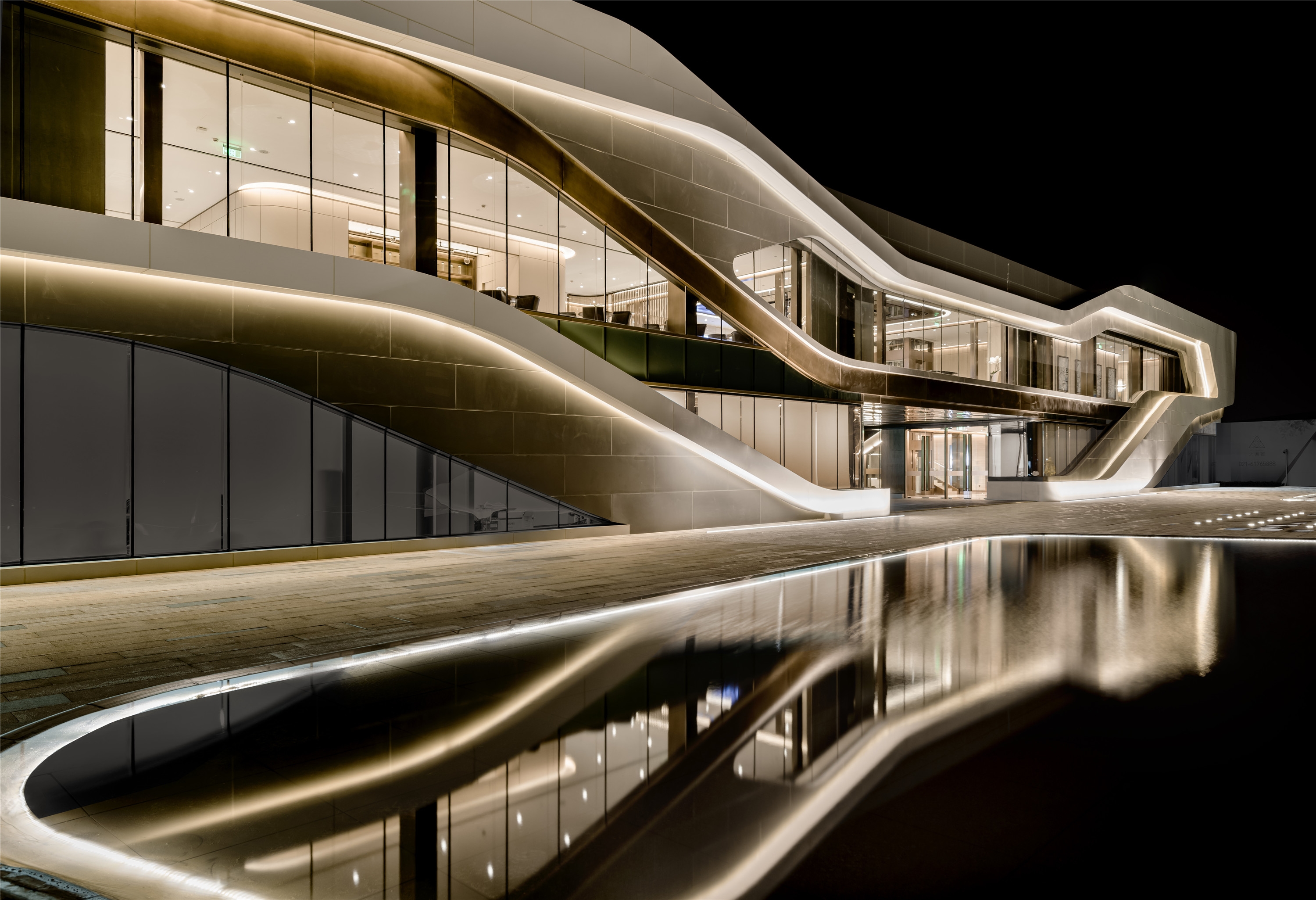 The designer combines curves with geometric shapes to create a streamlined architecture with a sense of technology and future, breaking the traditional concept of Founder architecture, incorporating streamlined fashion design into the architectural design, making the building full of rhythm and modern aesthetics like ocean waves.