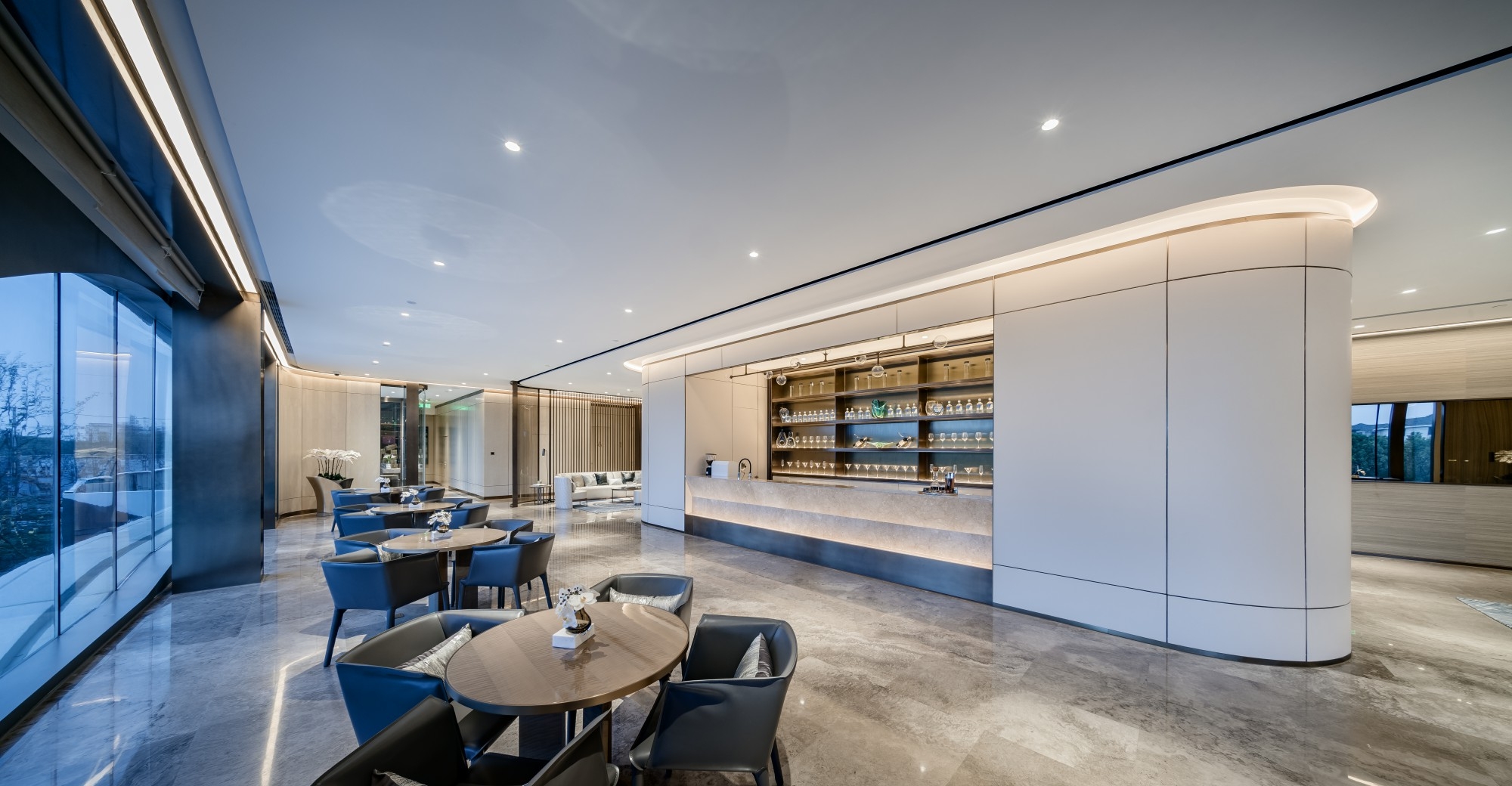 The streamlined texture of the metal creates an exquisite and intimate atmosphere. With the smart design of the LED strip, it shows a simple and fashionable space temperament. The design of the modern art aesthetics hall and multiple functionally interactive spaces with people and culture presents the contemporary humanistic fashion atmosphere.