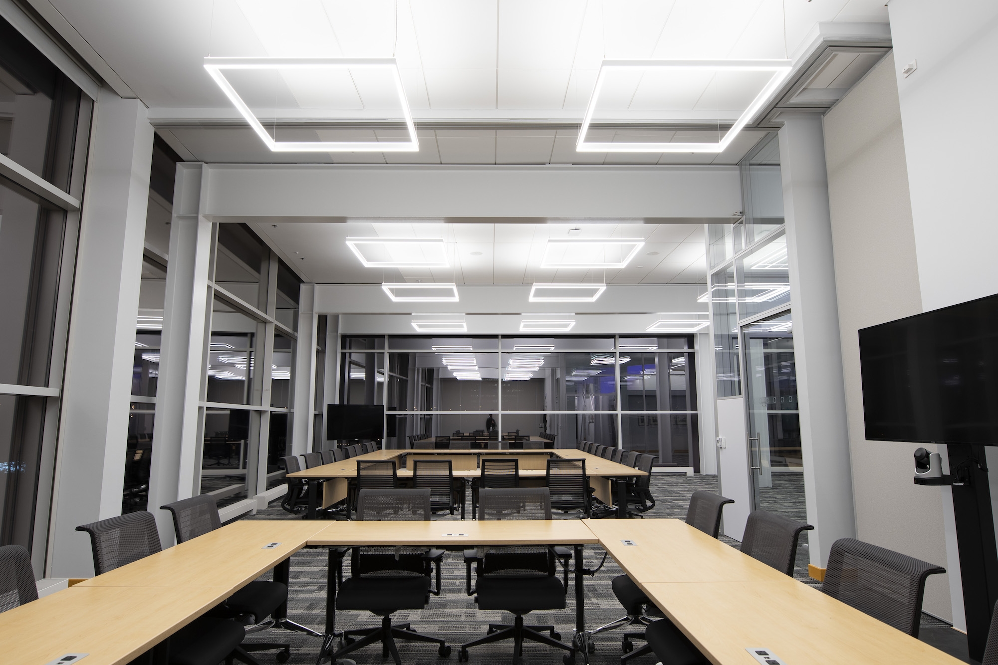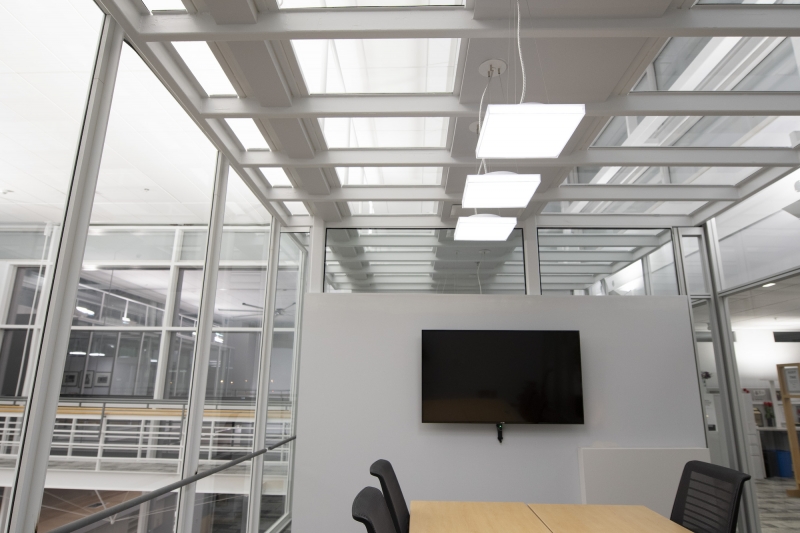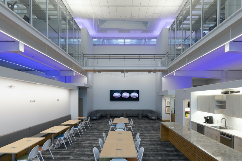 Daylight harvesting, vacancy sensing, and light level tuning result in ave. operating load of ~0.1W/sf, ~75% reduction. Goals achieved, a shining example of cost-effective, efficient and creative design.
