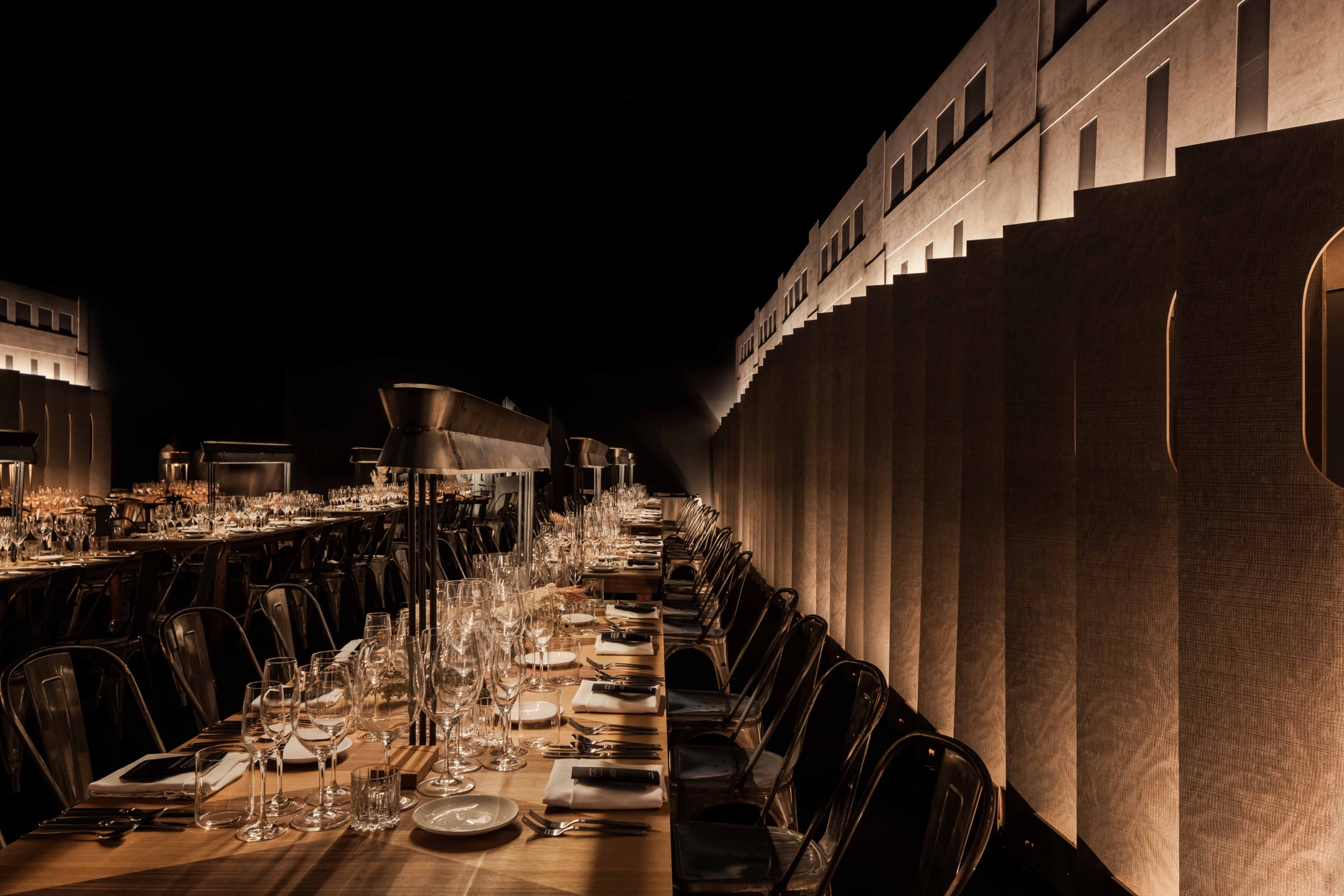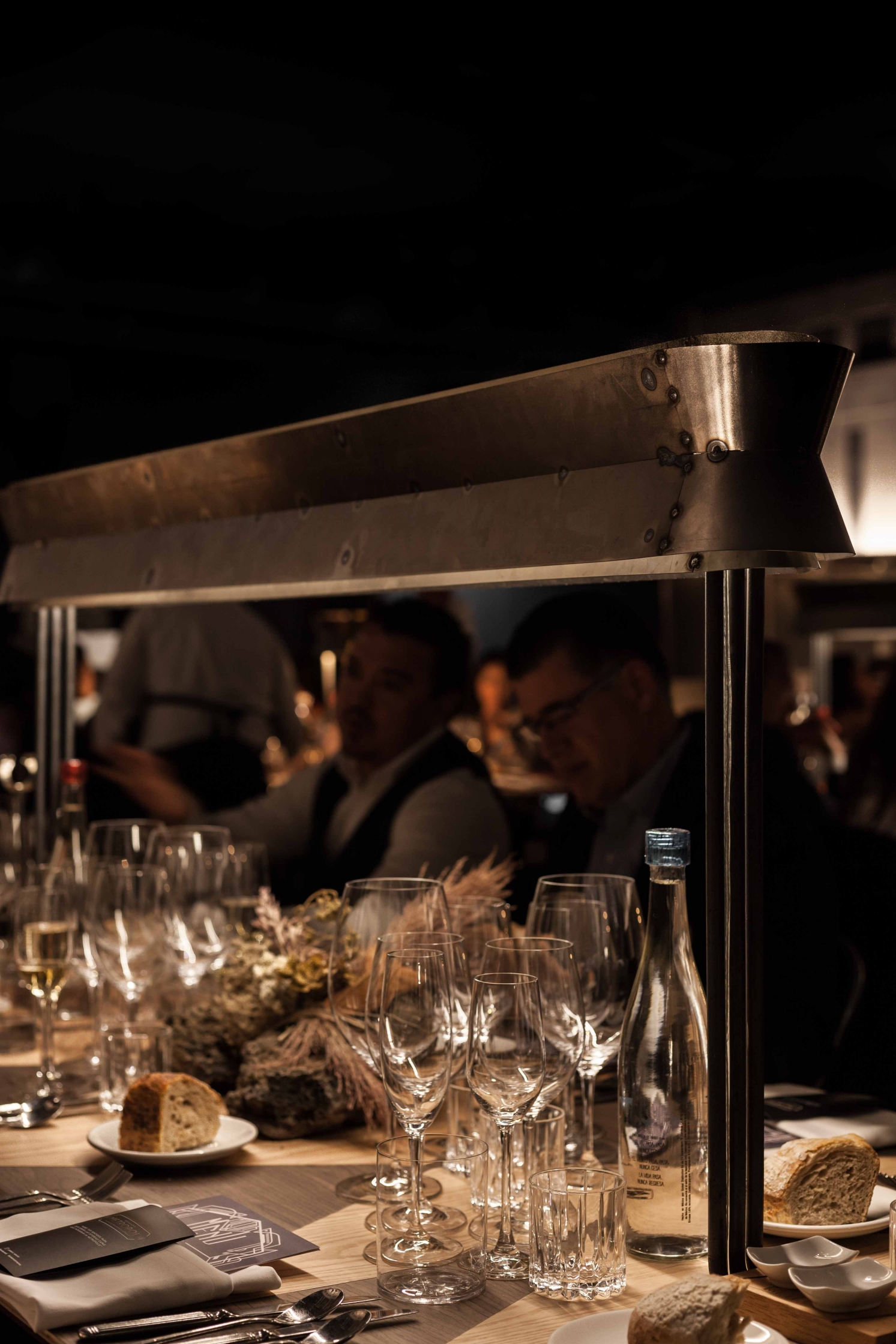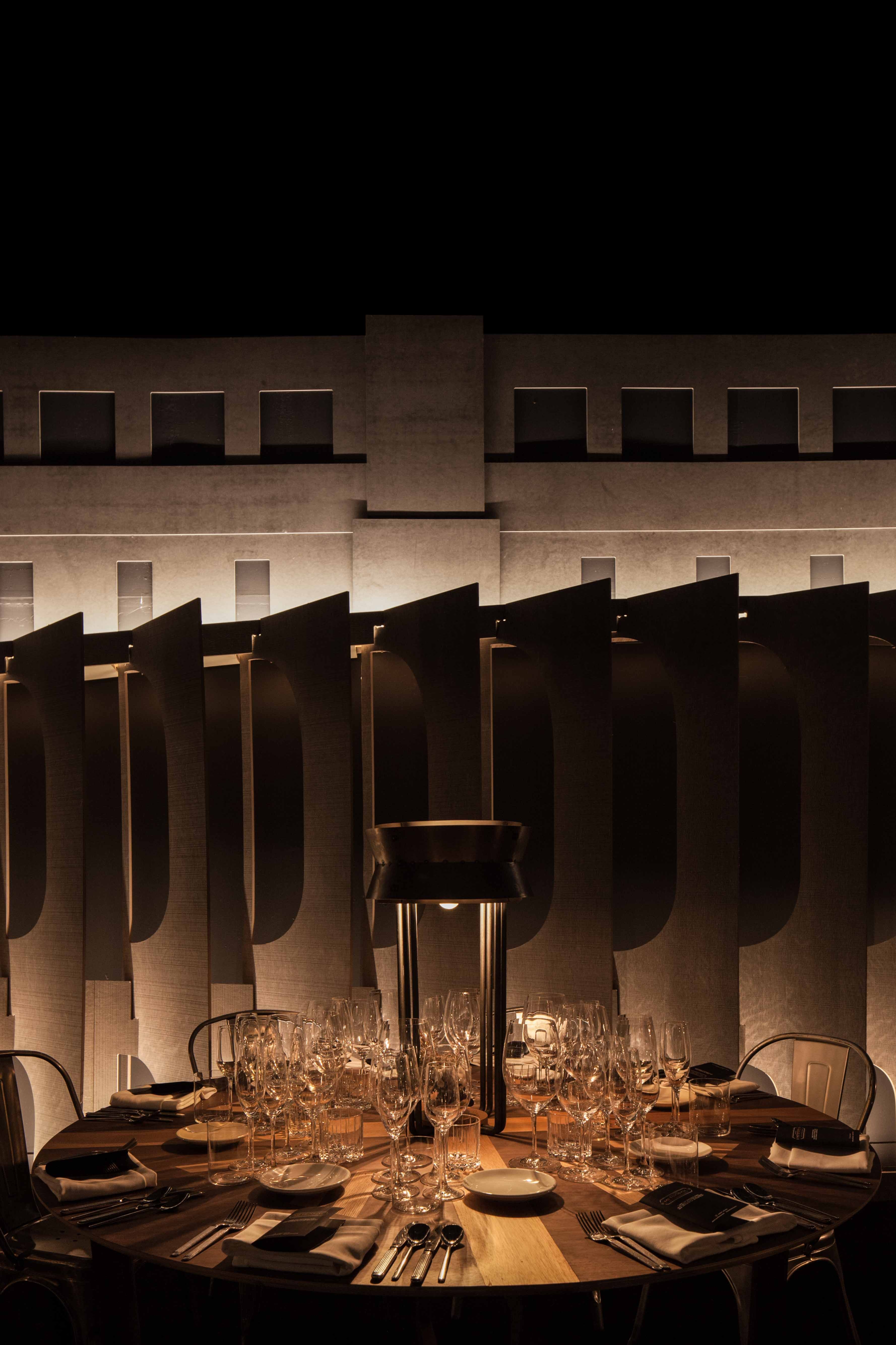 Maria, the robot on the film, reinterpreted by ILWT as the "lightgiver" to the people in order to make the rebellion against de system, was conceptualized as the light giver for the restaurant also, these stainless steel fixtures on the tables were designed specially for this restaurant, and together with the dimmable LED strips give the ambience of the catacombs of the city where Lang imagined life was going to happen.