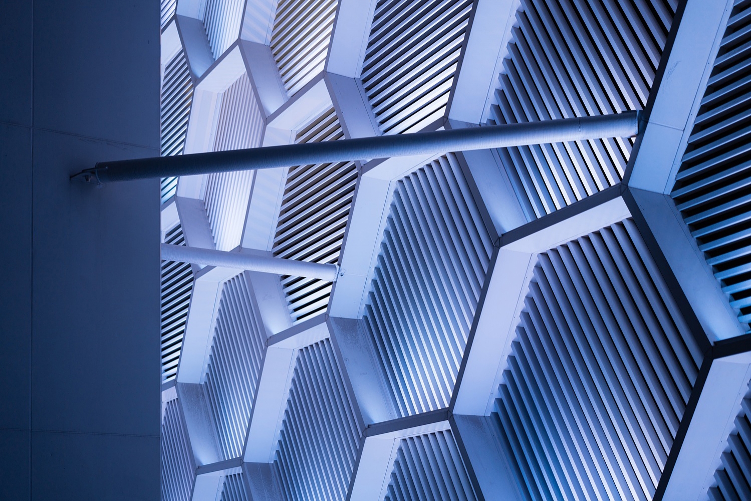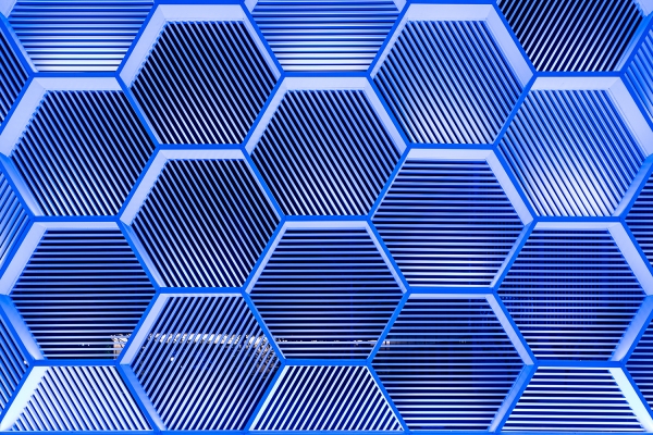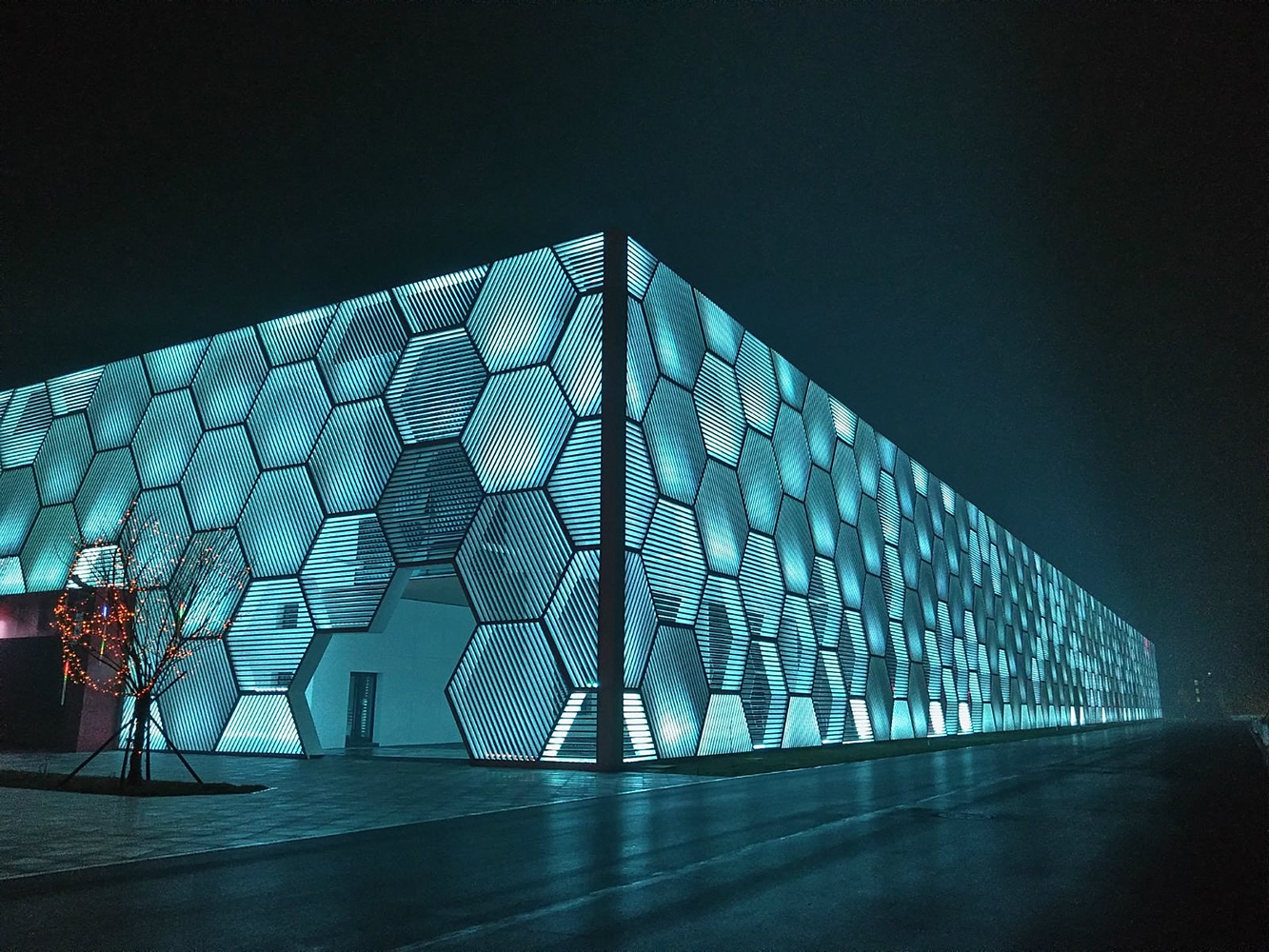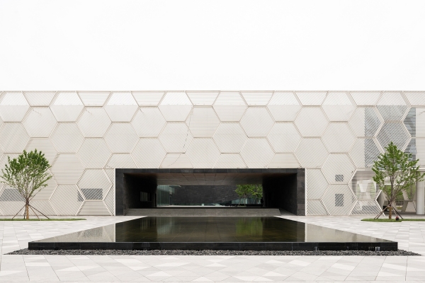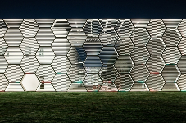 When the night falls, the honeycomb-shaped curtain wall will be gracefully smudged by lights, and each facade unit will be given a new life. The façade units provide visitors in this space with a transparent, bright, concise and orderly experience.