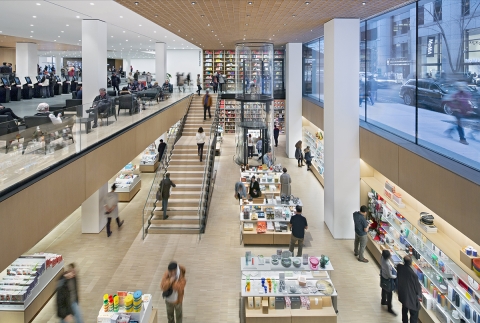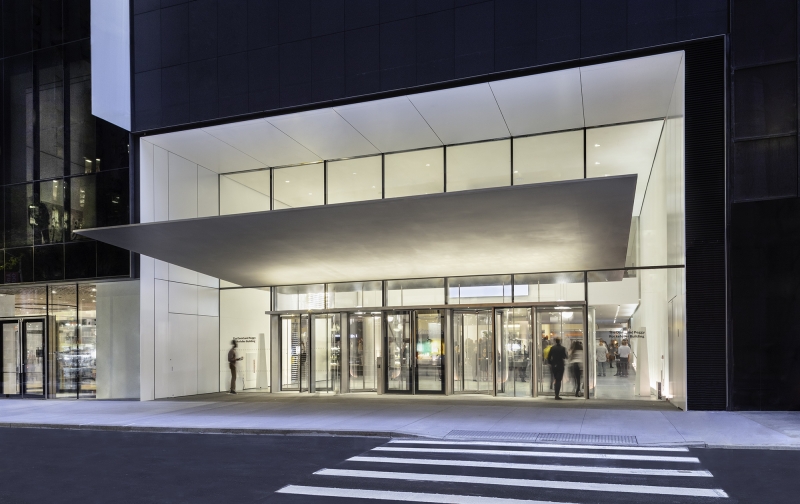 Upon entering, the patron is met with a staggering new steel canopy cantilever magically uplit with seemingly “invisible” linear LED fixtures housed in custom trough above the entry doors. Moving inward, flush lensed downlights and wallwashers highlight signage and feature walls, while also providing ambient light in the lobbies. In the double height retail space, mono-point trackheads are integrated into a wood baffle ceiling with adjustment capabilities that don’t require protruding below the ceiling plane and minimize the ‘retail” appearance from the street. LED accentlights milled into the walls directly light the wood stairs while indirectly lighting the underside of the reflective aluminum, accentuating its lightweight appearance.