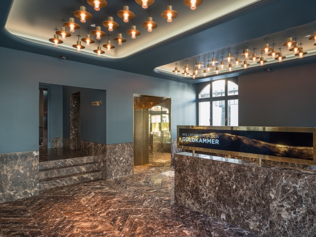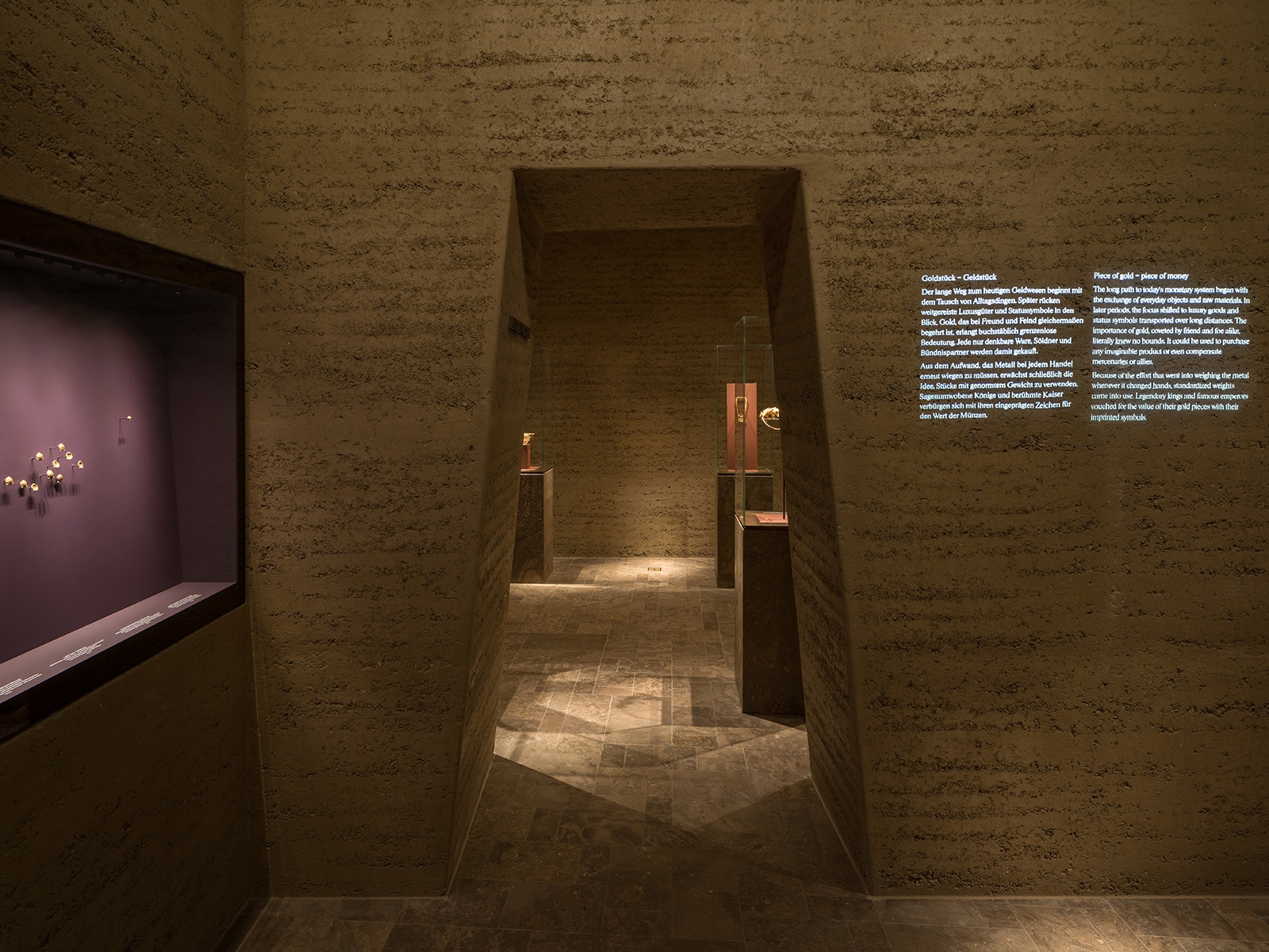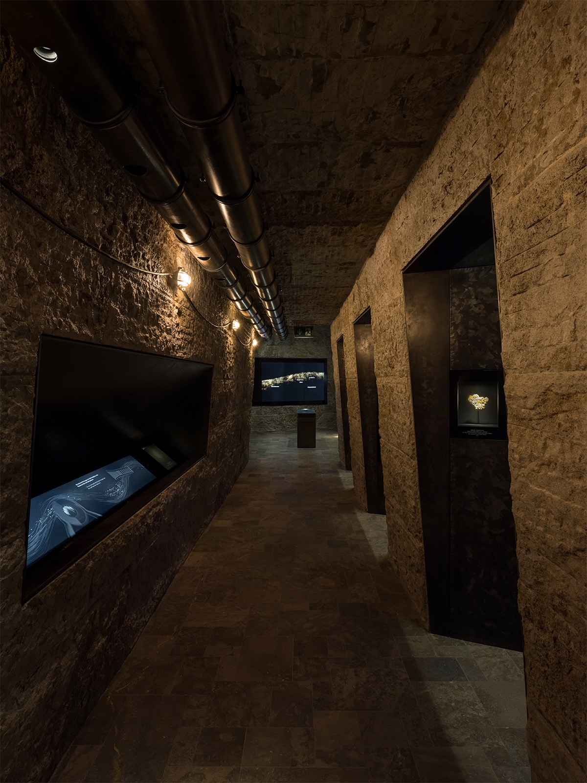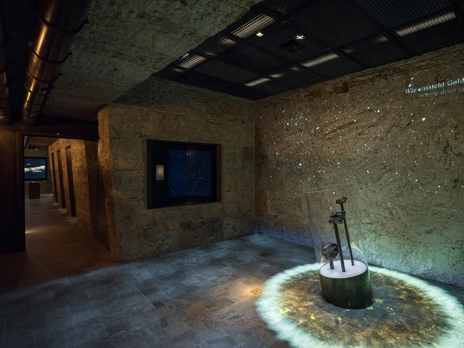 In May 2019, the Goldkammer Frankfurt opened its doors after four years of design, planning and construction as one of the most modern museums in Europe. In a succession of spectacular underground tunnels and vaults covering 480 sqm, the exhibition designers have created a suitable interior design for the various themes of the 500 gold exhibits.