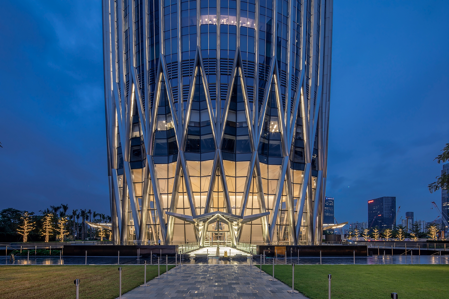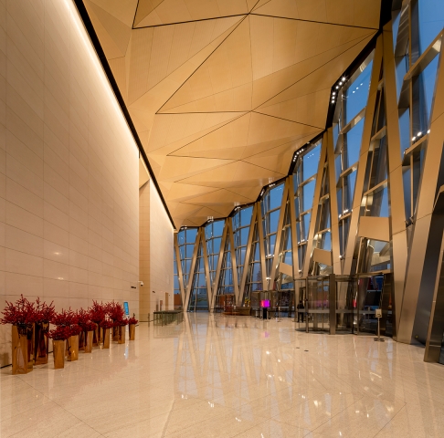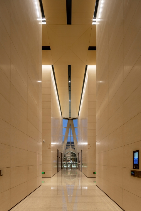 Entry DescriptionBeauty and strength are entwined within the lobby, creating a harmony of radiance and brilliance. The structure, enhanced by the illuminated interior features, reveals the strength and solidity of the tower base. Lighting systems, integrated within the architectural details, express a glow from interior to exterior.