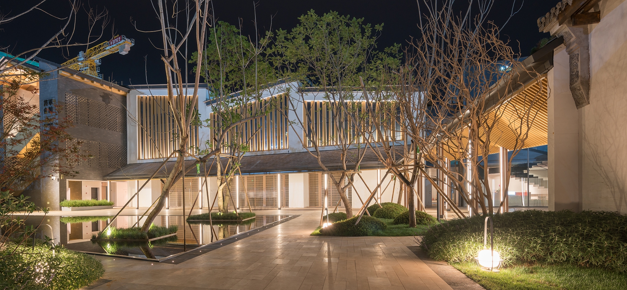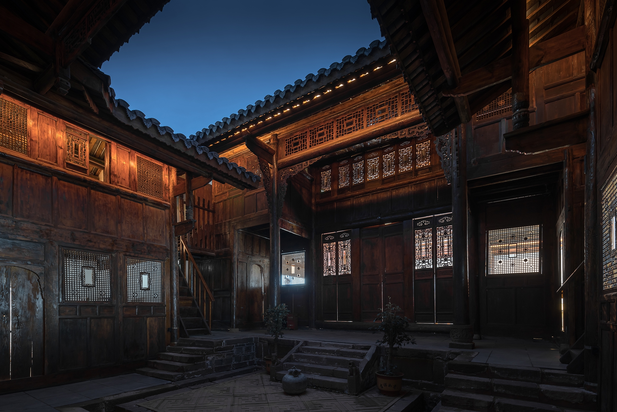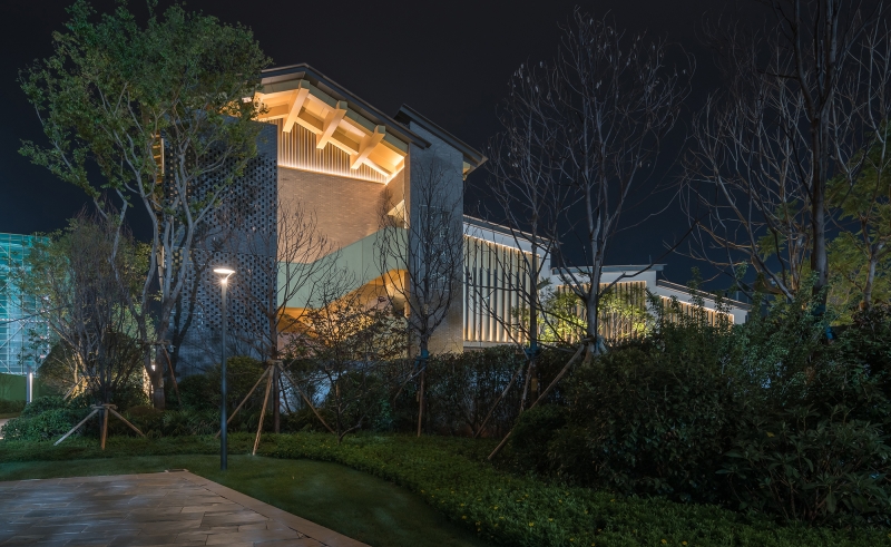 The lighting design strives to create a subtle and restrained, yet prominent light environment. The lighting method of brightening the cavity in ??the ancient house highlights the unique cavity decoration design in the building structure. The color temperature is colored by warm white light, which not only restores the color texture of the building itself, but also strengthens the modeling arc of the gable part of traditional Chinese architecture.