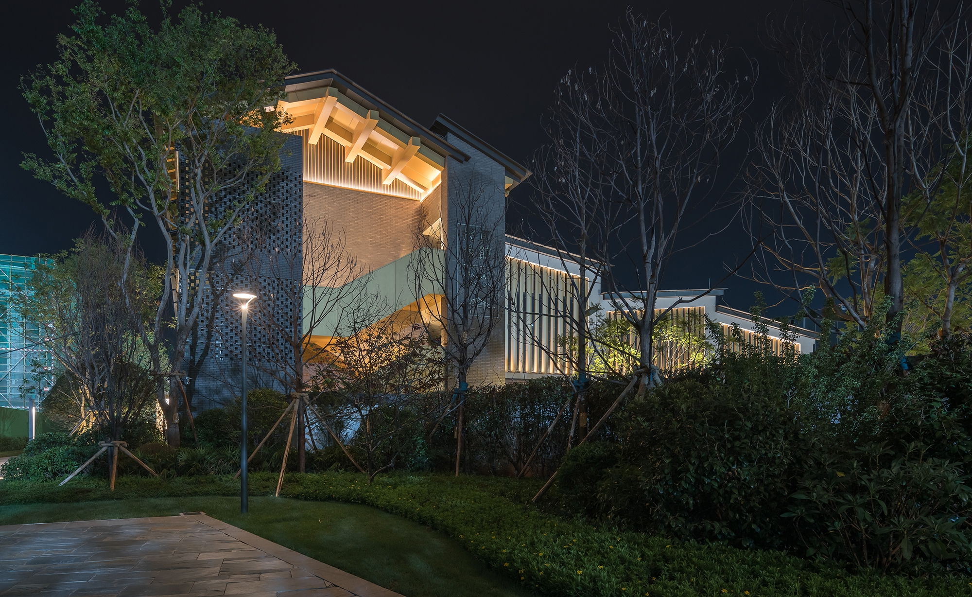 The lighting of the extension area continues the design of the overall light environment, focusing on the facade lighting. The combination of various lighting methods such as dots, lines and planes will show the architectural form vividly.