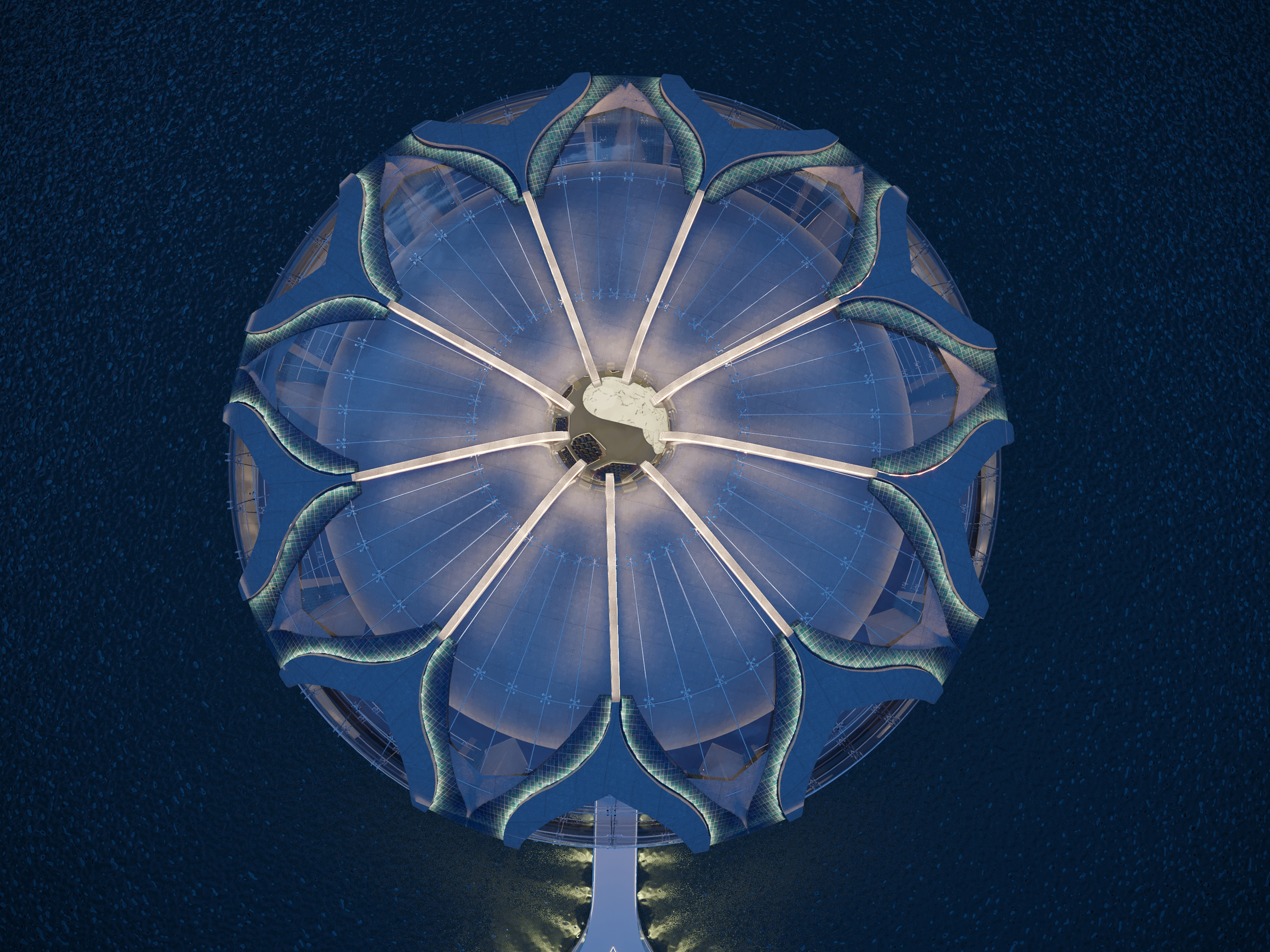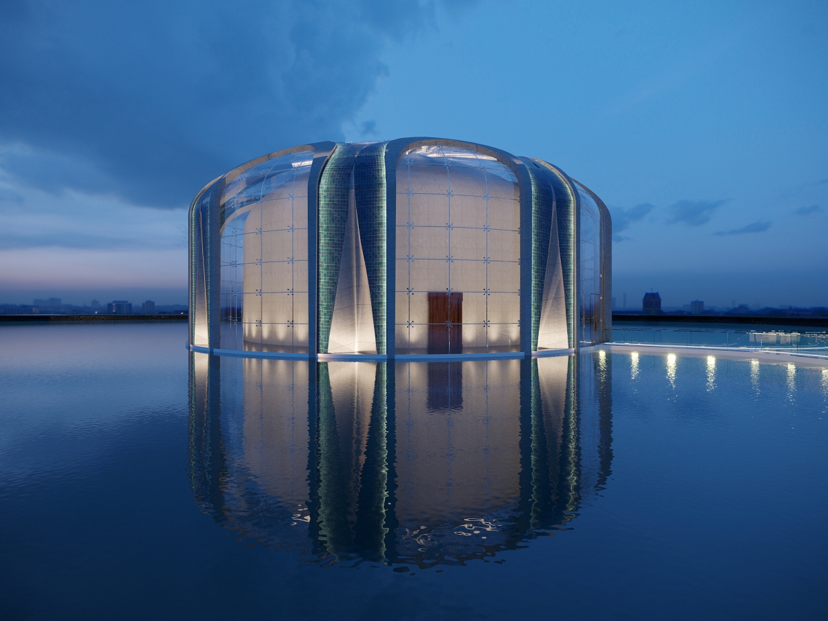 Entry DescriptionThe idea of Lotus Amphitheater emerged from the architectural figure of the Safavid era, the most significant artistic period in Iran. During this period, a dome-shaped space was held for Eid ceremonies, Shahnameh readings, and musical performances, and people gathered in those places. This amphitheater has been created to keep the art and culture of ancient Iran alive. The wall patterns and light panels are decorated with 5o7 of Safavid architecture with Seat arrangement on different levels have created an artistic atmosphere inside the hall. In the center of the amphitheater, a hole was created to use natural light with a solar tunnel and lit up the stage. The exterior side is inspired by a lotus that was used in many designs of the Achaemenid period, along with the view of the handmade tiles of the Safavid period and glasses with a combination of linear LEDs and spotlights, which has created beautiful reflections on the water.