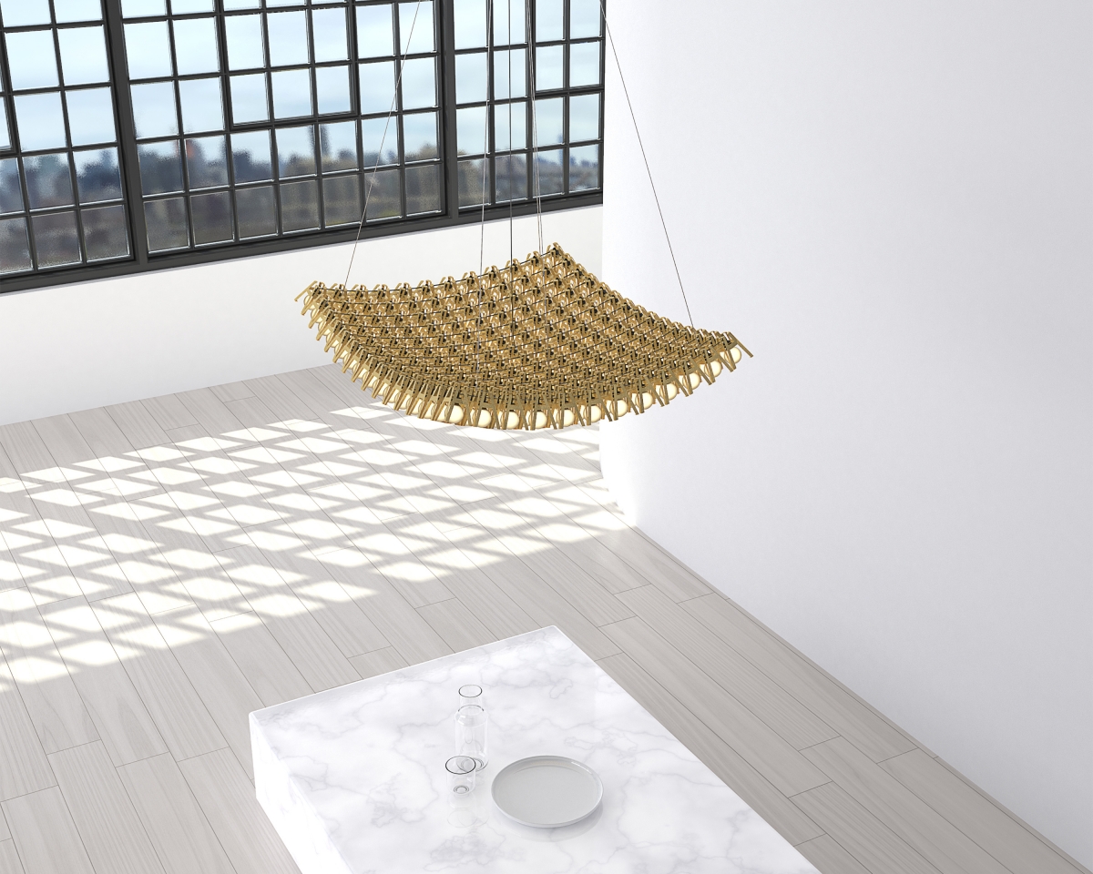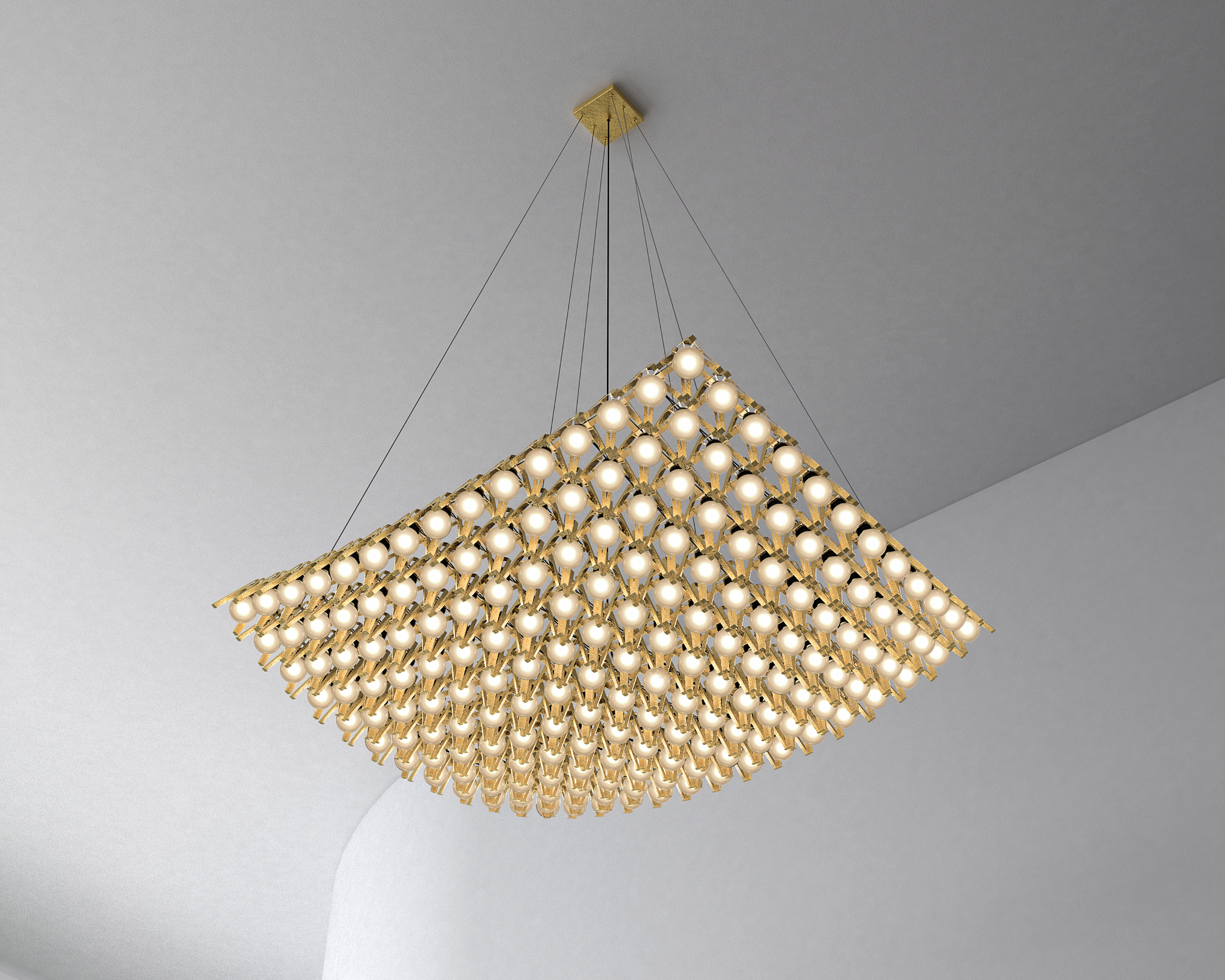 Each light bulb is set in the prong settings traditionally used by jewelers to protect and fasten precious gemstones. These settings, typically of 4 – 6 metal prongs, secure the stones with a minimum amount of metal, allowing light to enter the gemstone and thereby creating brilliance and sparkle.