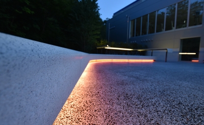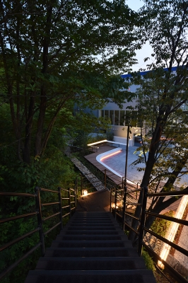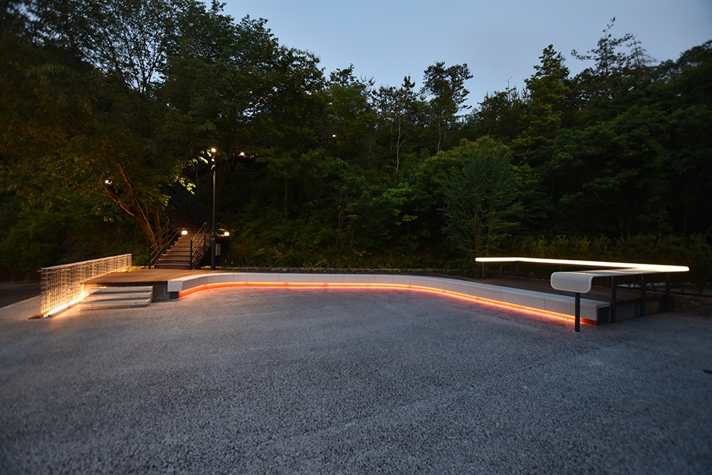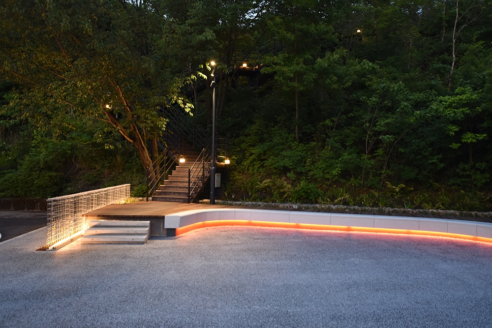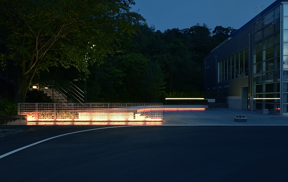 This is a landscape lighting project for a communication plaza project in the factory "Nabeya Bi-tech Kaisha" in Seki, Gifu, Japan. About 400 people work in this factory for design, manufacturing and sale of machine elements and components for motion control technology. This plaza is constructed as connection points from work place to parking lots for workers with the staircases. The building next to the plaza has rest space and fitness club, so that the plaza can play a role of communication place for workers.
