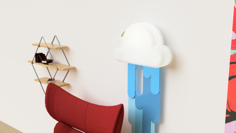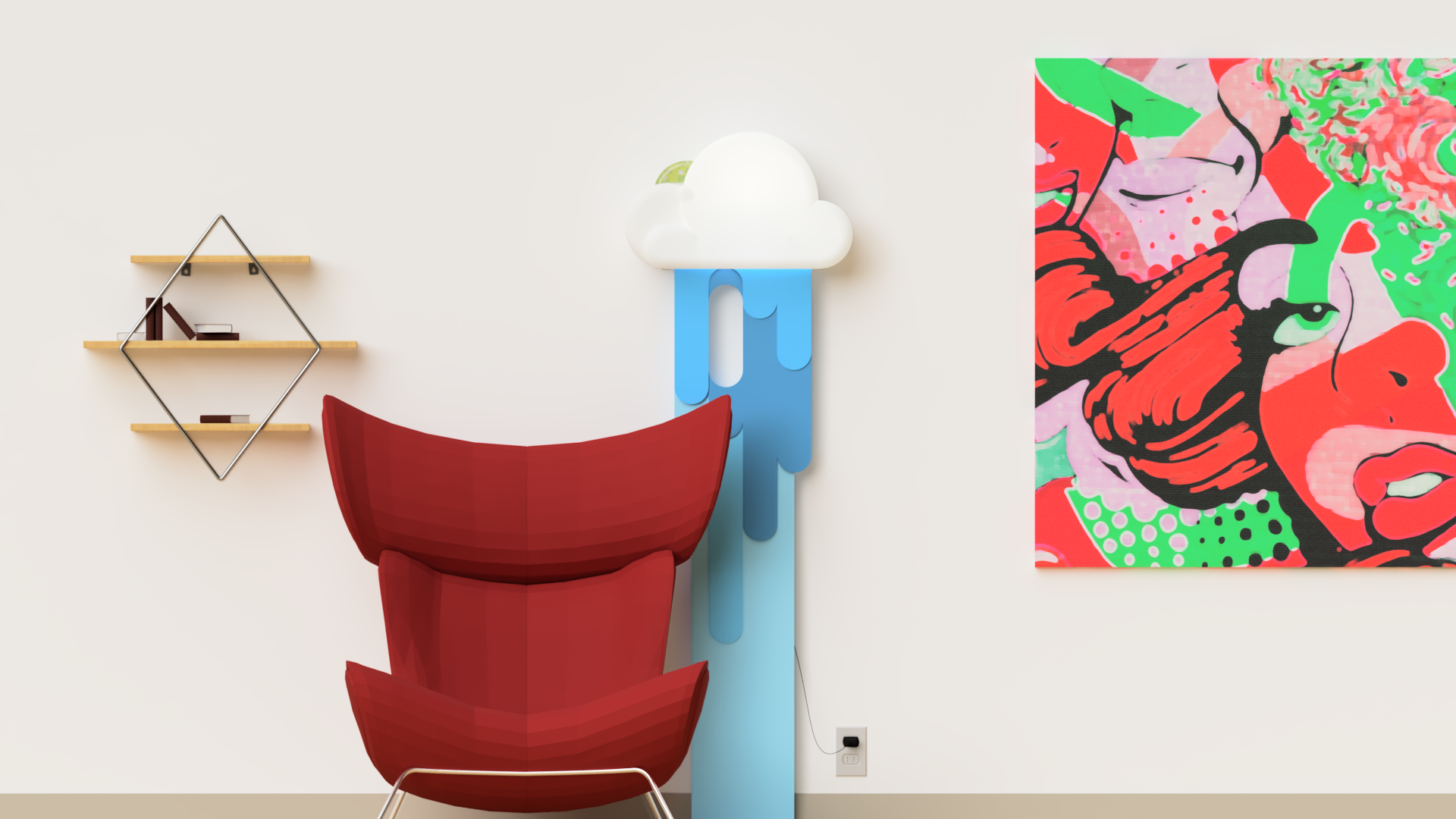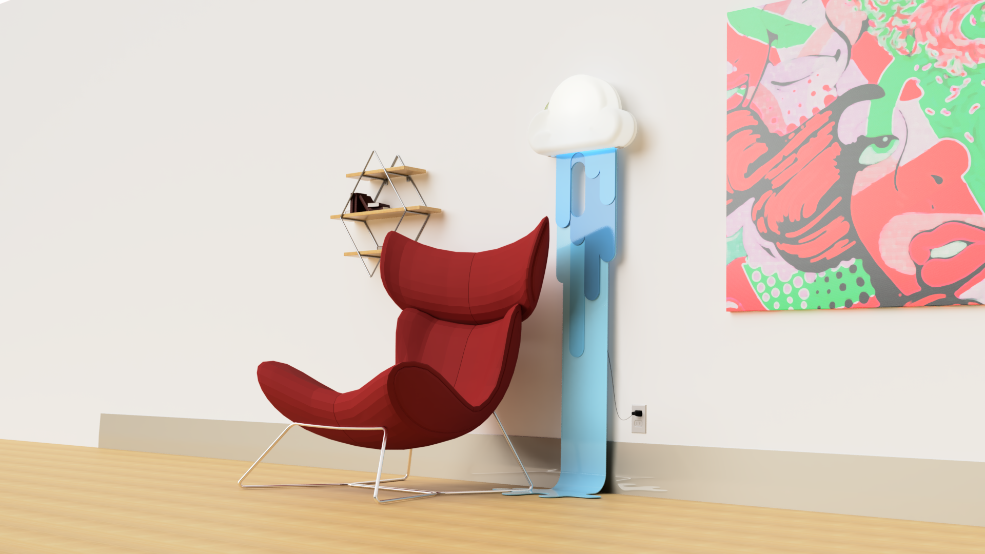 Featuring a soft cloud motif lantern with rain pouring down below and pooling onto the floor to form the base, fans of the Pop Art movement and modern home decorators alike will love this wall-mounted floor lamp.