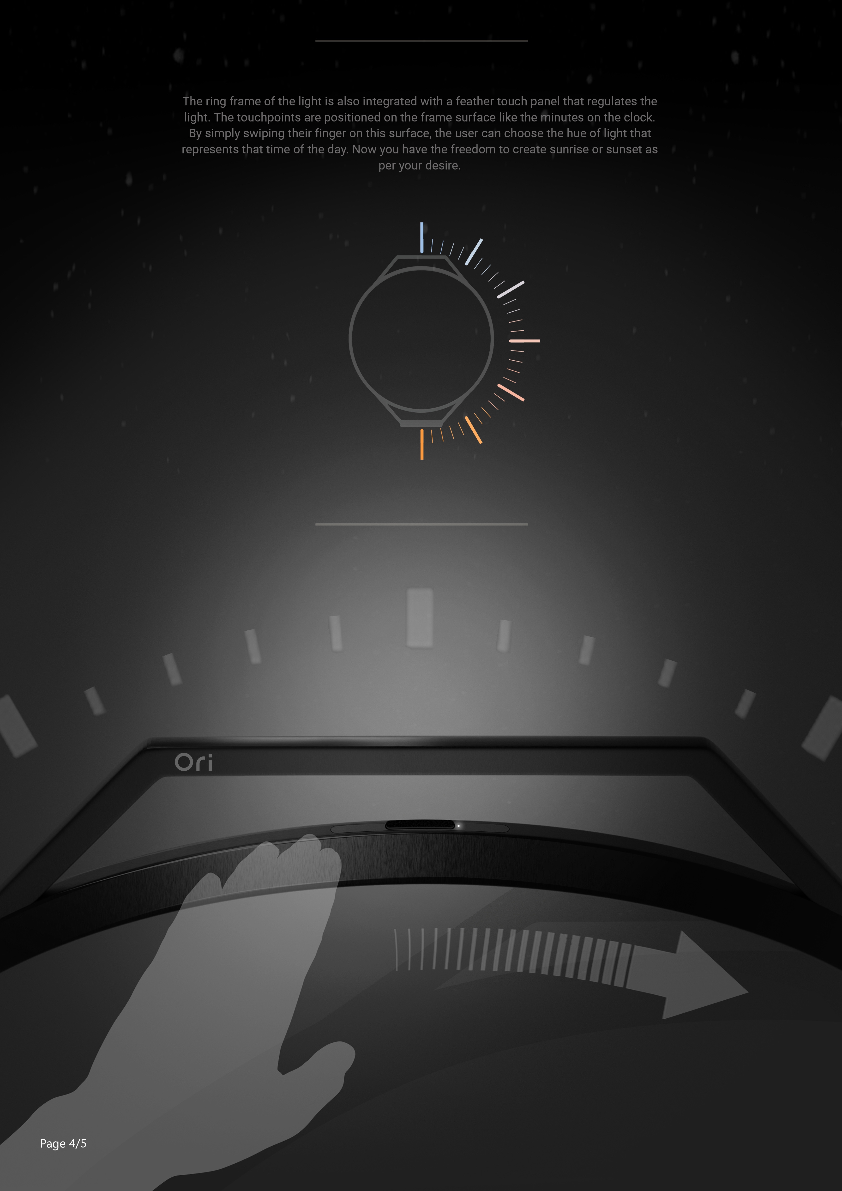We humans have a very strong connection with nature, its varying light affects us in more ways that we know. Among many benefits one is its effect on our moods. It holds the power of altering our mood. Ori gives user the freedom to manually select light from their favorite time of the day no matter whether its day time or night.