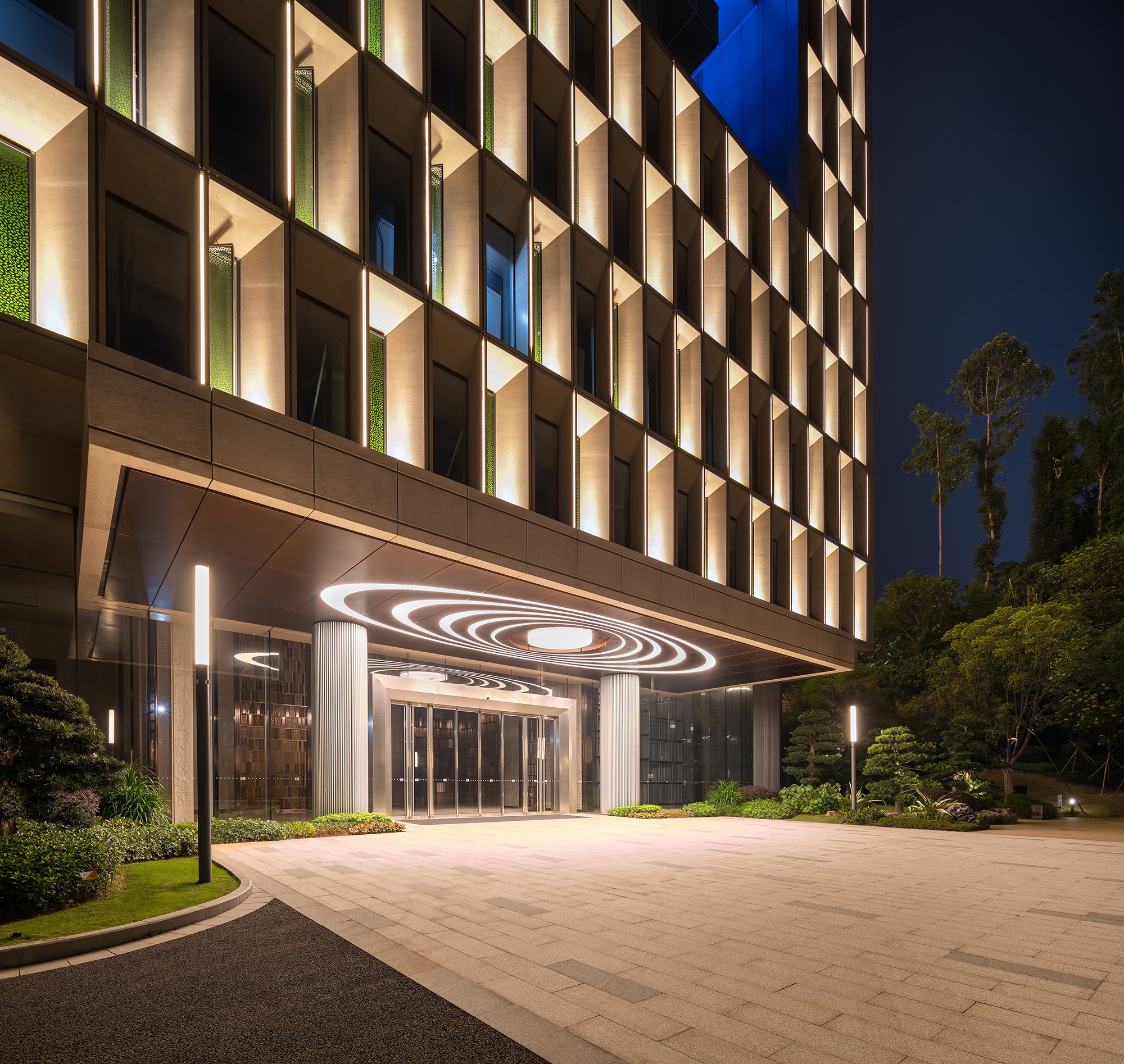 The lighting design is also divided into two parts: the overall block and detailed units, which complements one another. Based on this logic, it highlights characteristics and concept. In this way, it creates a clear distinction between the primary and the secondary, and also exposes the visual highlights of the design.