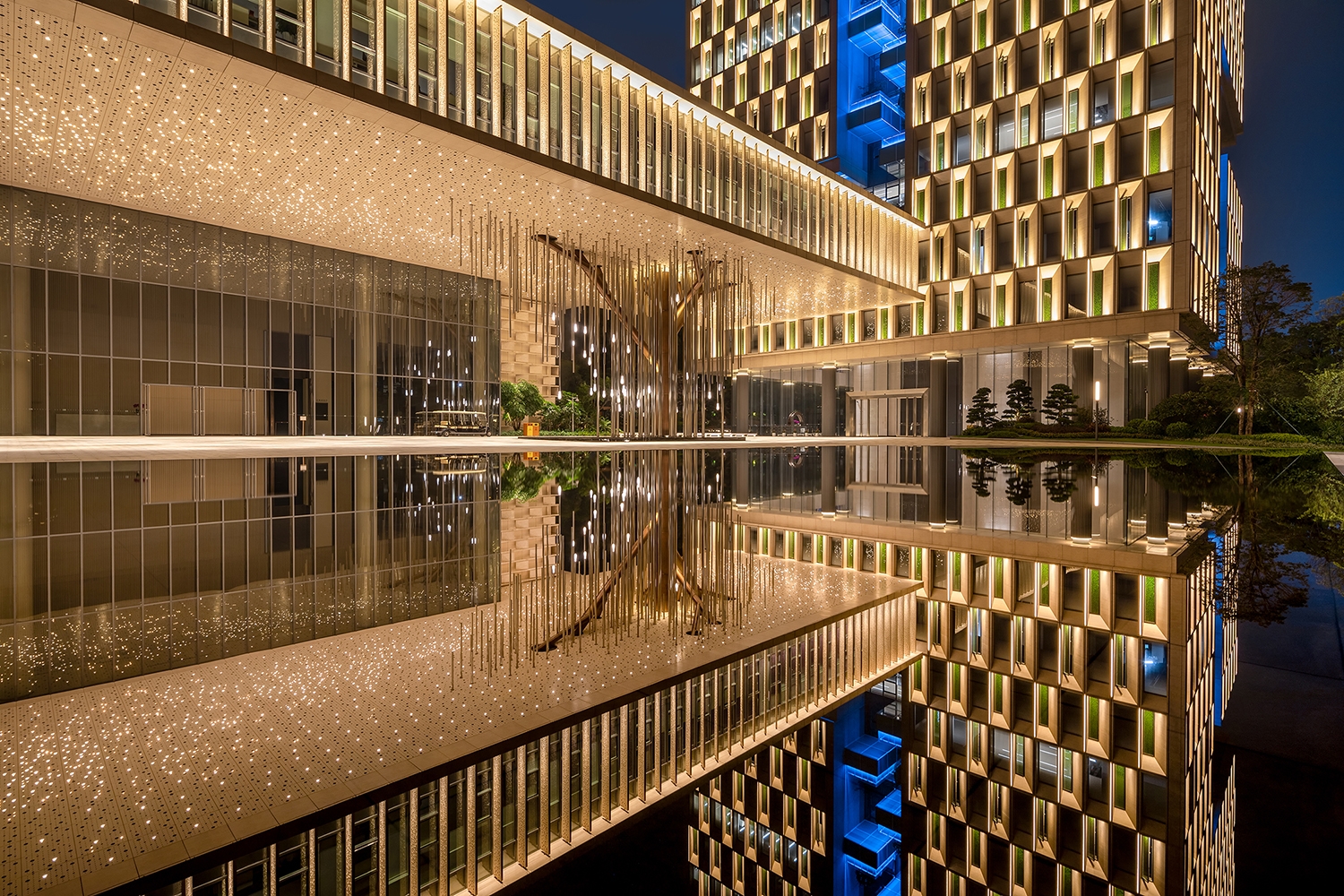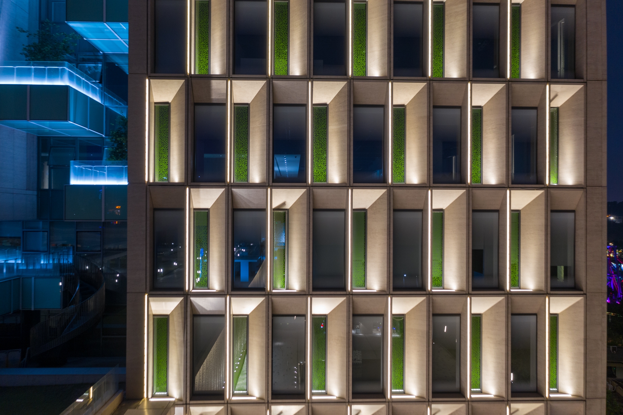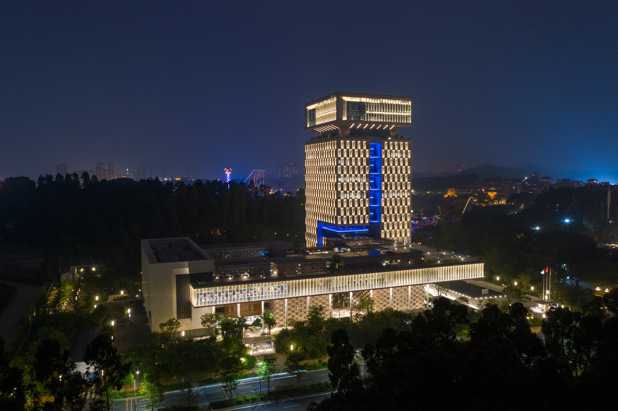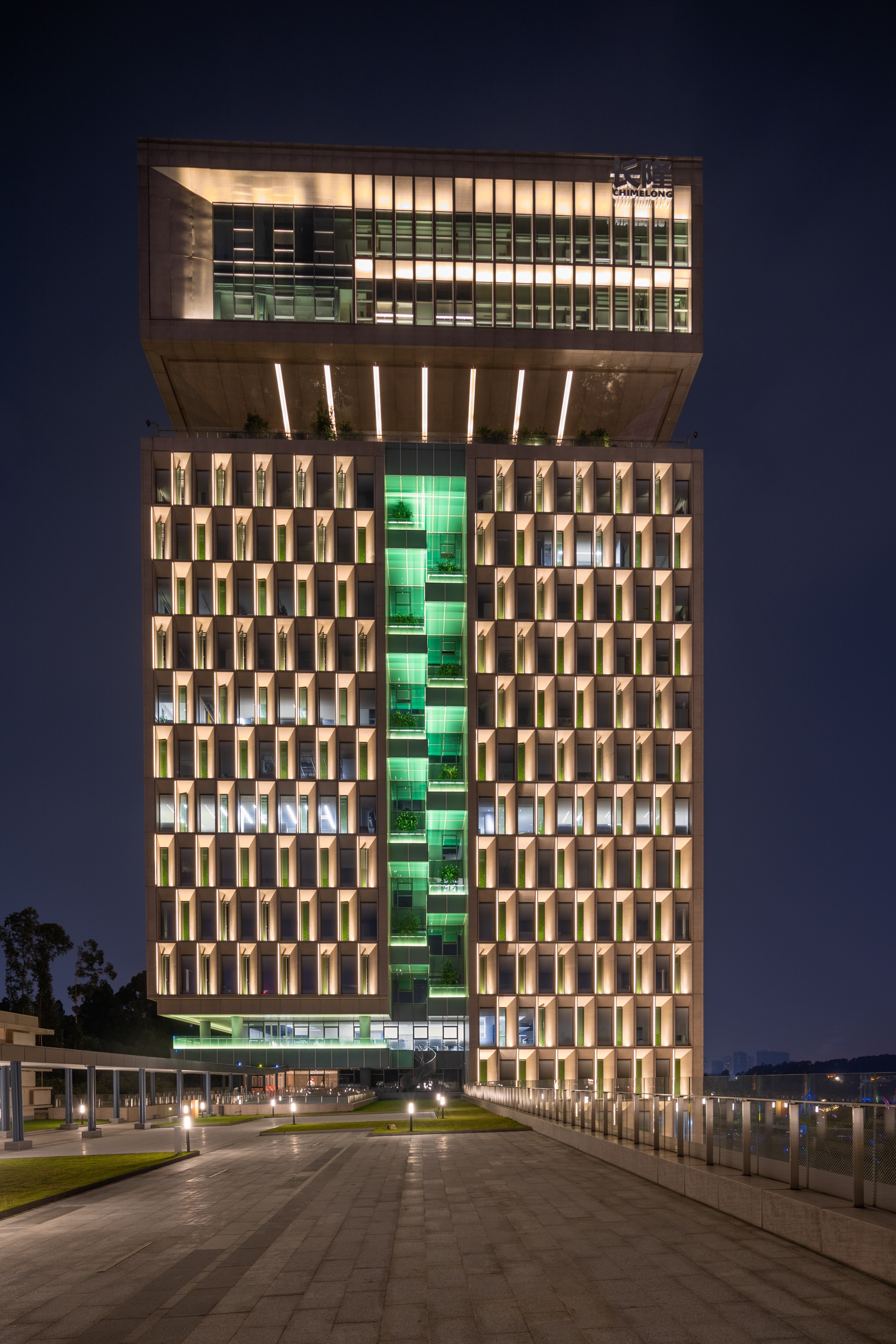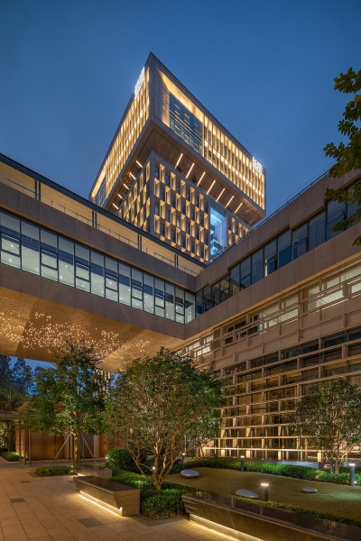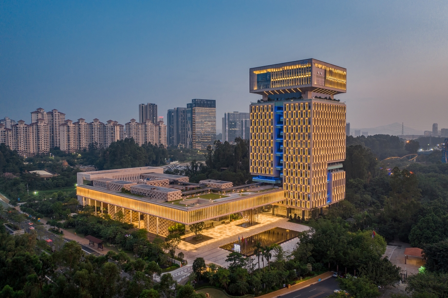 Moreover, the design also emphasizes on innovation and breakthrough. Adhering to Chimelong Group’s management philosophy of a harmonious coexistence with nature, the project team skillfully used colors to interpret the integration of nature with technology, and endowed the building with new stories by virtue of the architectural structure.