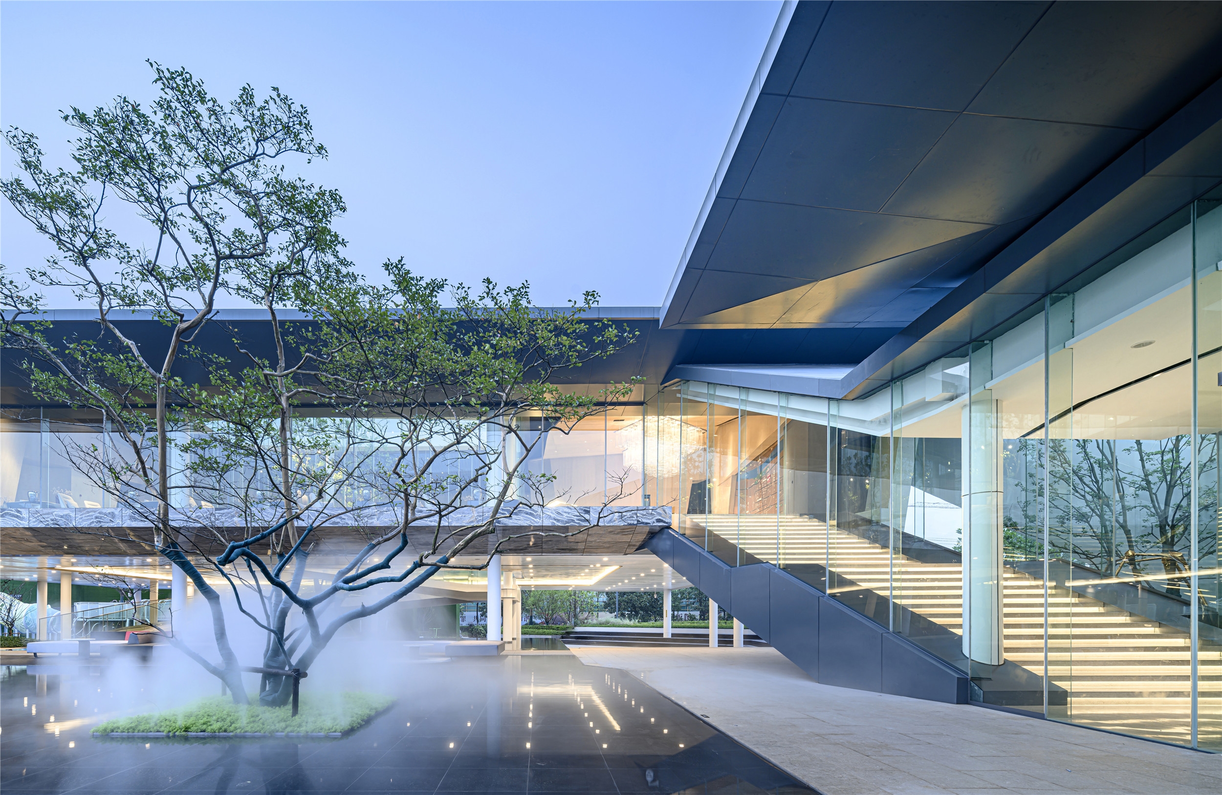 This project is an integrated design that combines architecture, interior, landscape, and soft design. The whole design concept revolves around the “flying over the water surface”, introducing the natural elements of the Yangtze River water into the pool landscape. In this case, two large building blocks were designed, from one building to another, and the overall structure presents high and low moving lines. Moving through the winding path, we’ll see the city exhibition hall in the main display area, forming a multi-functional space in a surrounding structure.