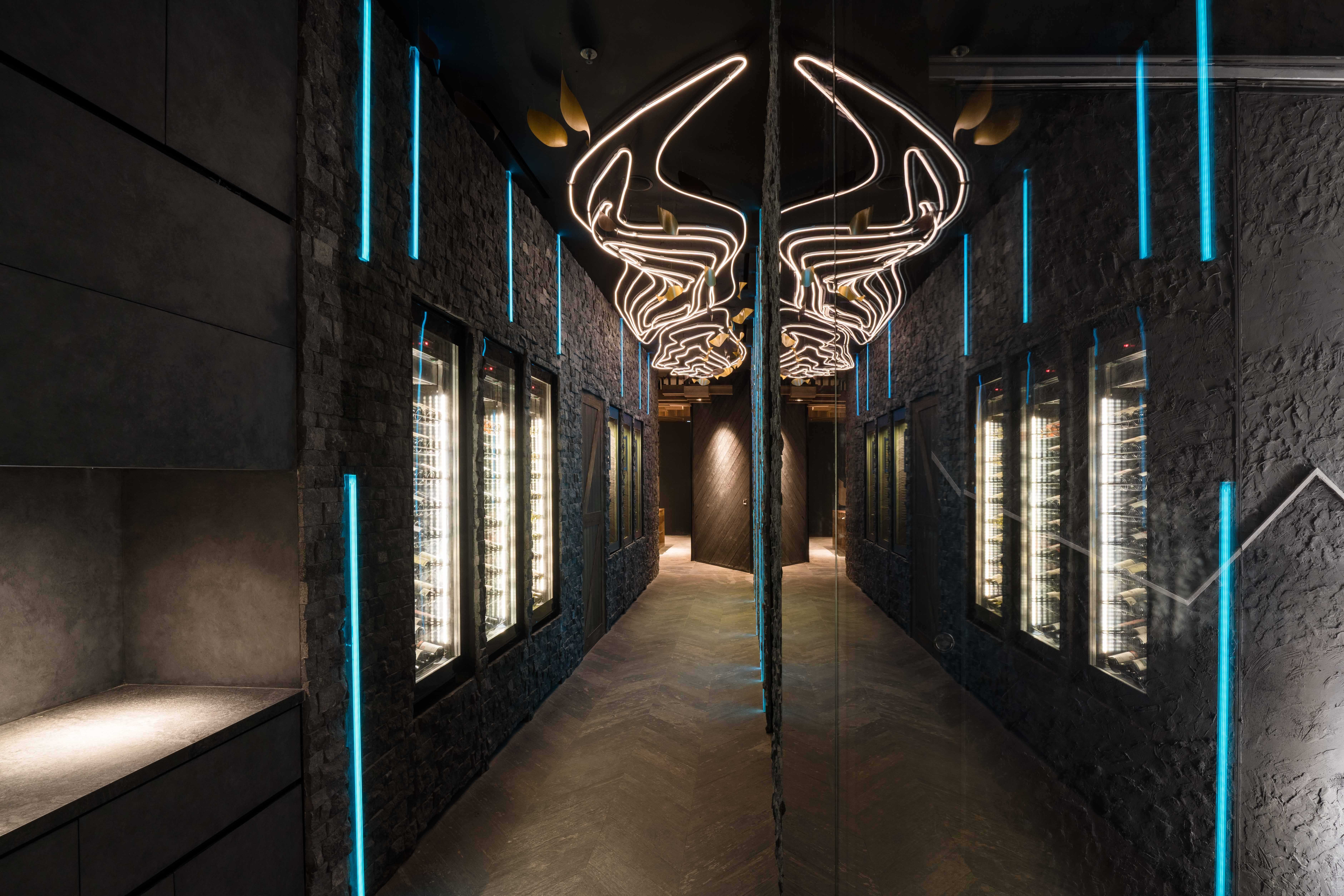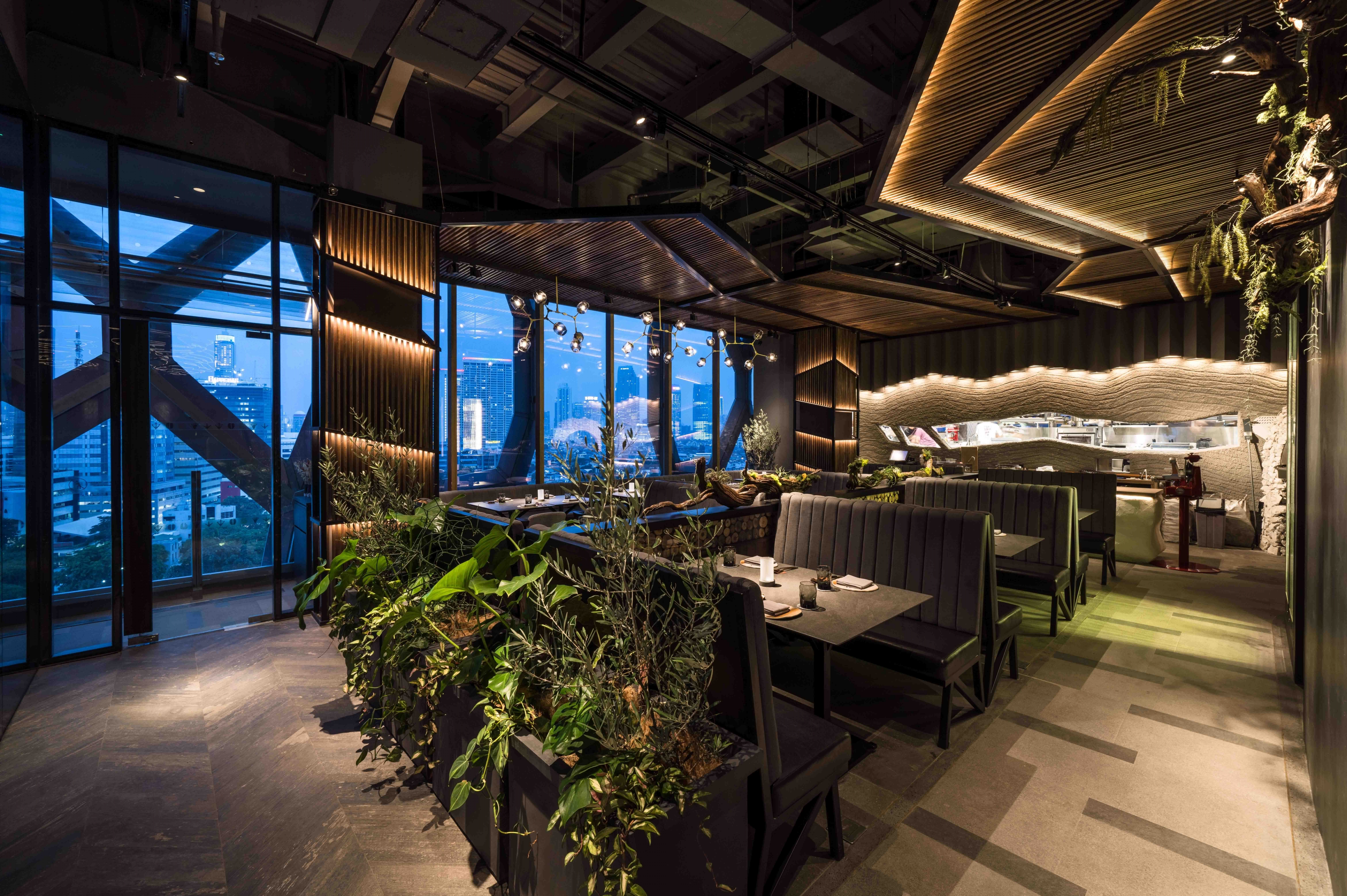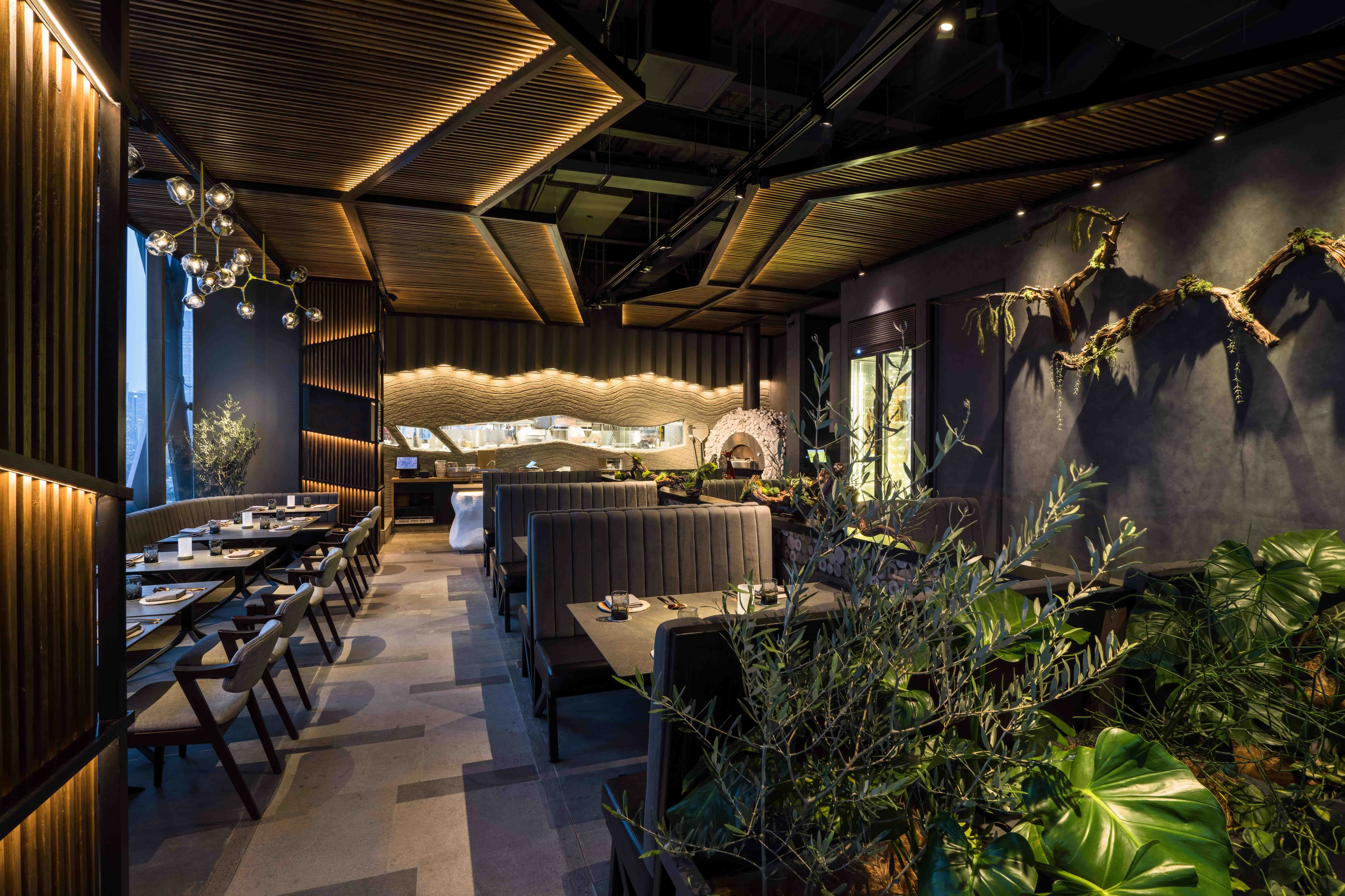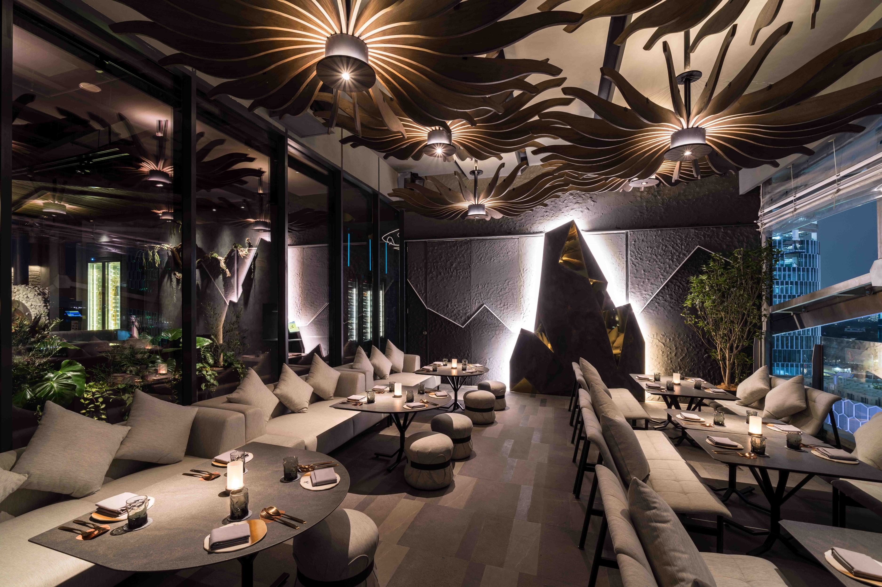 Lighting plays main role in this restaurant because guests will be brought in many atmospheres as sea, land forests, caves and mountains.